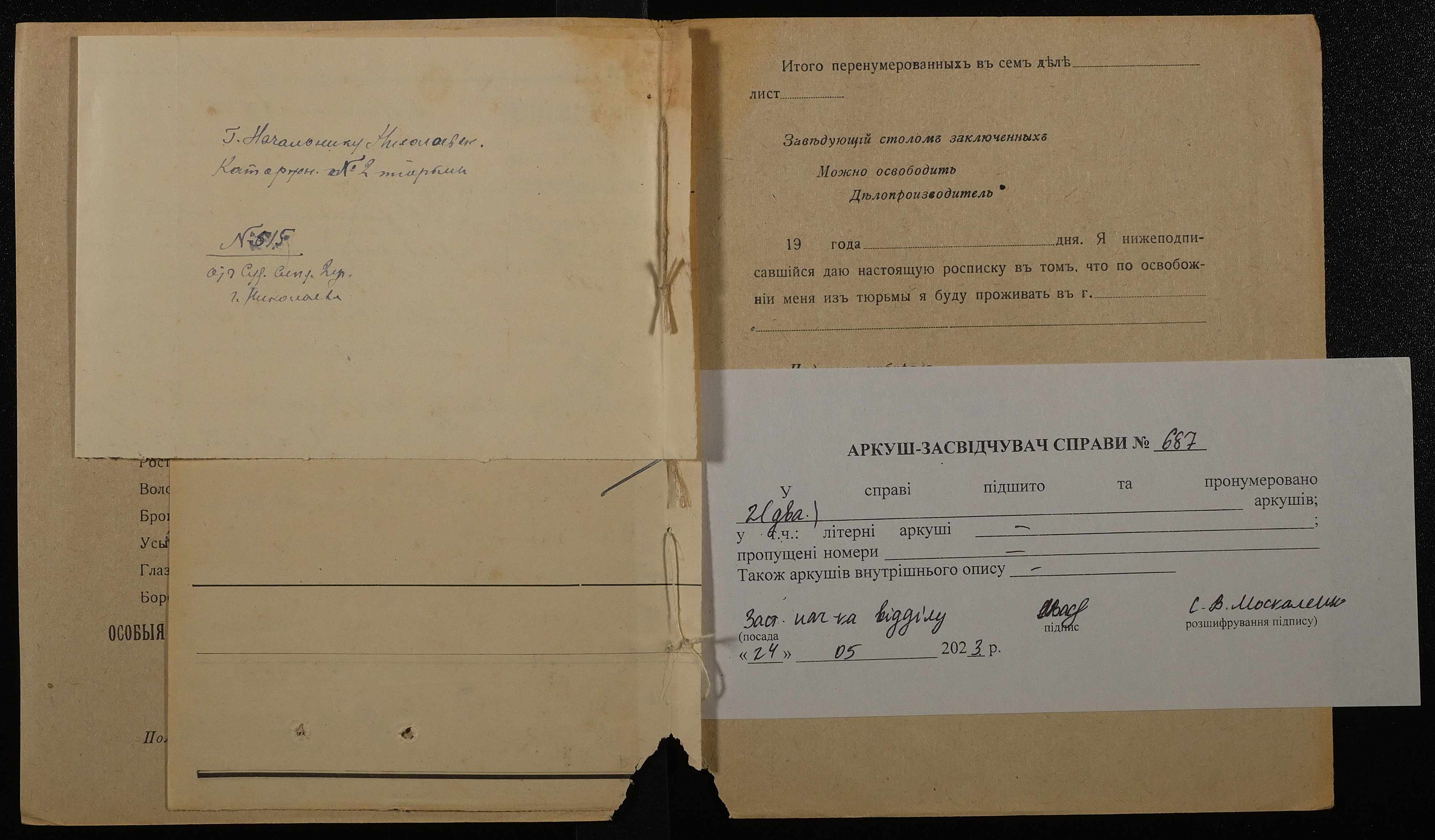 ◦ ◦ Фонд № 250 “Миколаївська каторжна тюрма № 2”