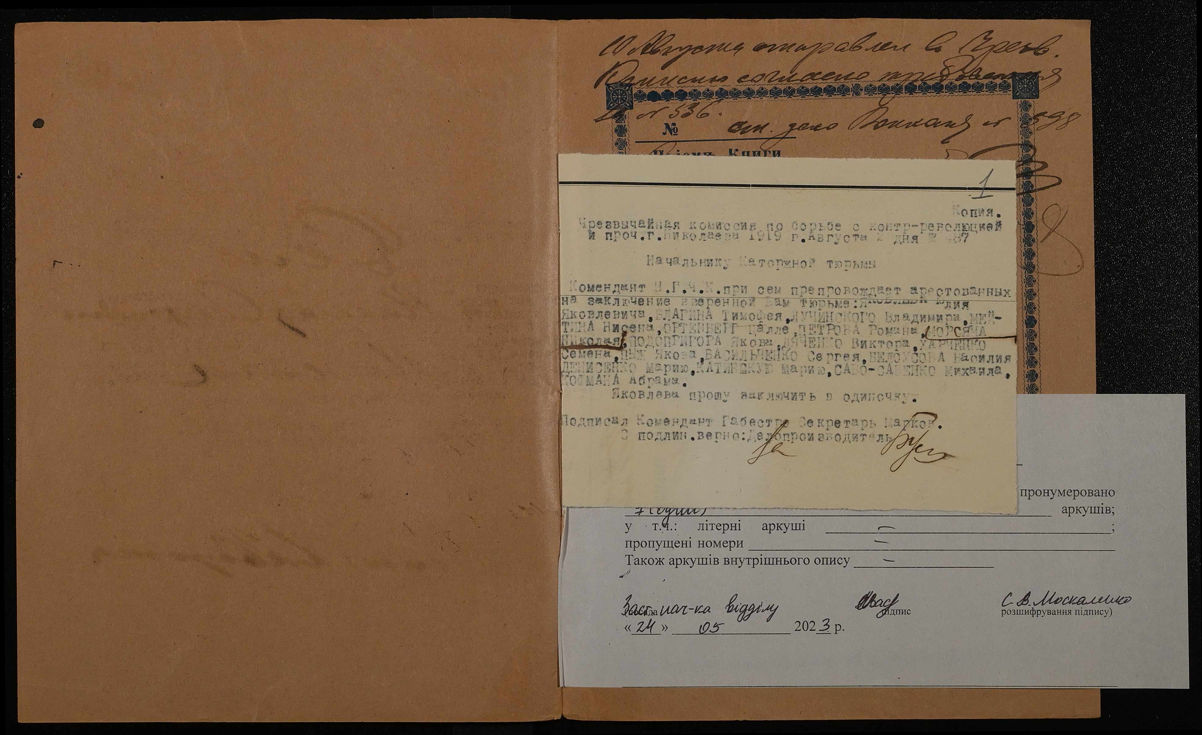 ◦ ◦ Фонд № 250 “Миколаївська каторжна тюрма № 2”