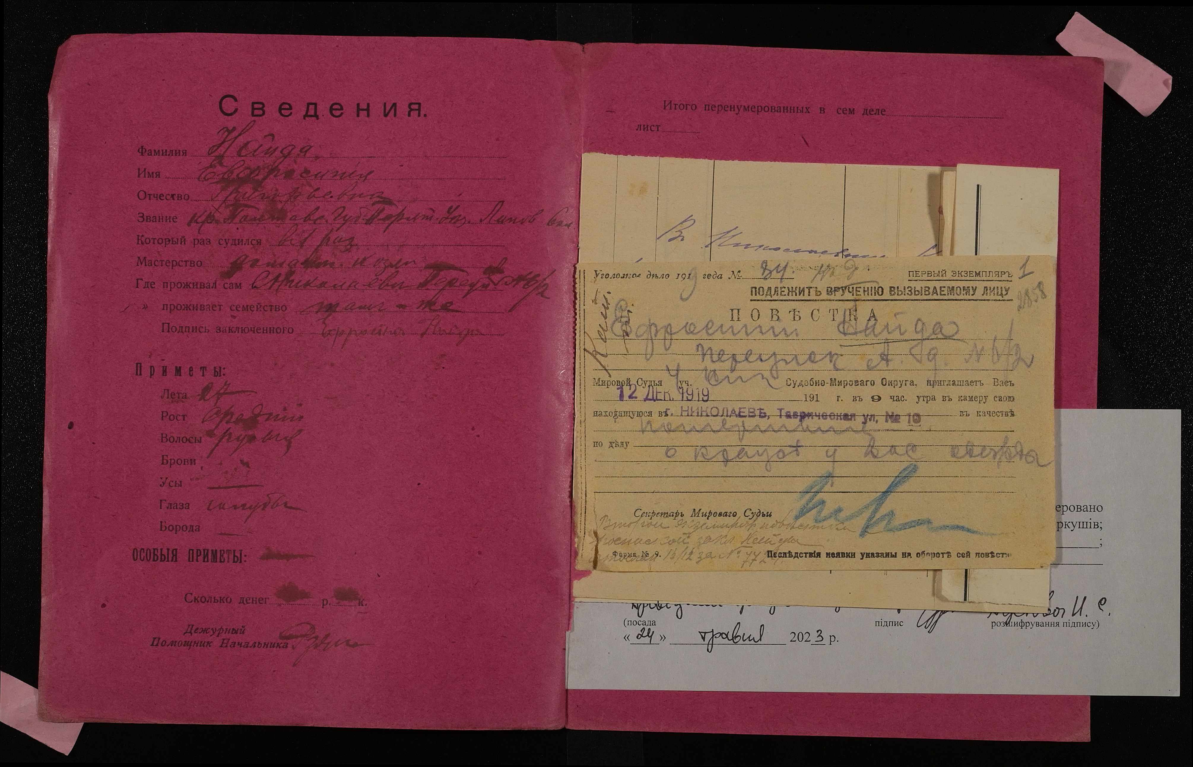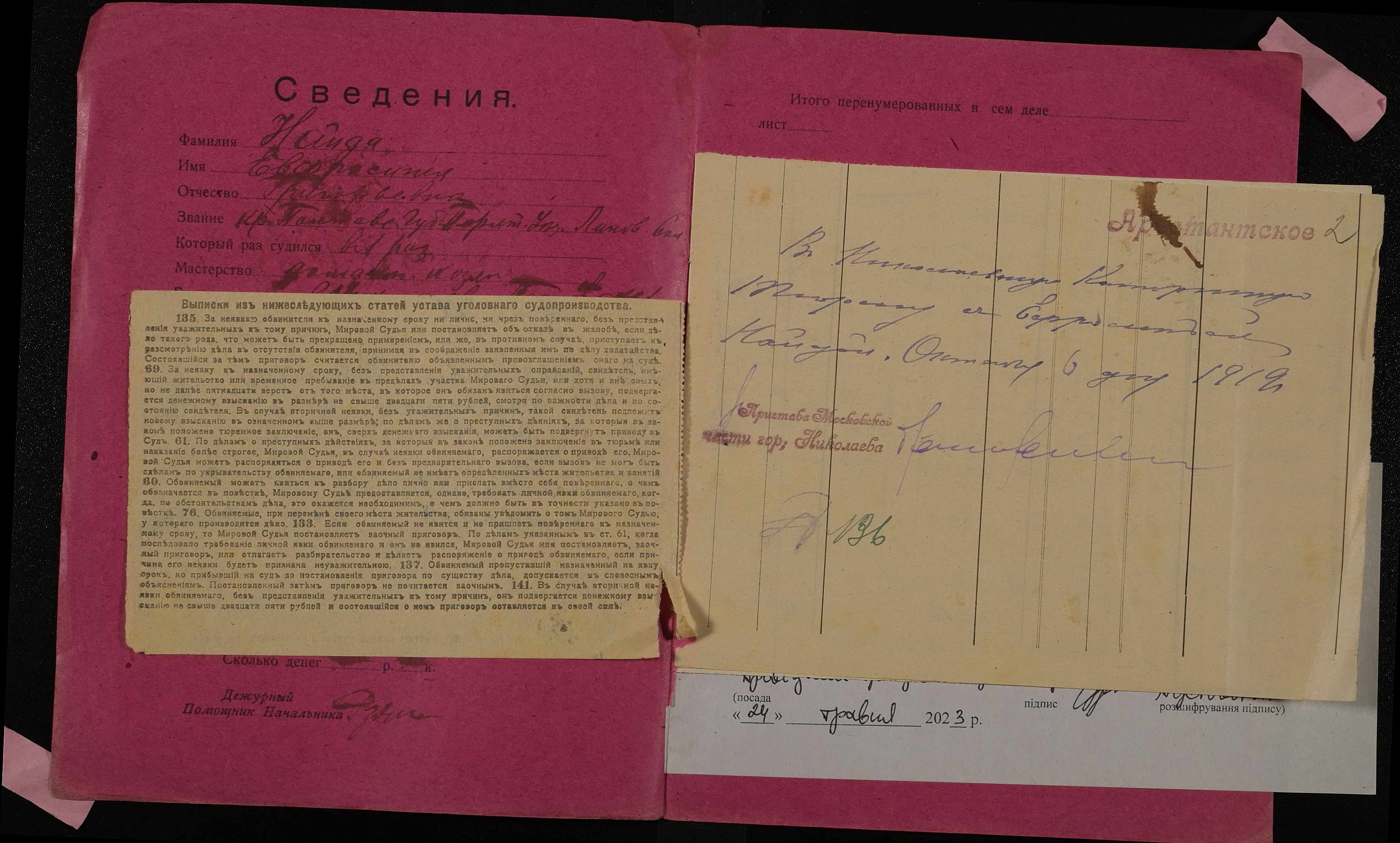 • • • • Справа № 701 Найда Єфросинія Григорівна (Найда Ефросиния Григорьевна)