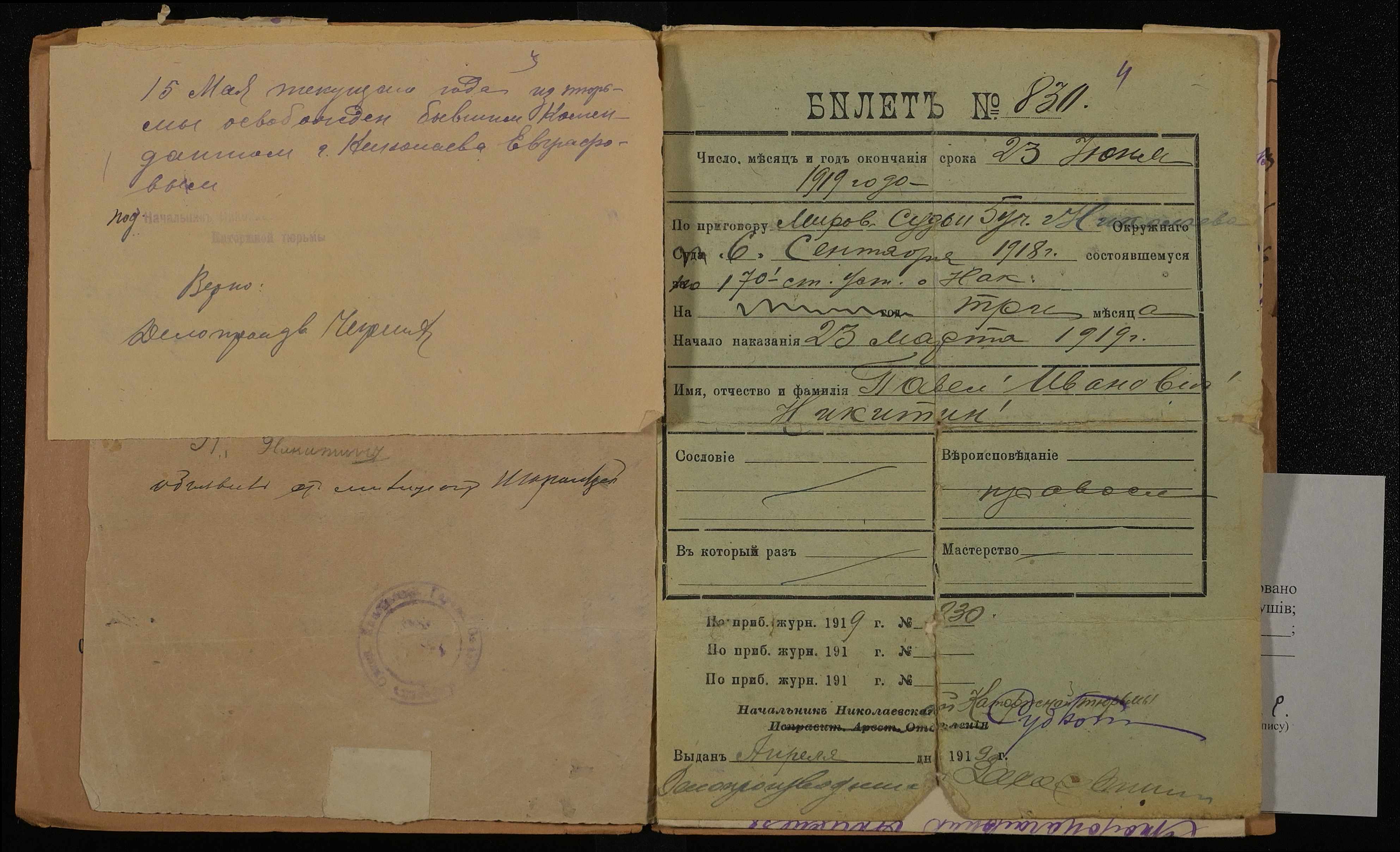 • • • • Справа № 709 Нікітін Павло Іванович (Никитин Павел Иванович)