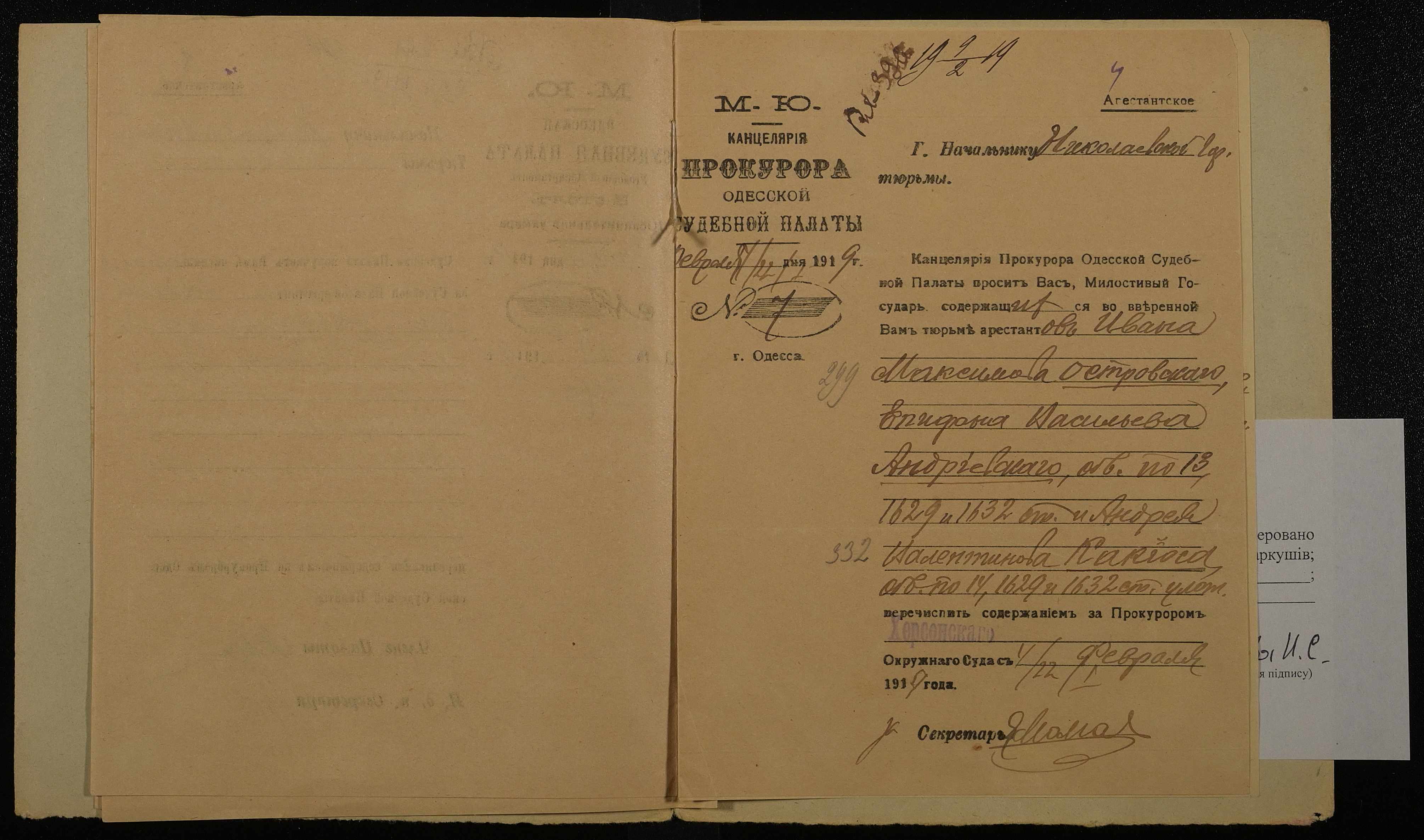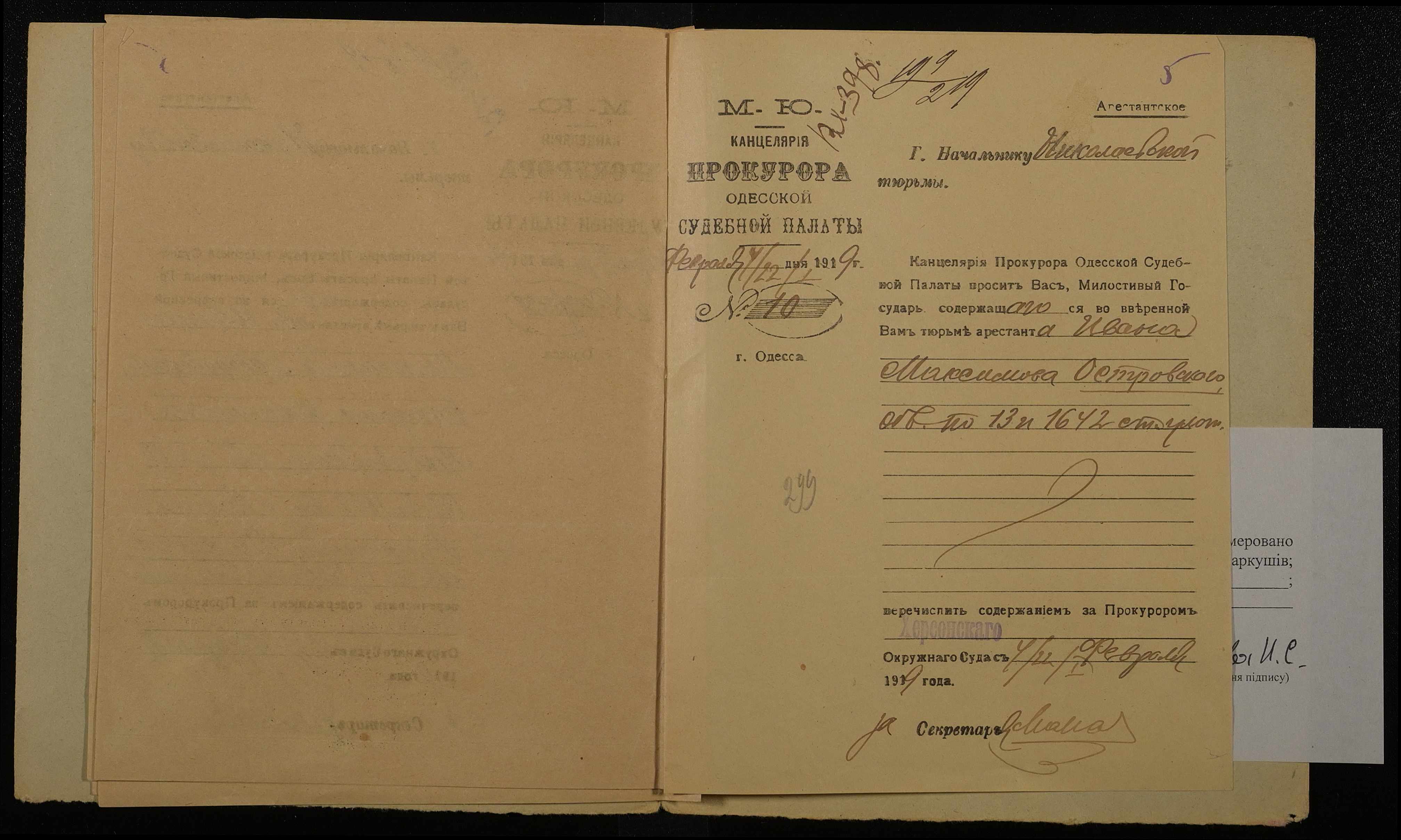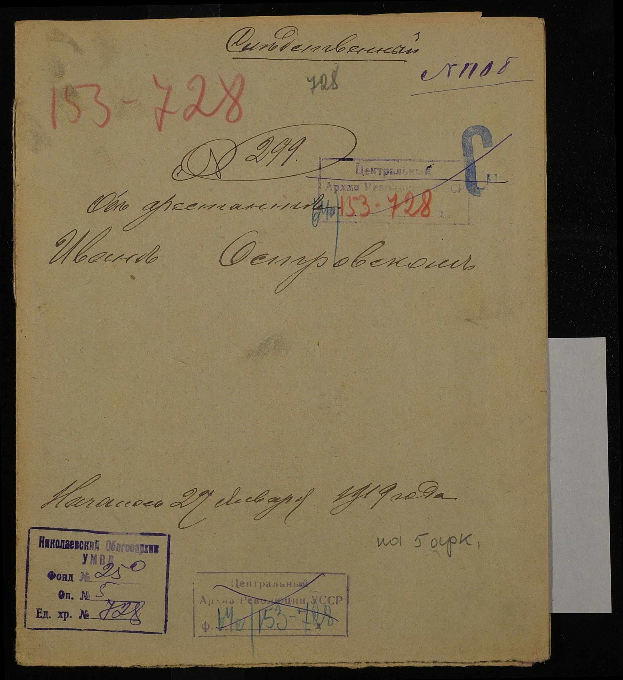 • • • • Справа № 728 Островський Іван Максимович (Островский Иван Максимович)