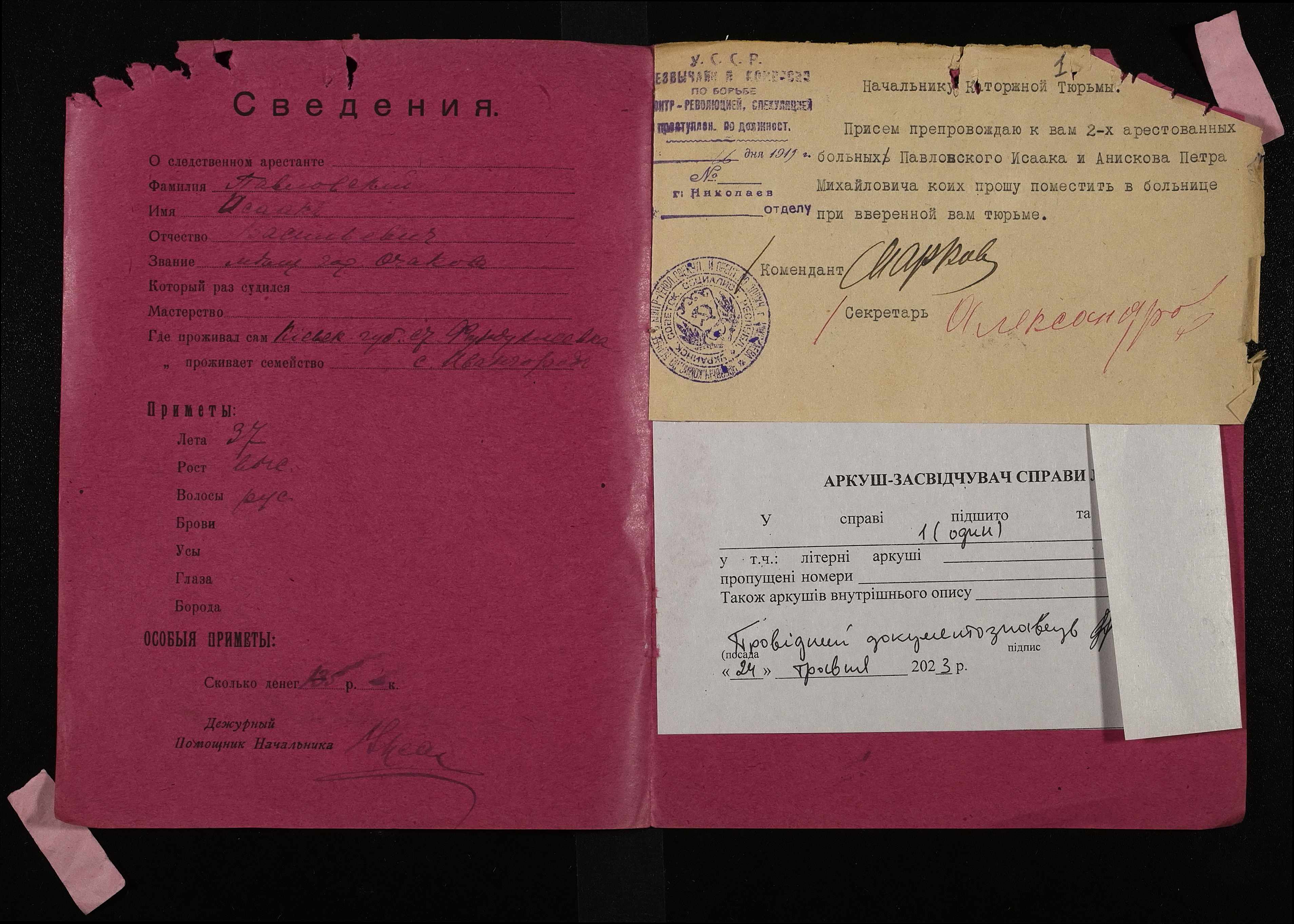 • • • • Справа № 735 Павловський Ісаак Васильович (Павловский Исаак Васильевич)