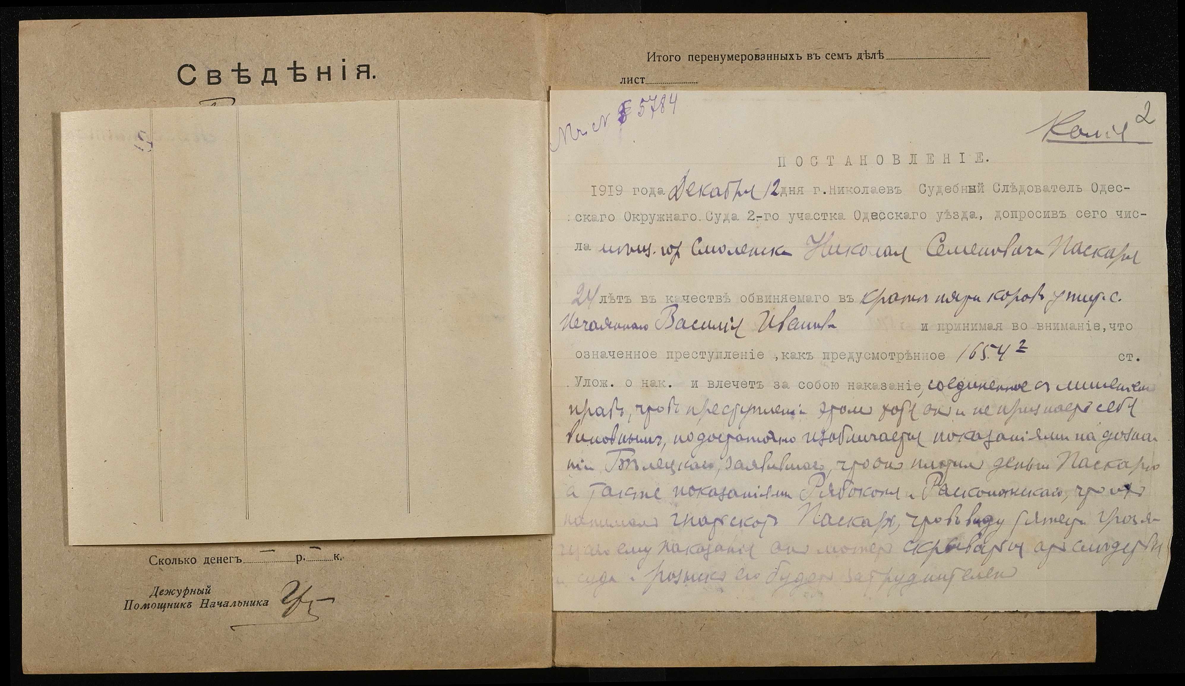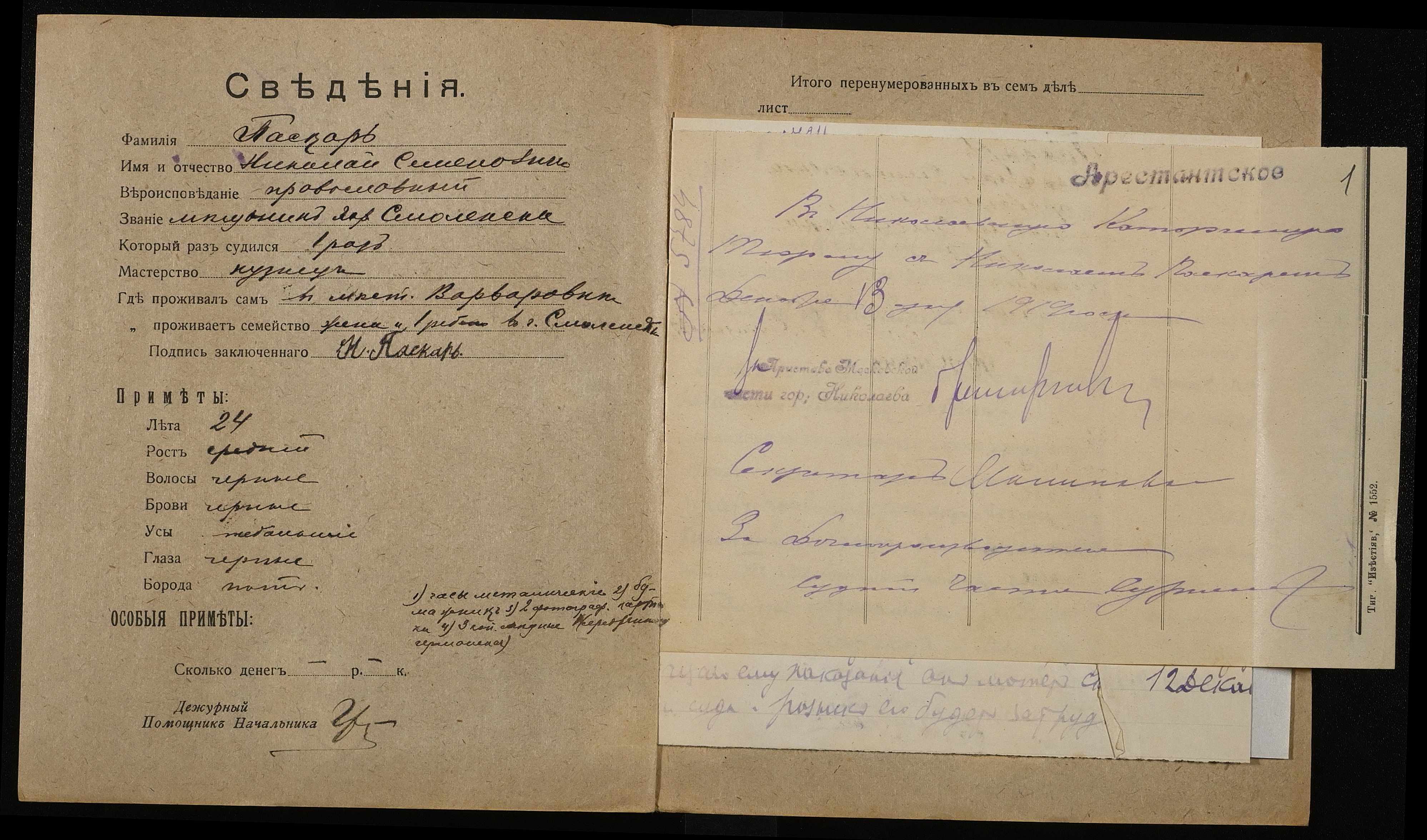 • • • • Справа № 741 Паскарь Микола Семенович (Паскарь Николай Семенович)