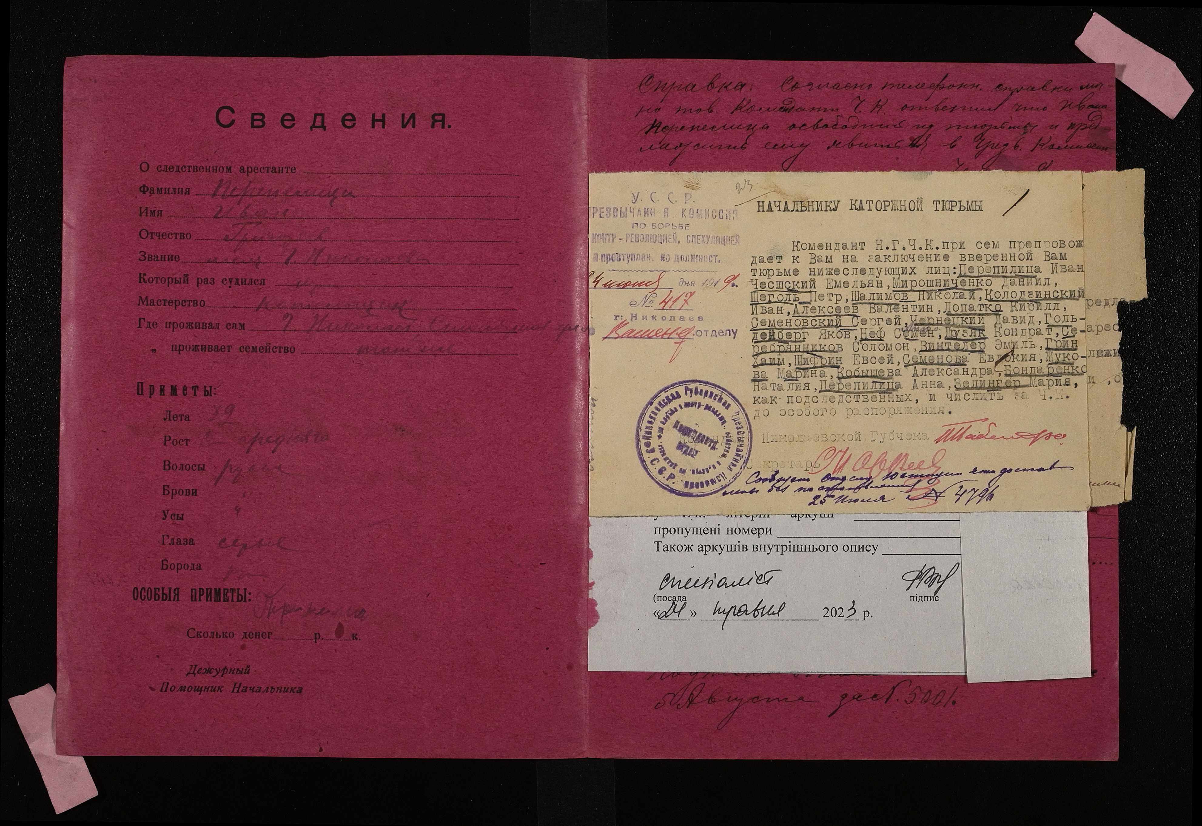 • • • • Справа № 744 Перепелиця Іван Григорович (Перепелица Иван Григорьевич)