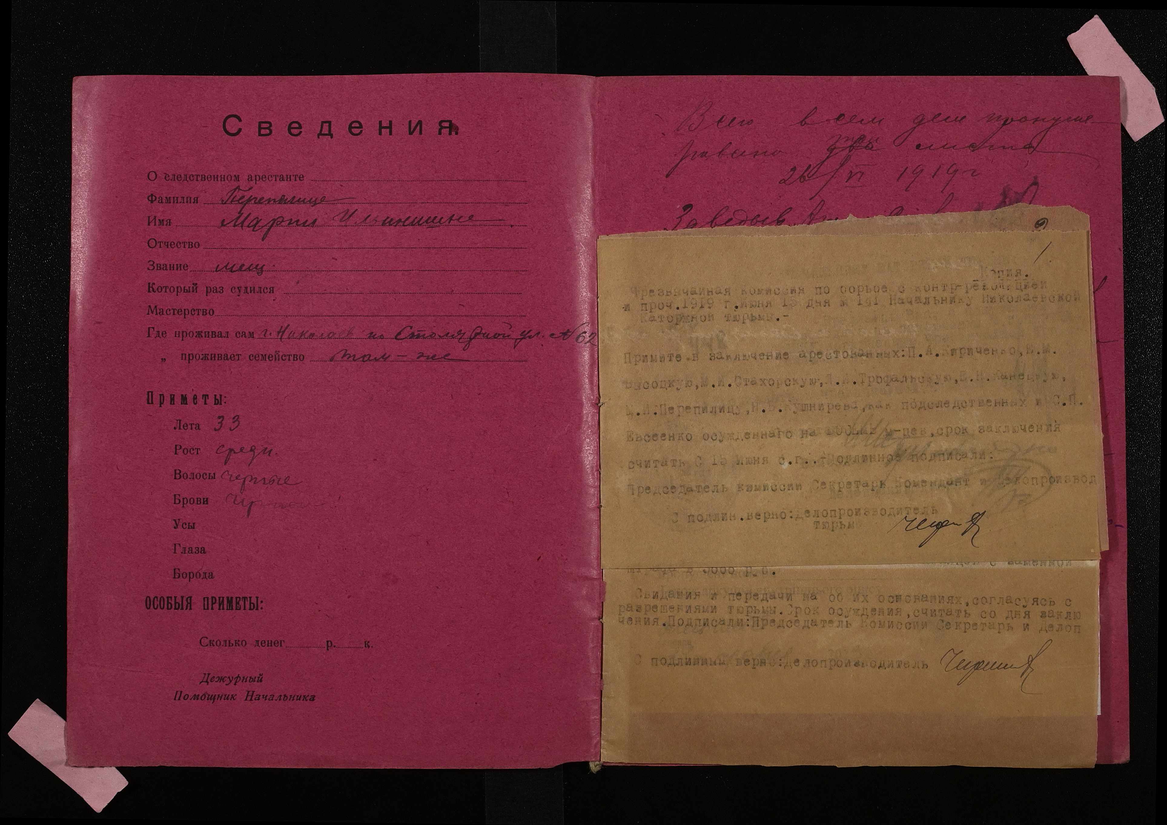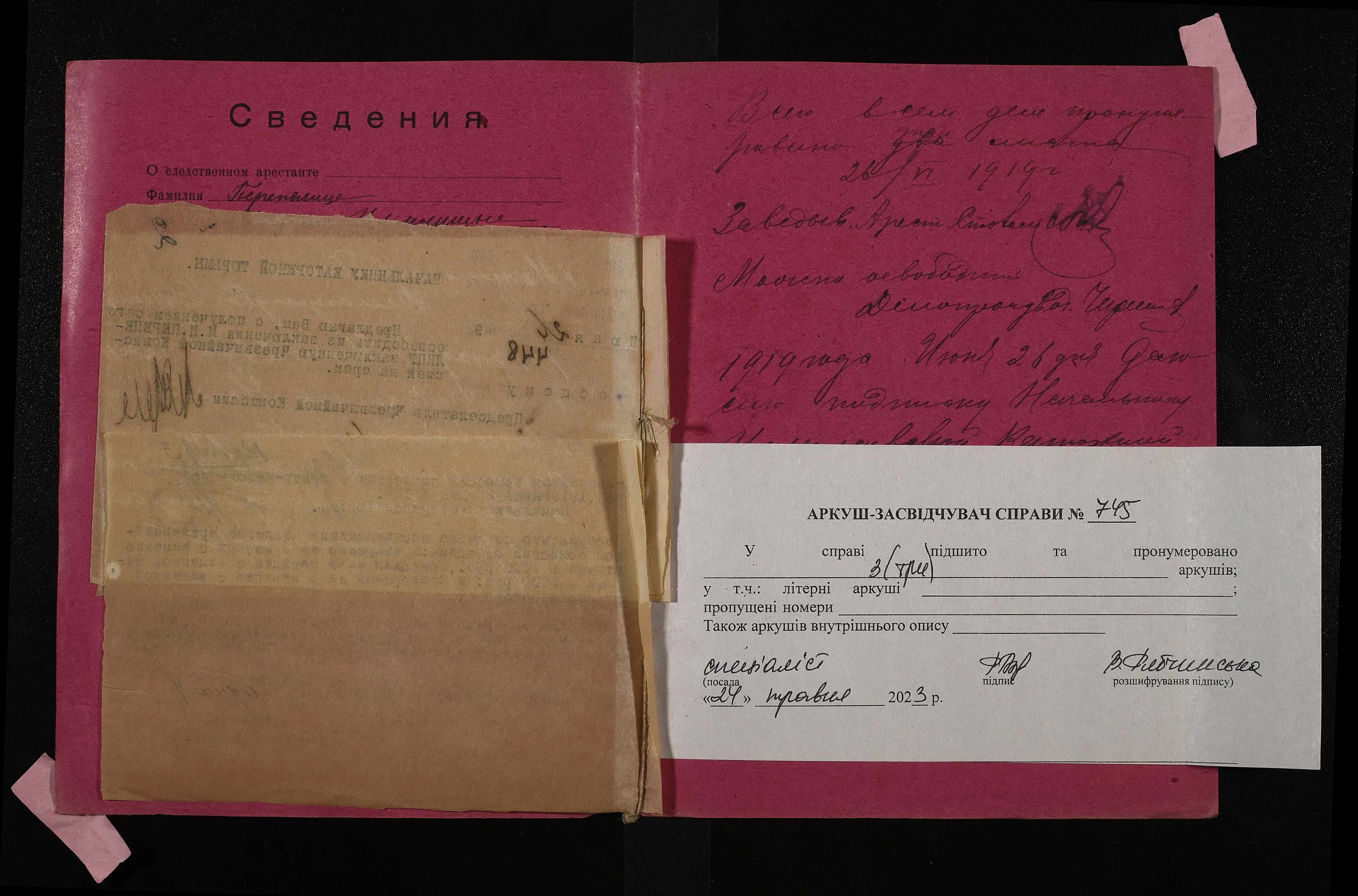 • • • • Справа № 745 Перепилиця Марія Іллівна (Перепелиця Мария Ильинична)