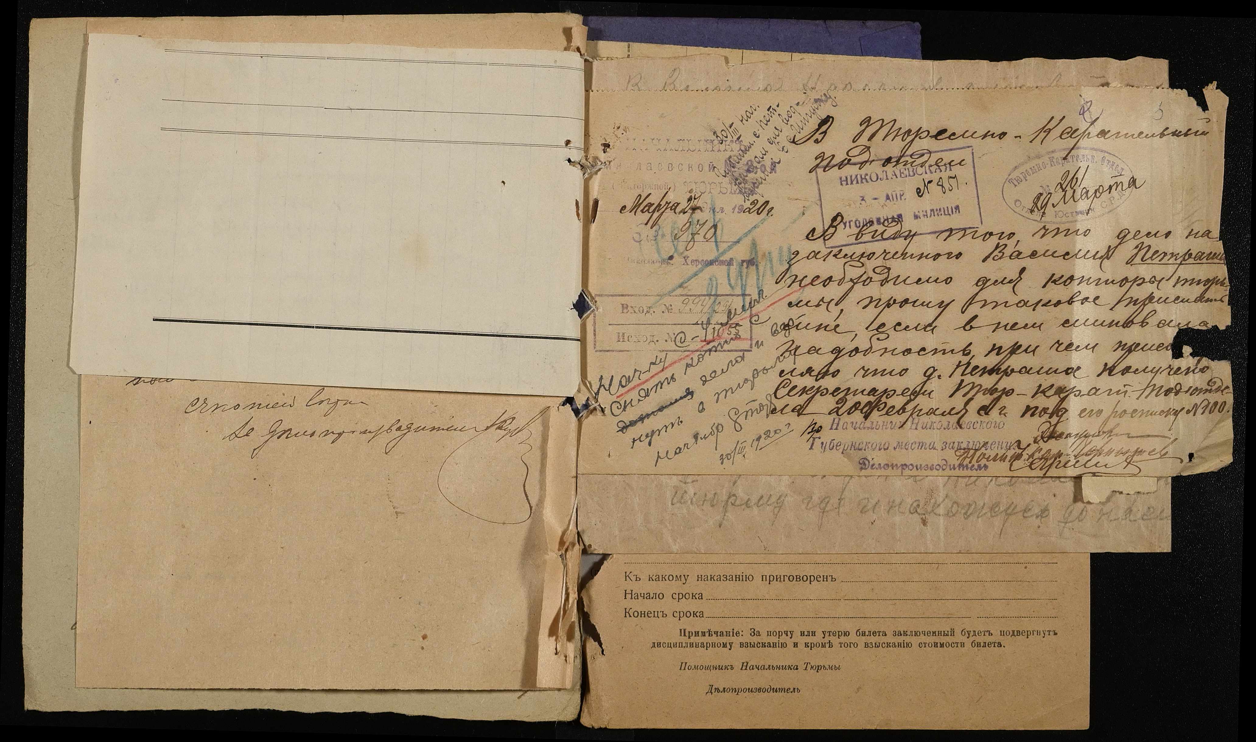 ◦ ◦ Фонд № 250 “Миколаївська каторжна тюрма № 2”