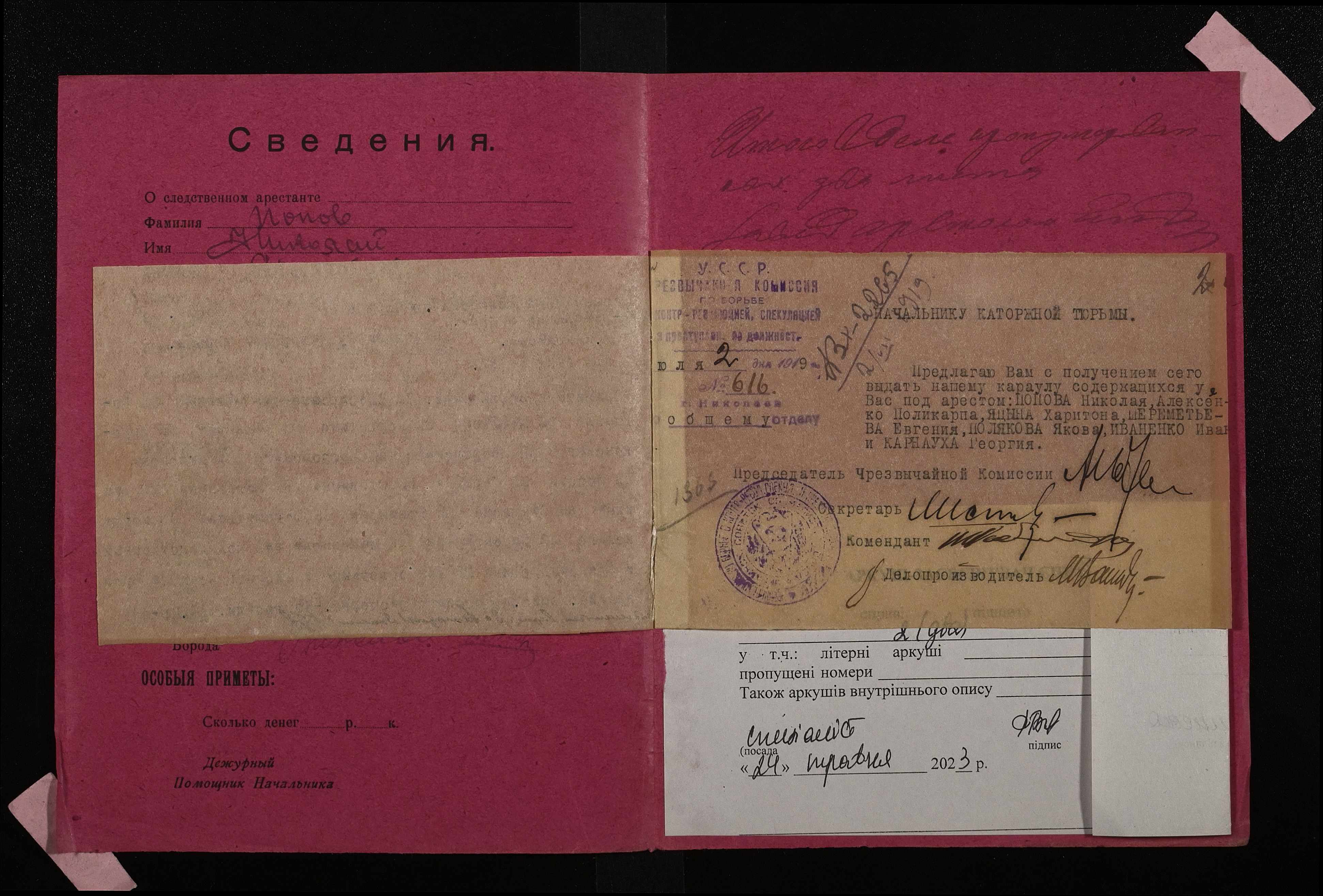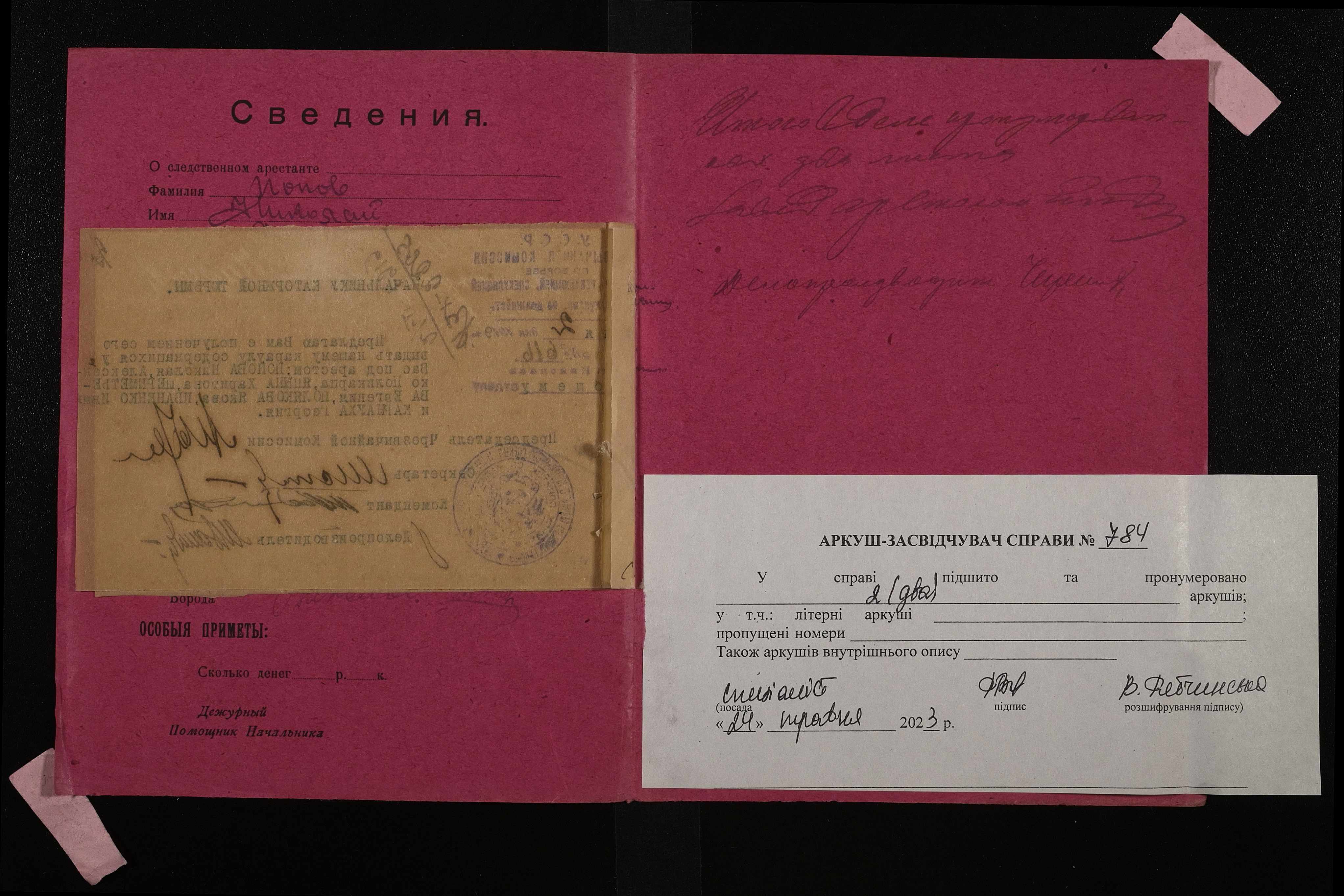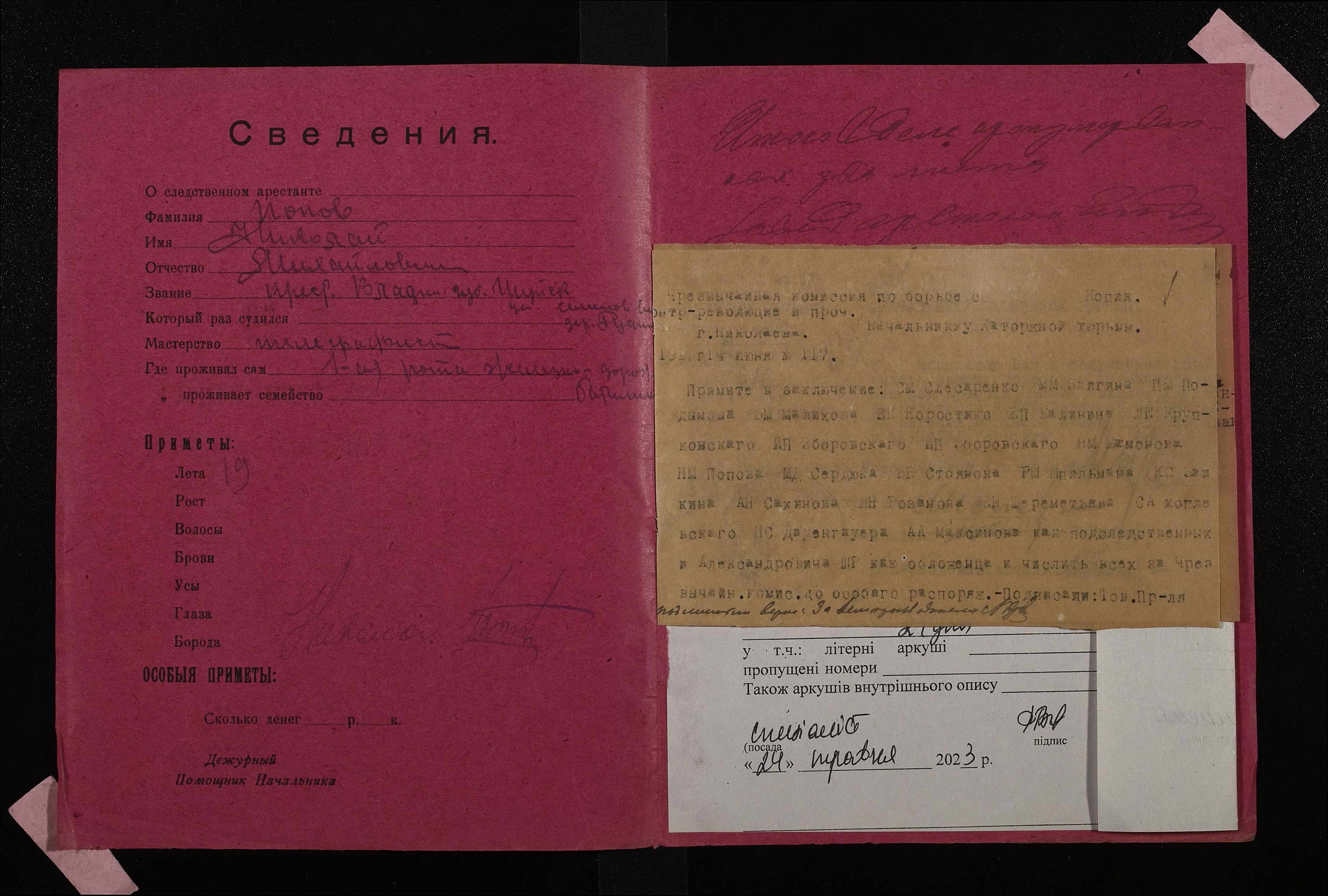 • • • • Справа № 784 Повов Микола Михайлович (Попов Николай Михайлович)