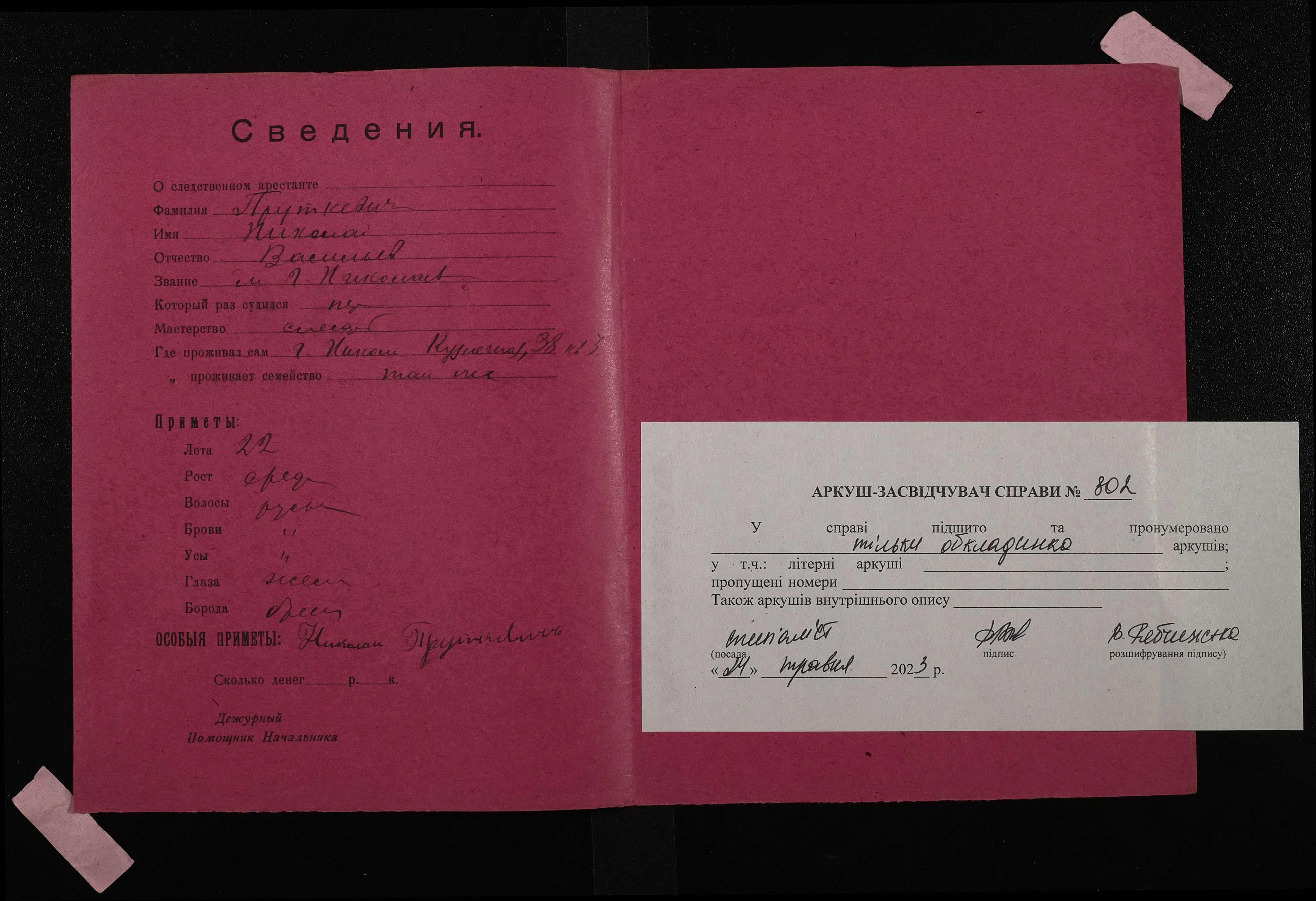 • • • • Справа № 802 Пруткевич Микола Васильович (Пруткевич Николай Васильович)