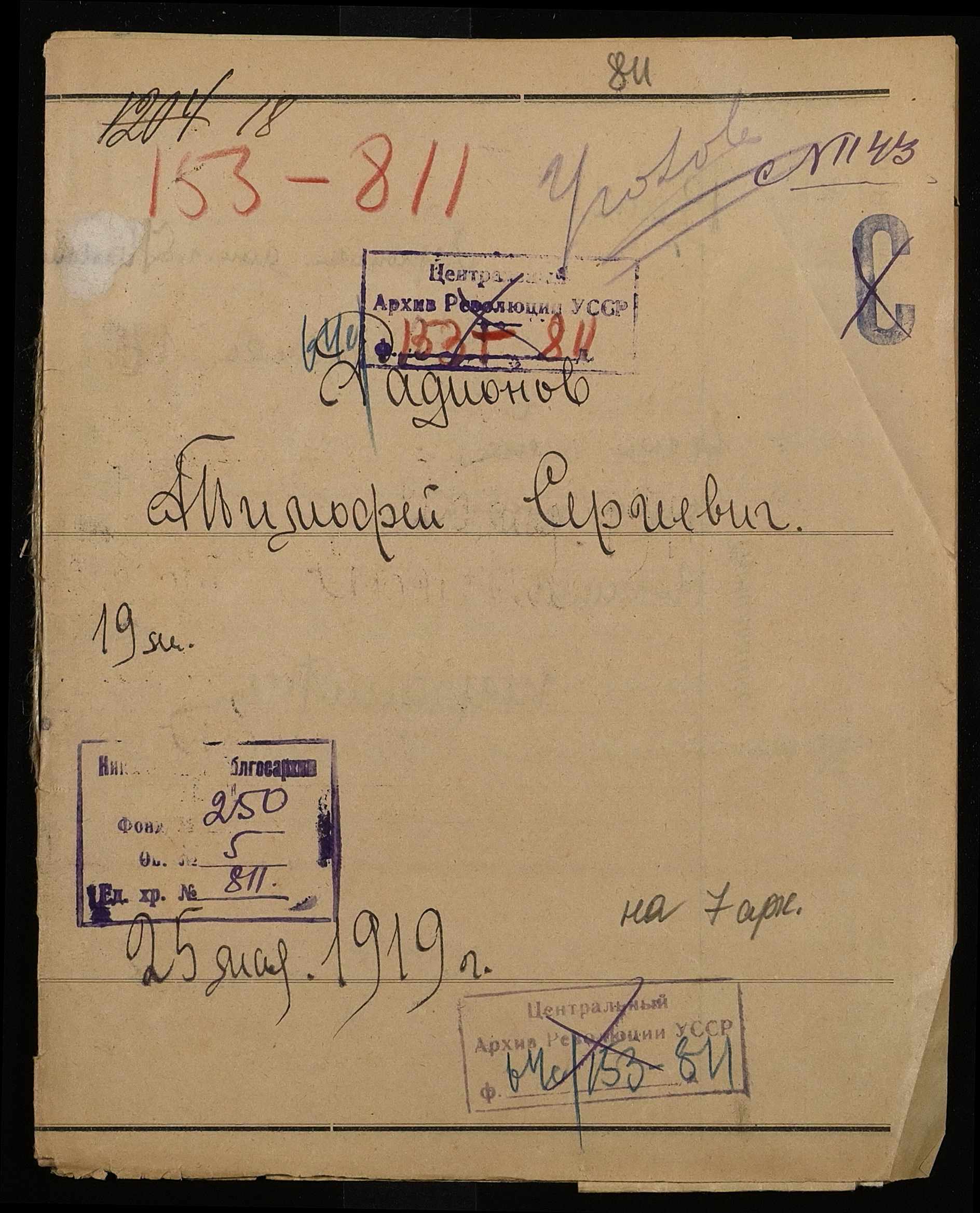 • • • • Справа № 811 Родіонов Тимофій Сергійович (Родионов Тимофей Сергеевич)