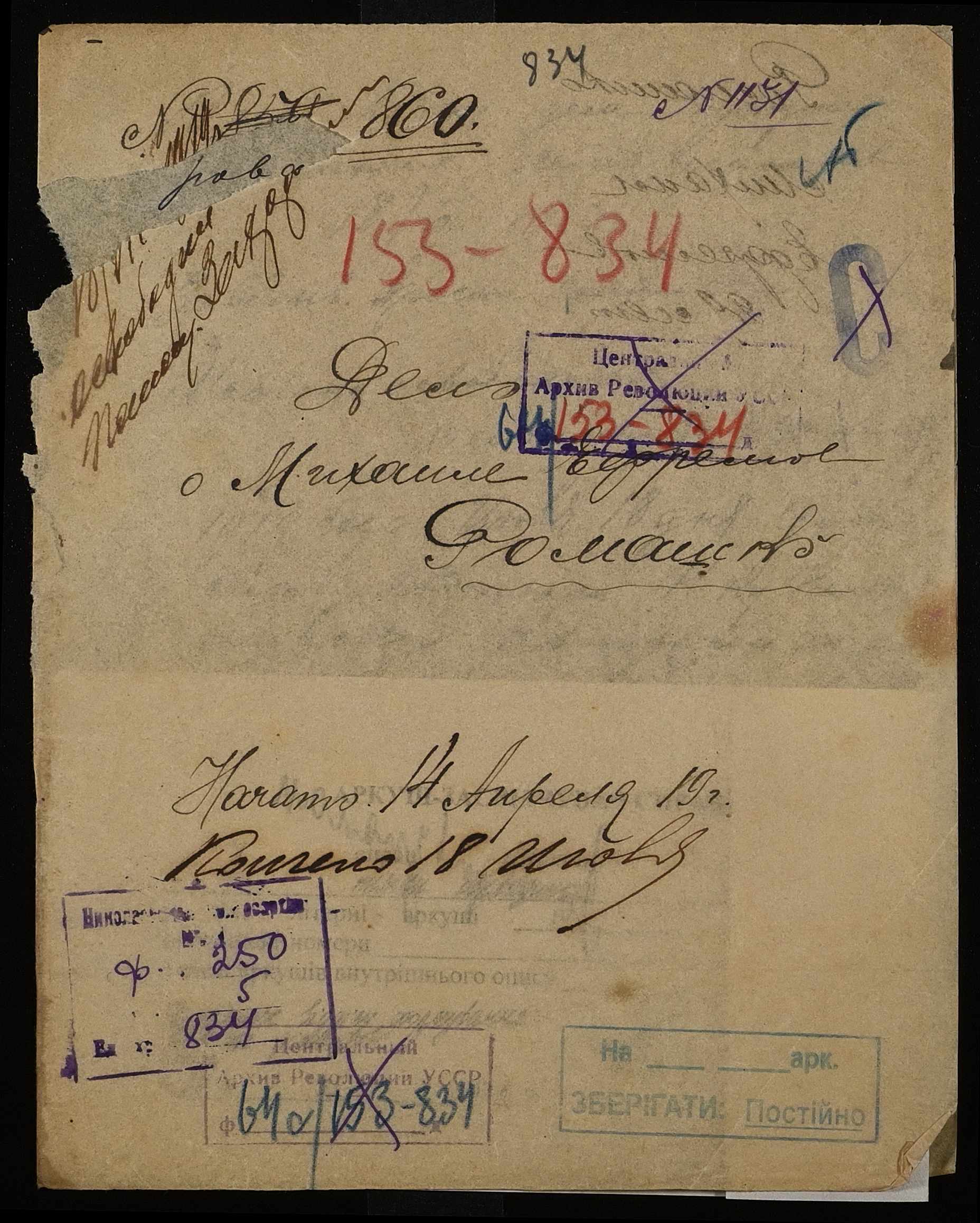 • • • • Справа № 834 Ромашко Михайло Єфремович (Ромашко Михаил Ефремович)