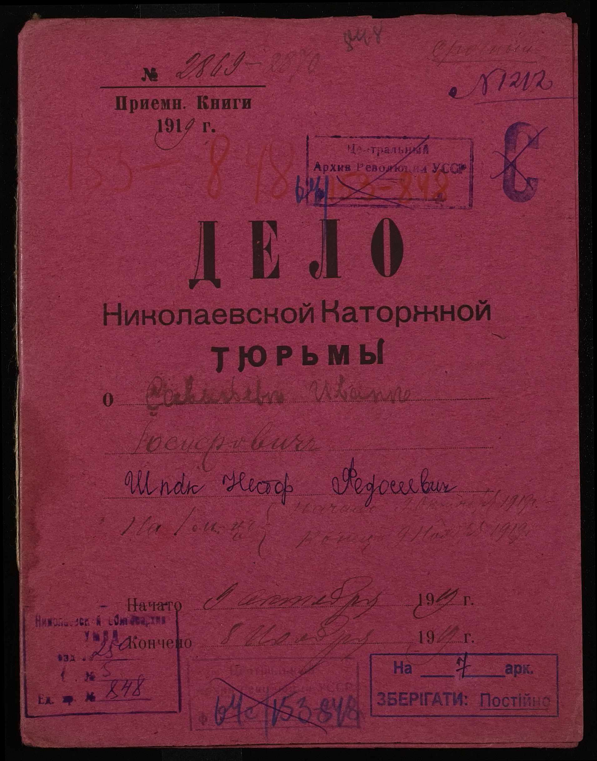 • • • • Справа № 848 Савельєв Іван Йосипович (Савельев Иван Иосифович), Шпак Нестор Феодосійович (Шпак Нестор Феодосеевич)
