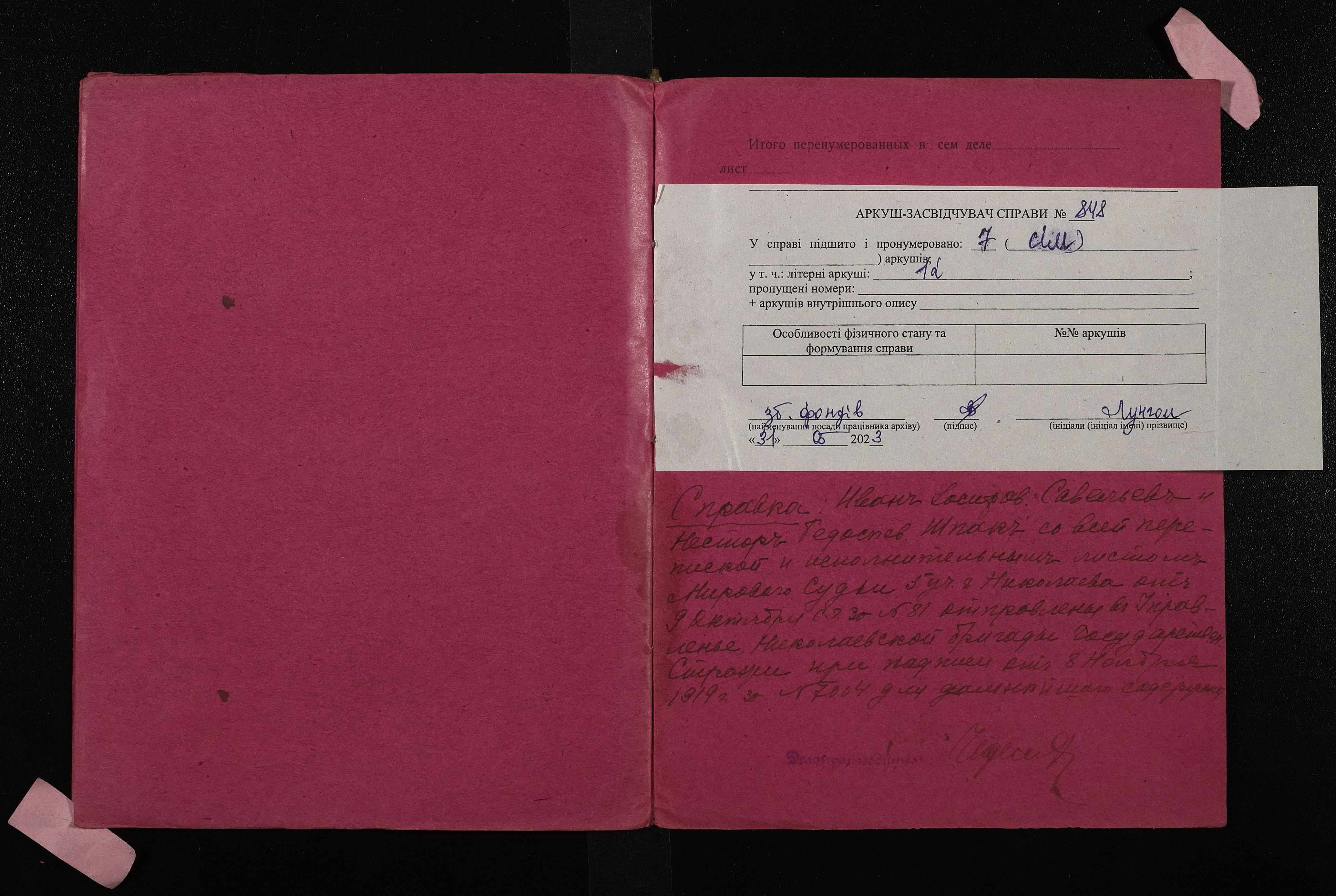 Фонд 250 / Опис 5 / Справа 0848