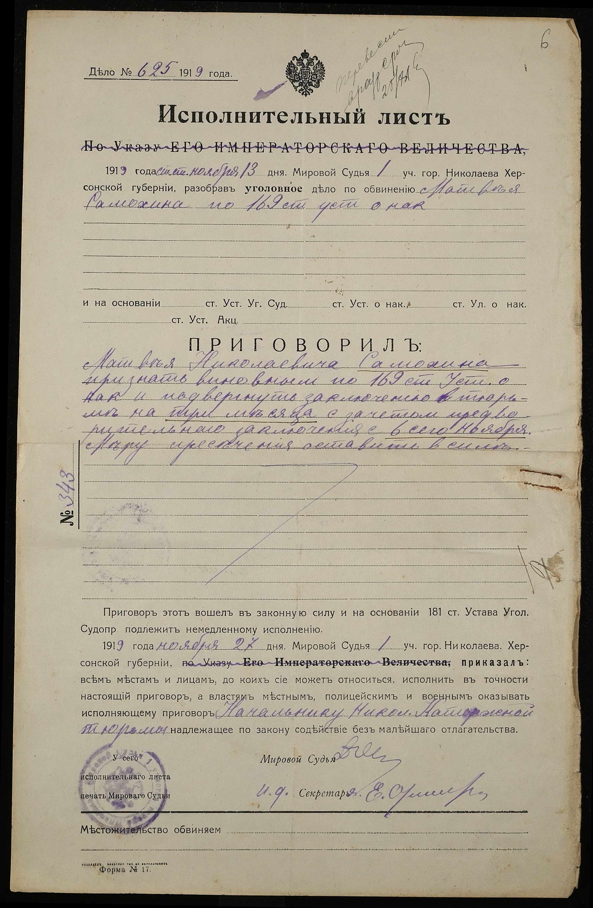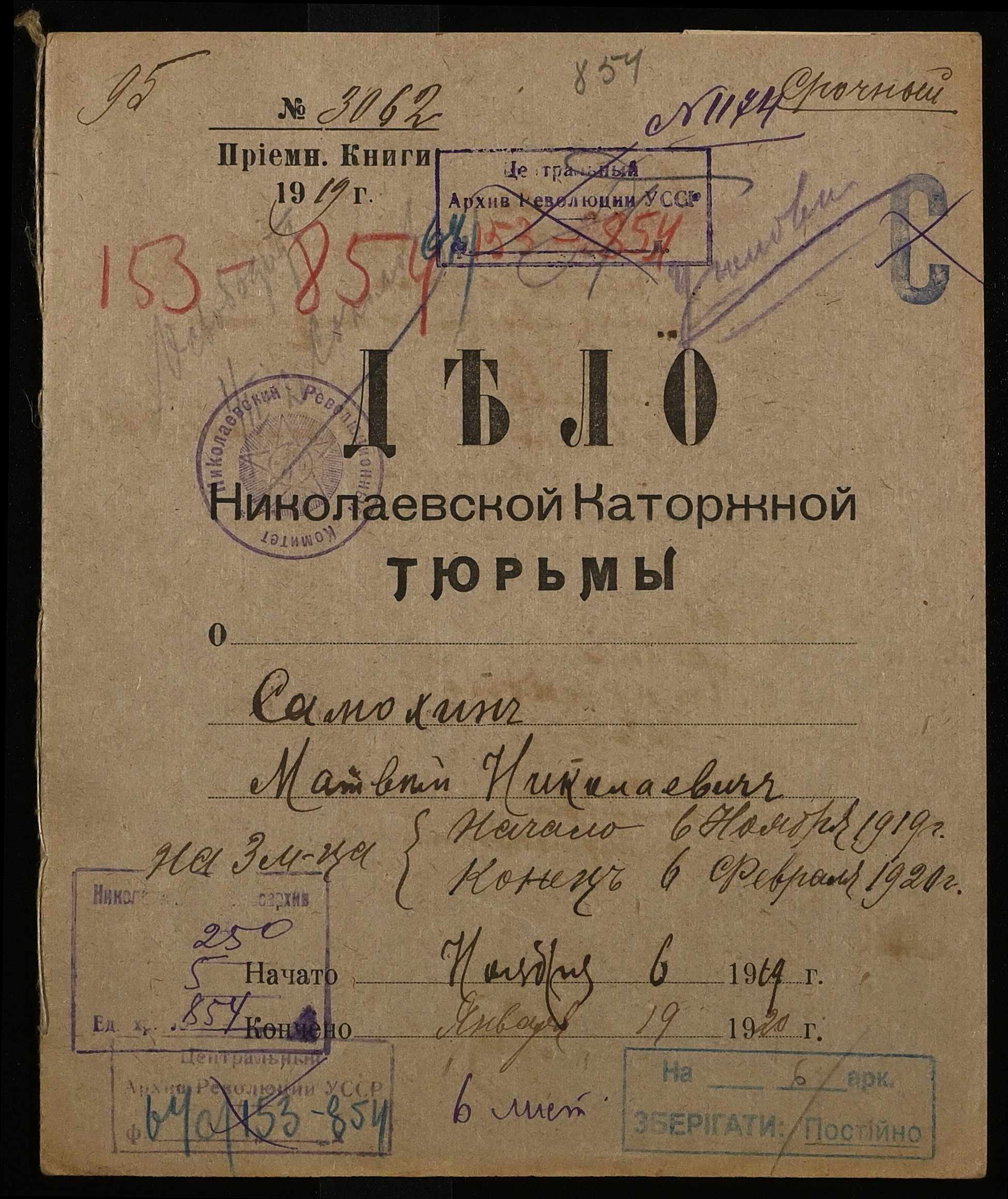 • • • • Справа № 854 Самохін Матвій Миколайович (Самохин Матвей Николаевич)
