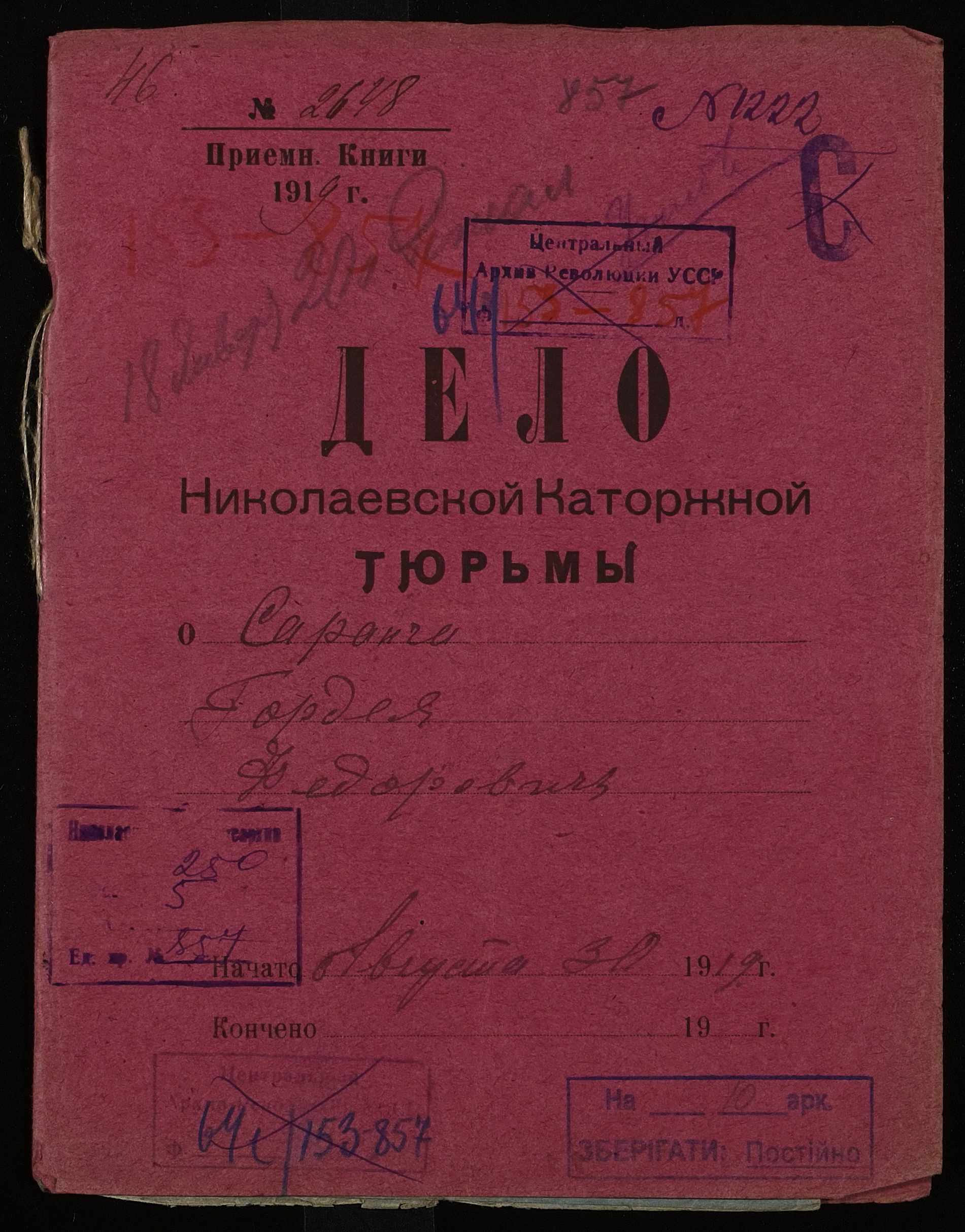 • • • • Справа № 857 Саранча Гордій Федорович (Саранча Гордей Федорович)