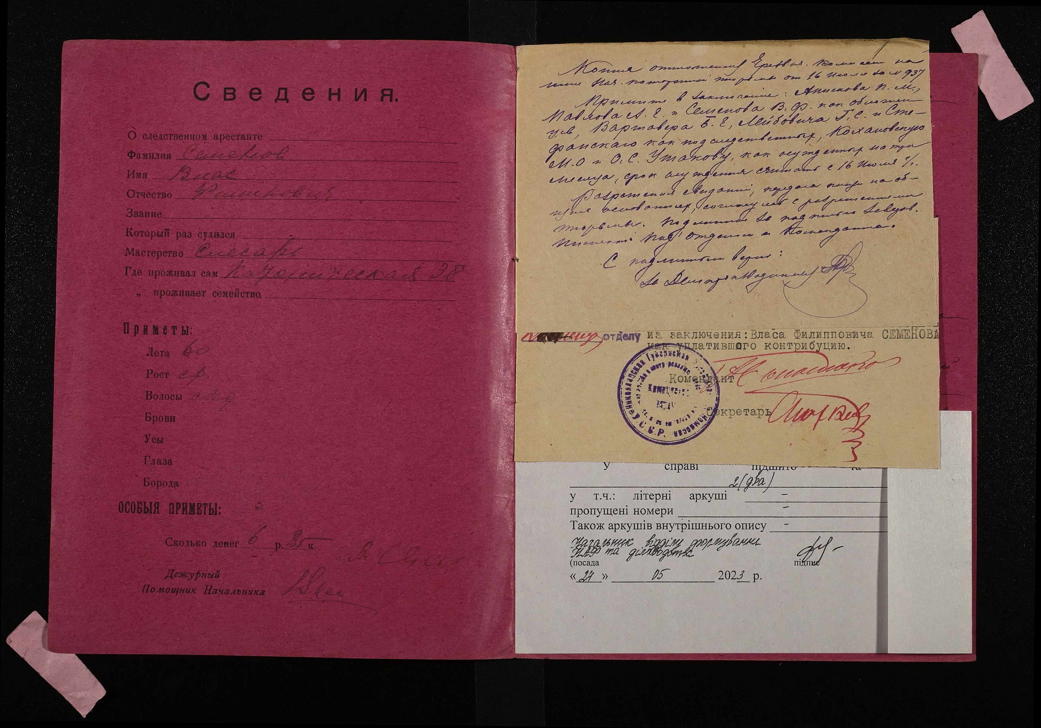 • • • • Справа № 867 Семенов Влас Пилипович (Семенов Влас Филиппович)
