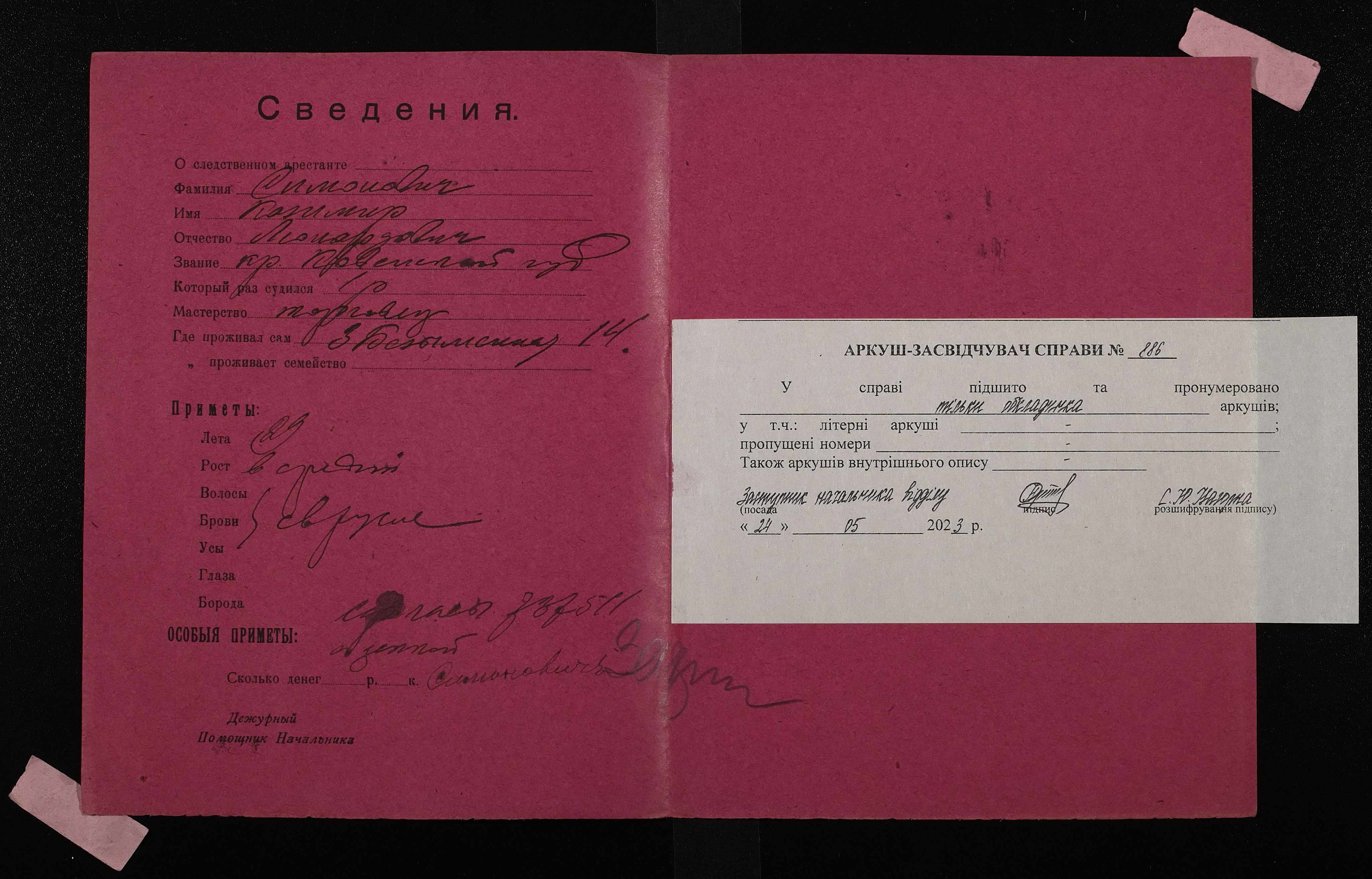 • • • • Справа № 886 Симонович Казимир Леонардович (Симонович Казимир Леонардович)