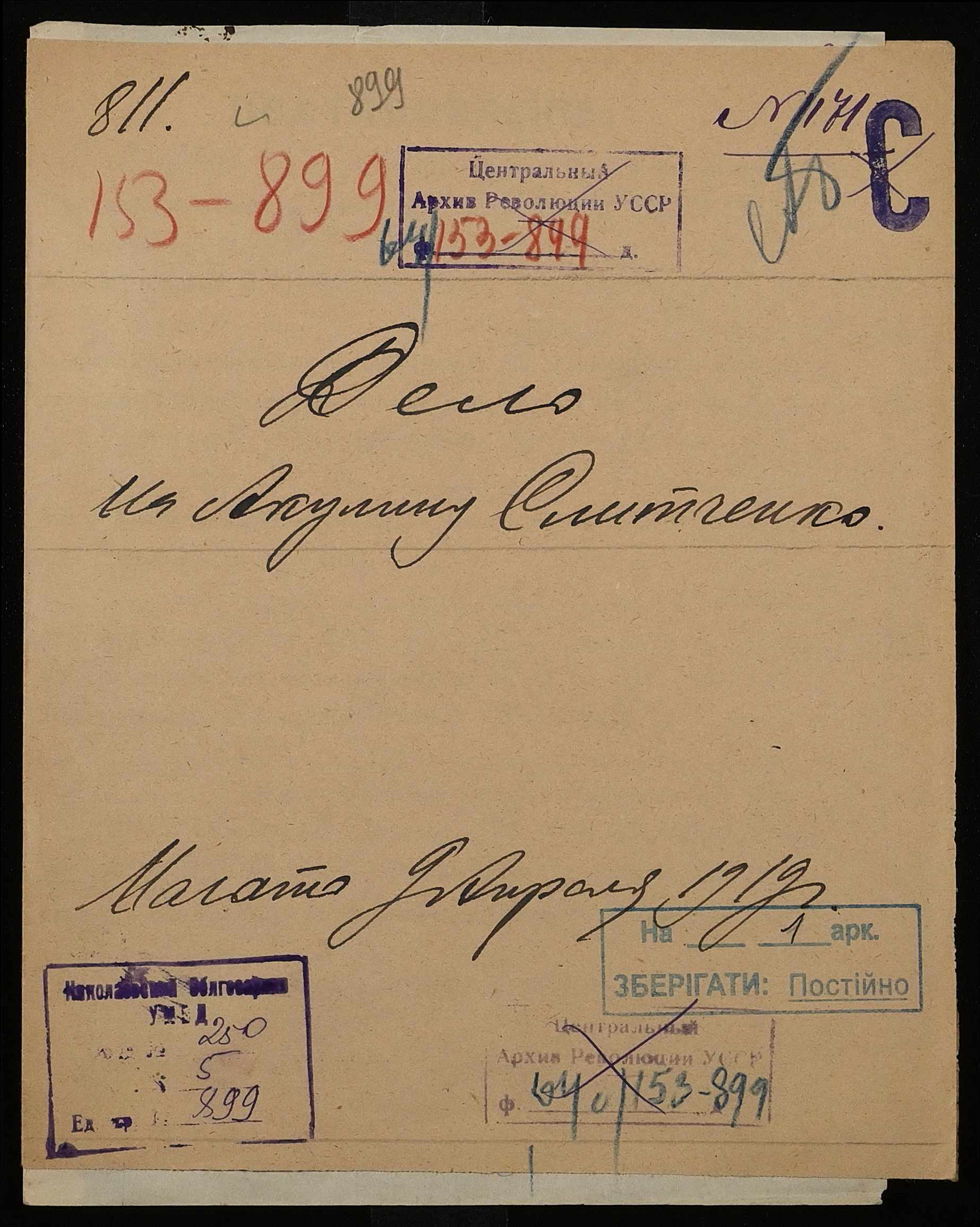 Фонд 250 / Опис 5 / Справа 0899