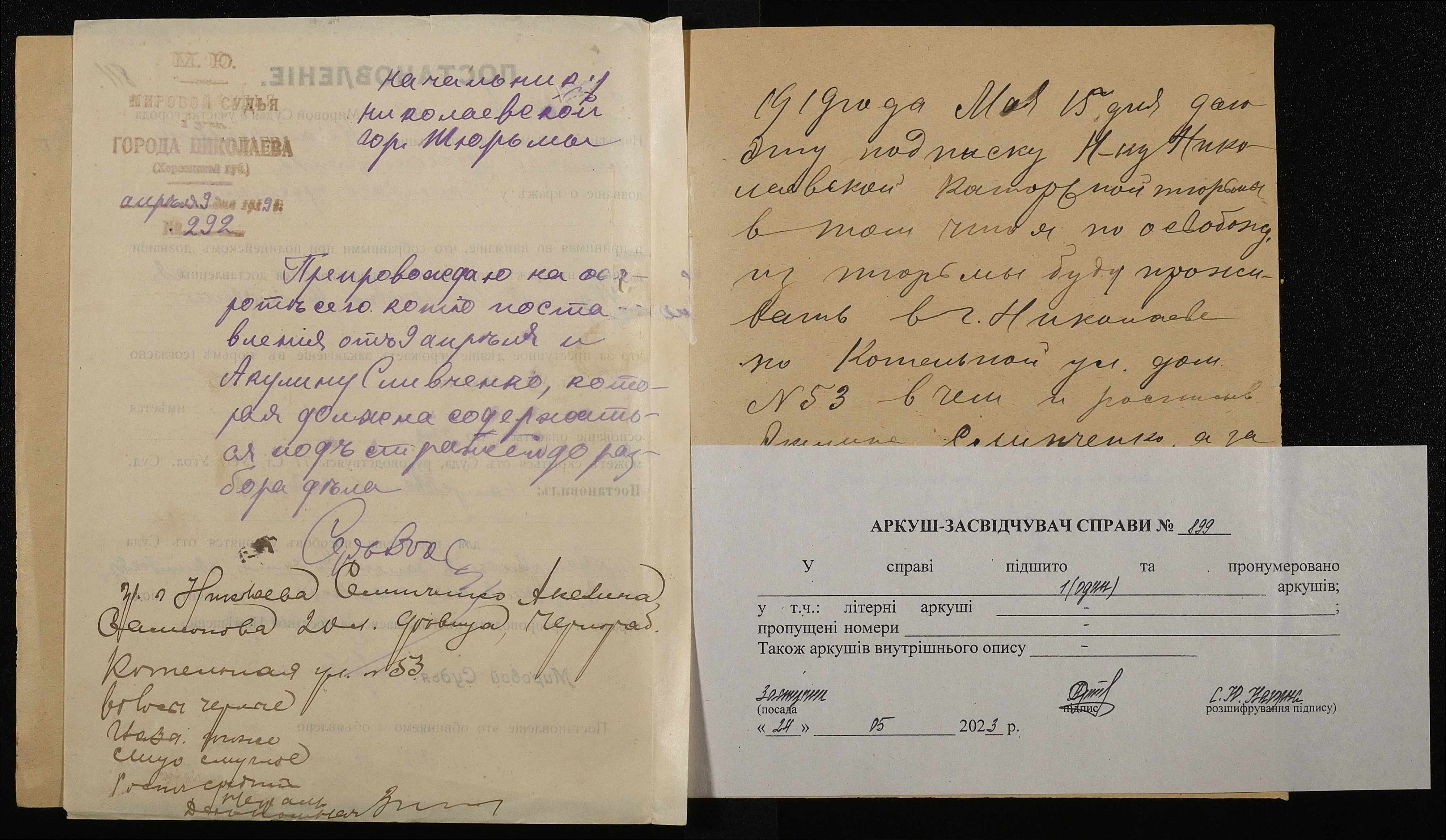 ◦ ◦ Фонд № 250 “Миколаївська каторжна тюрма № 2”