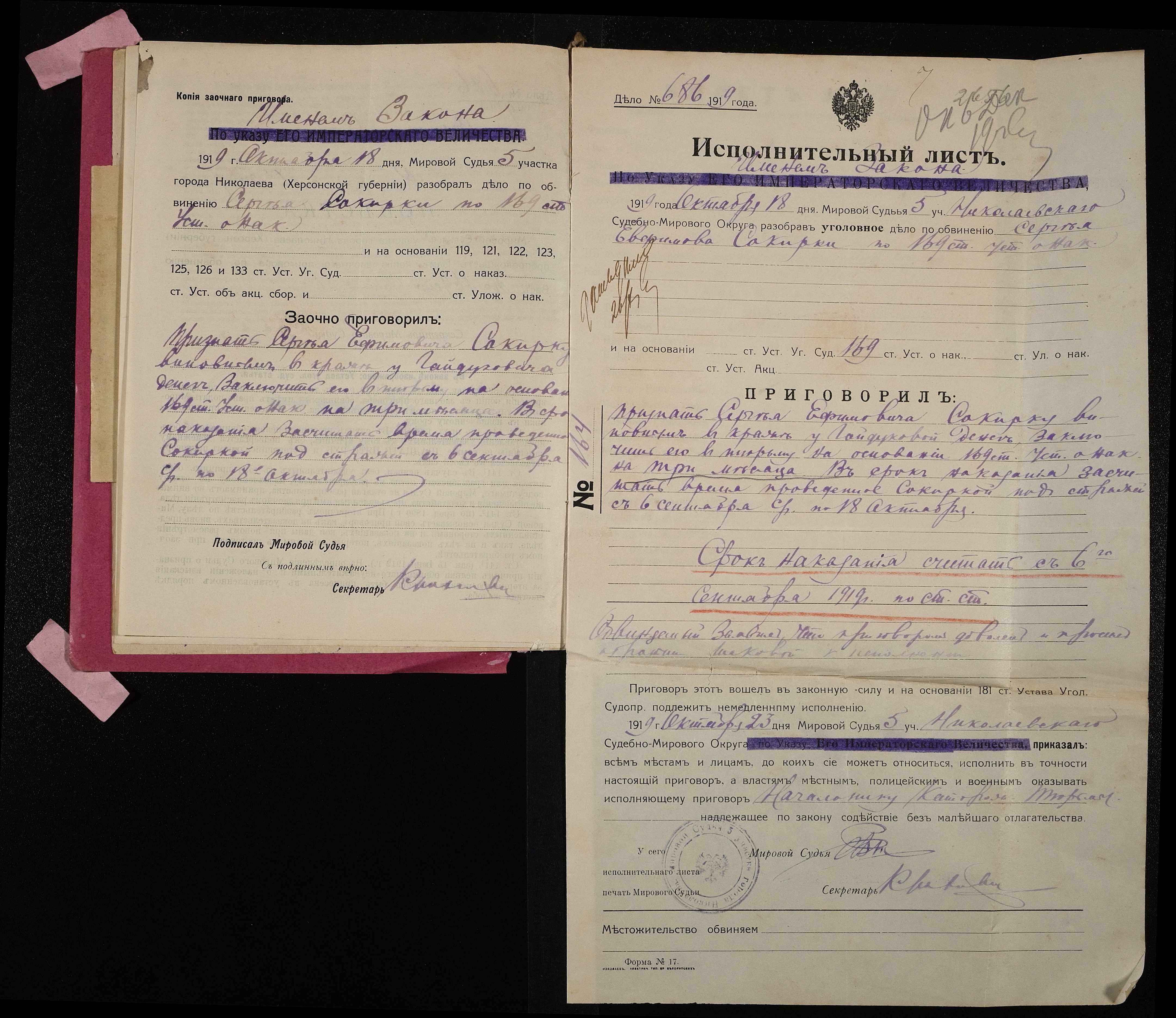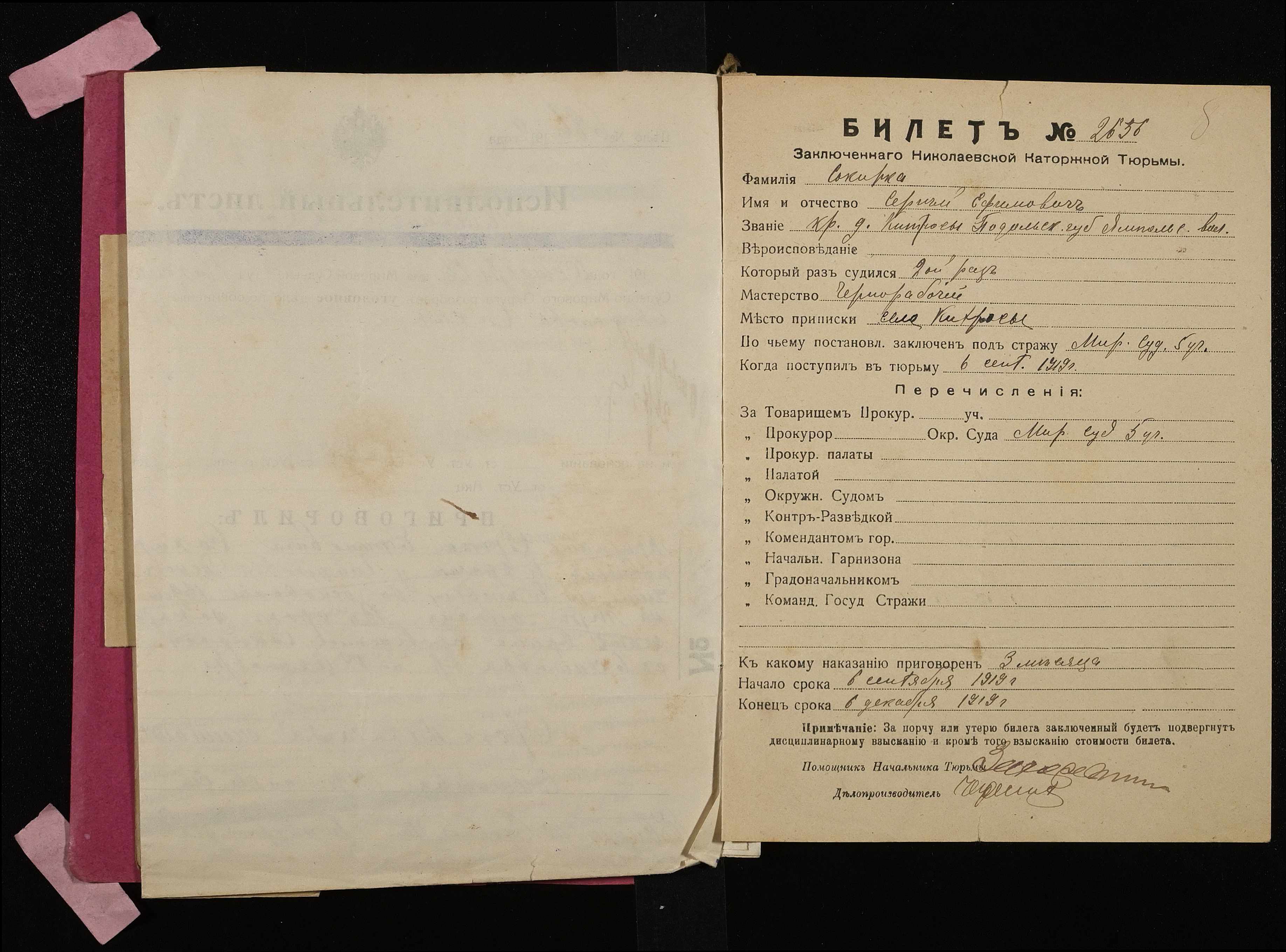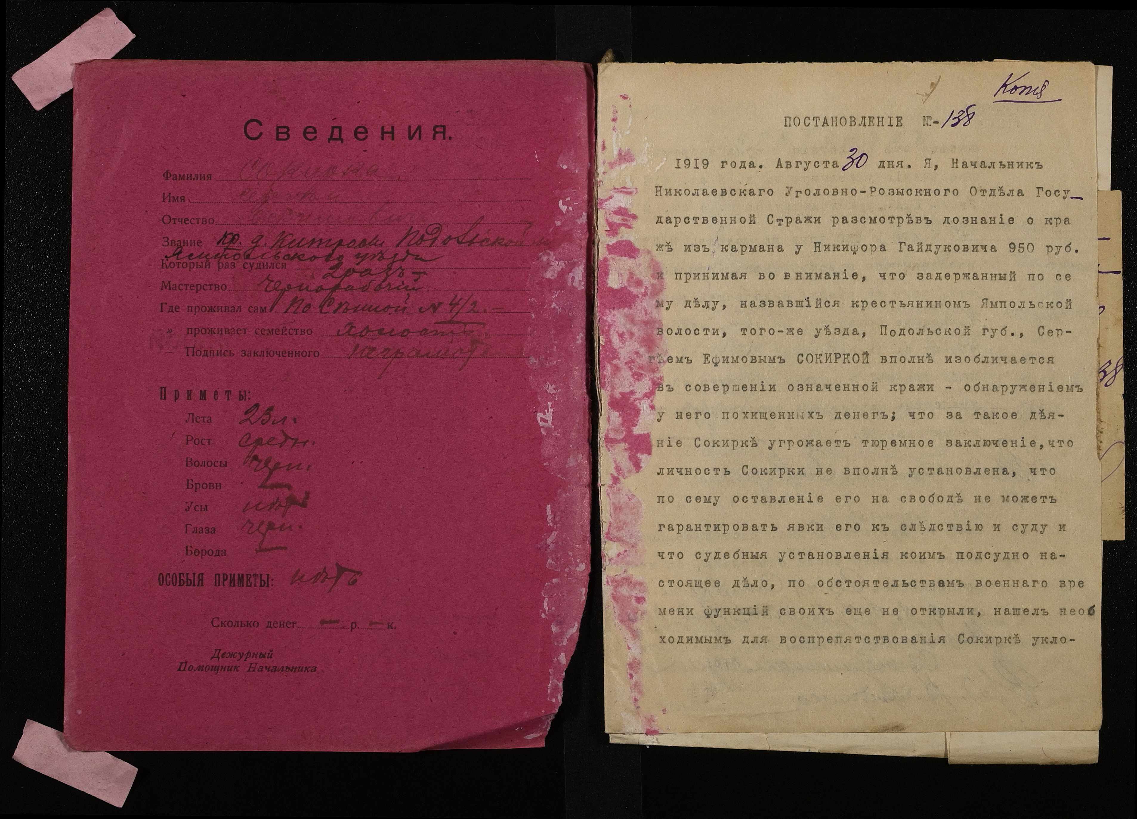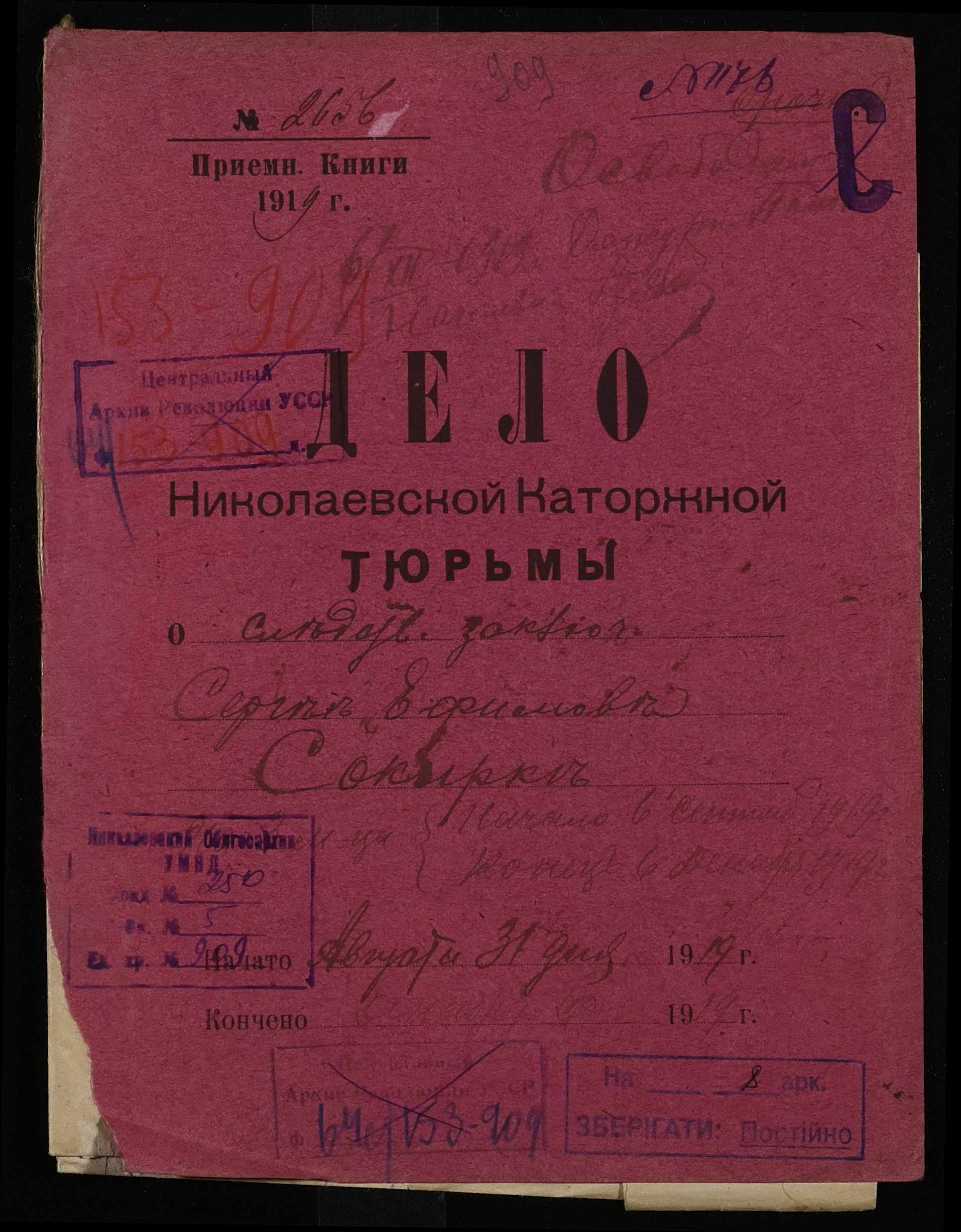 • • • • Справа № 909 Сокирко Сергій Юхимович (Сокирко Сергей Ефимович)