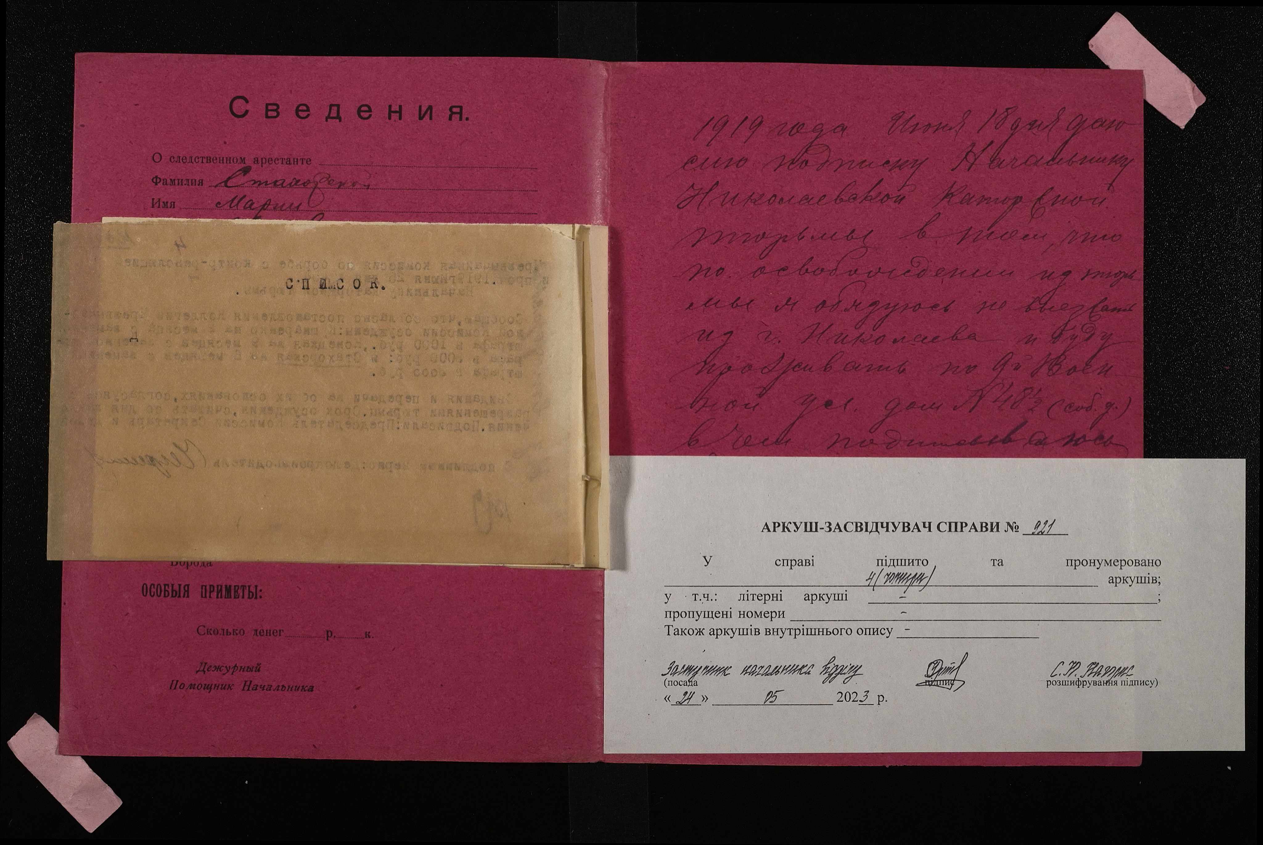 • • • • Справа № 921 Стахорська Марія Іванівна (Стахорская Мария Ивановна)