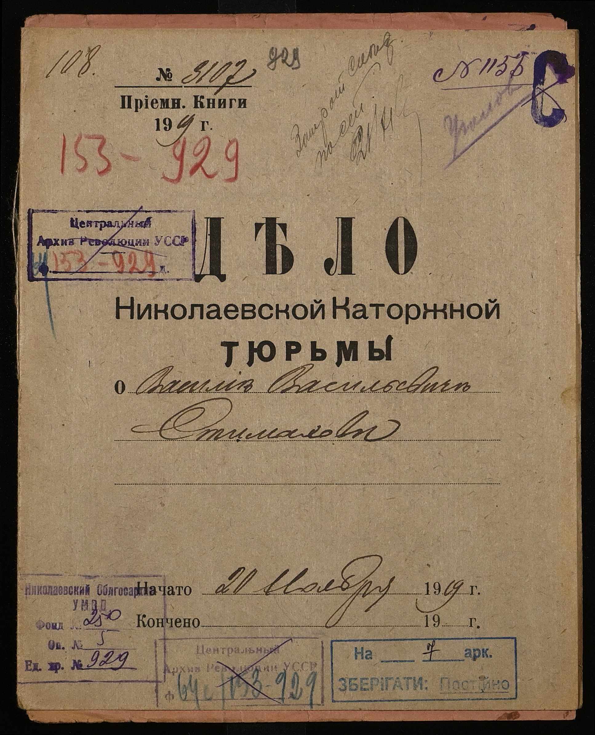• • • • Справа № 929 Стимахов Василь Васильович (Стимахов Василий Васильевич)