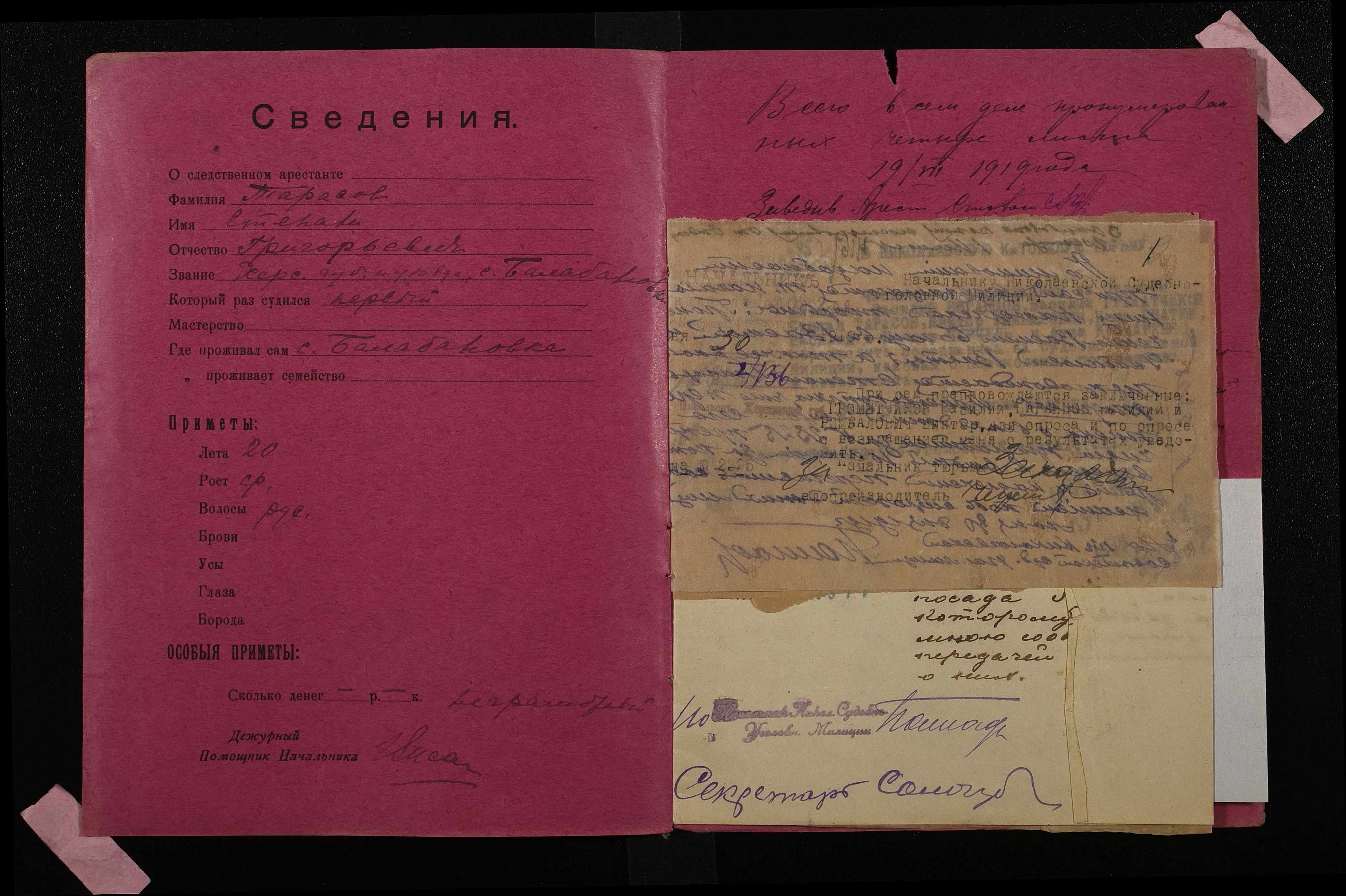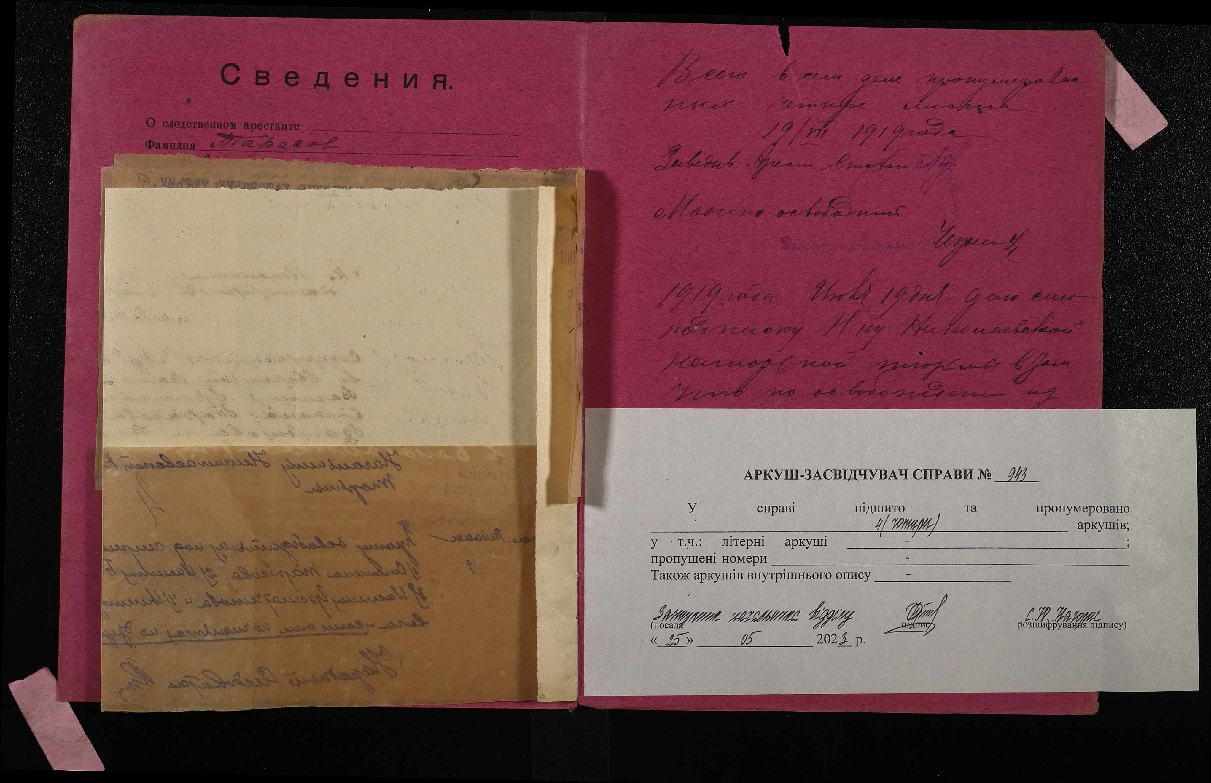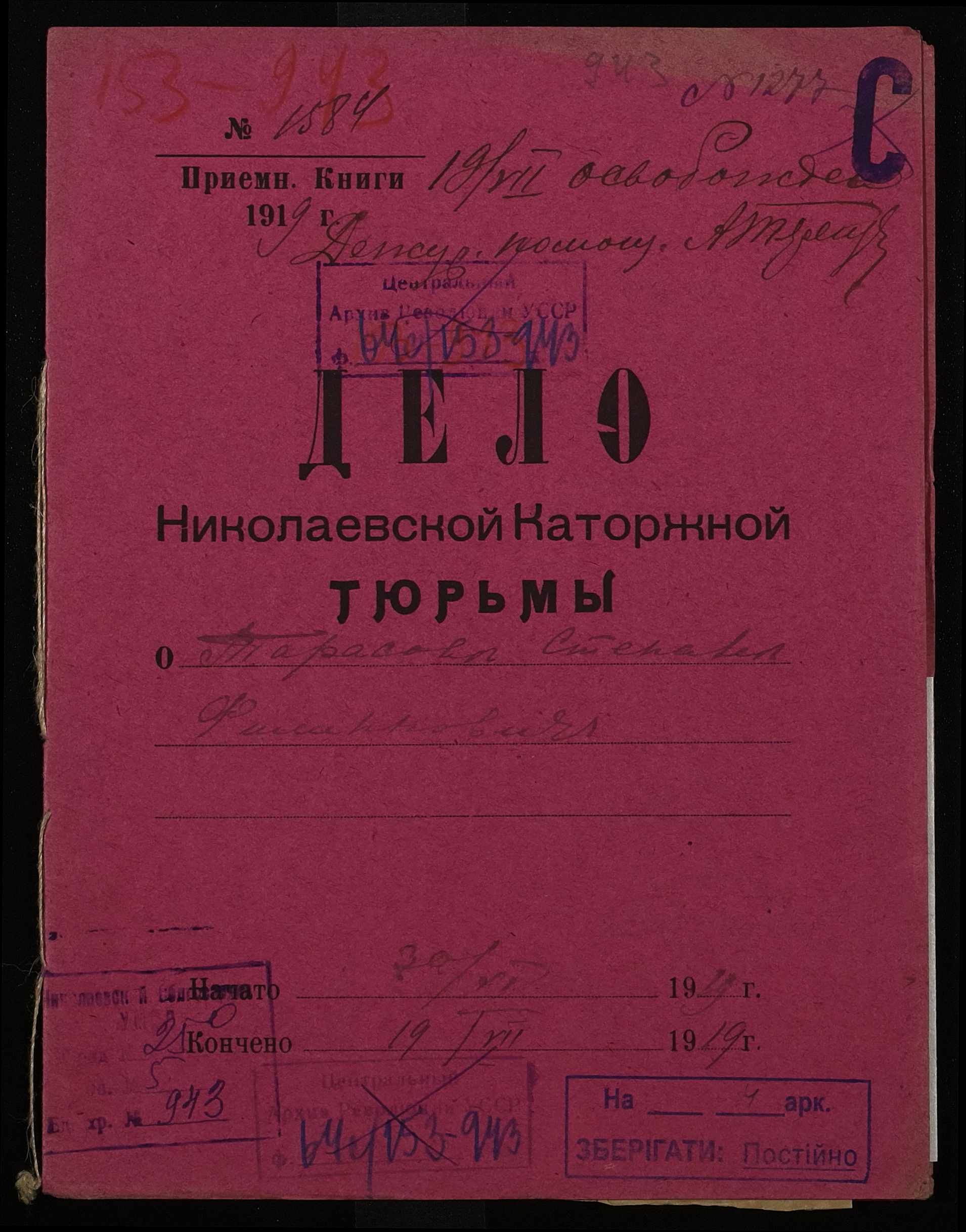 • • • • Справа № 943 Тарасов Степан Пилипович (Тарасов Степан Филиппович)