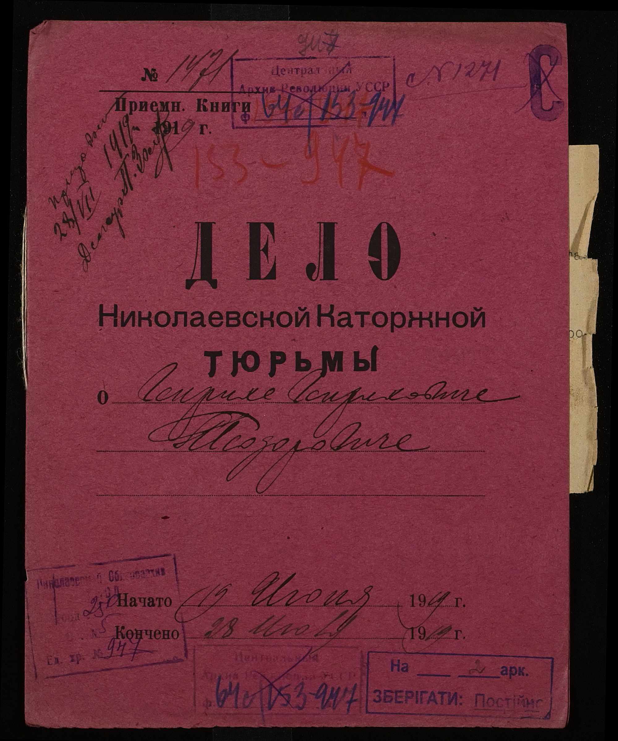 ◦ ◦ Фонд № 250 “Миколаївська каторжна тюрма № 2”