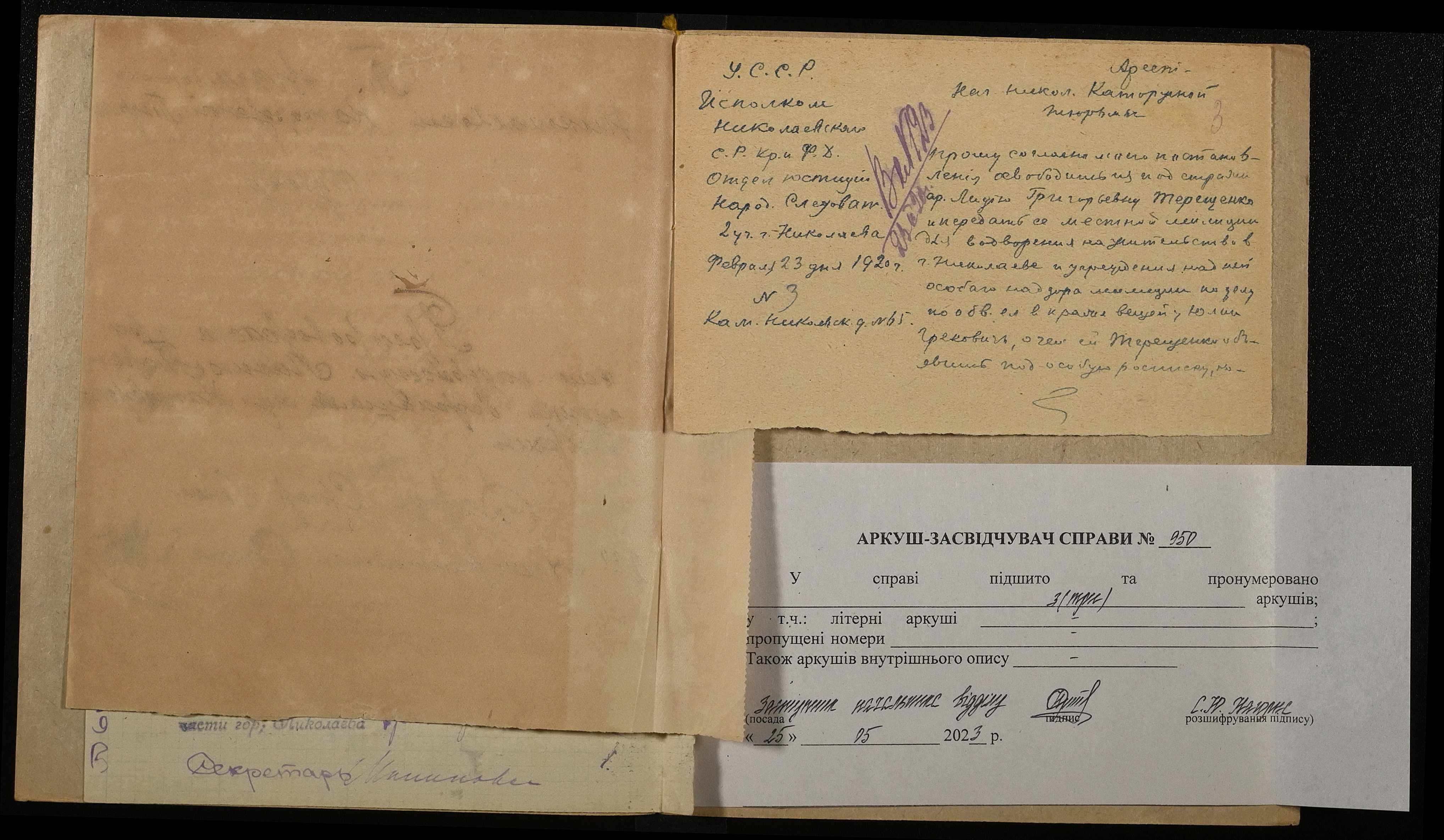 • • • • Справа № 950 Терещенко Лідія Григорівна (Терещенко Лидия Григорьевна)
