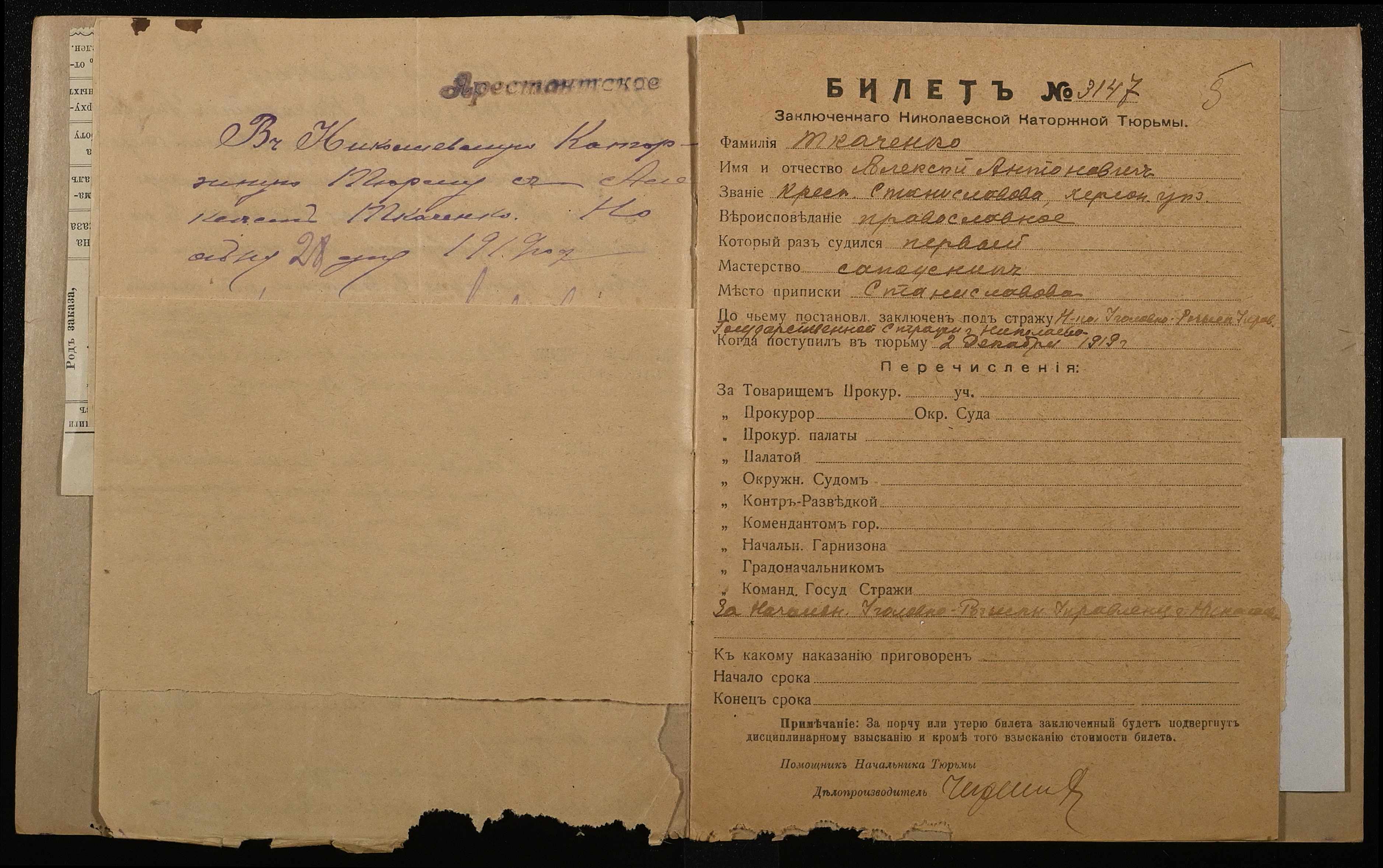• • • • Справа № 957 Ткаченко Олексій Якимович (Ткаченко Алексей Акимович)
