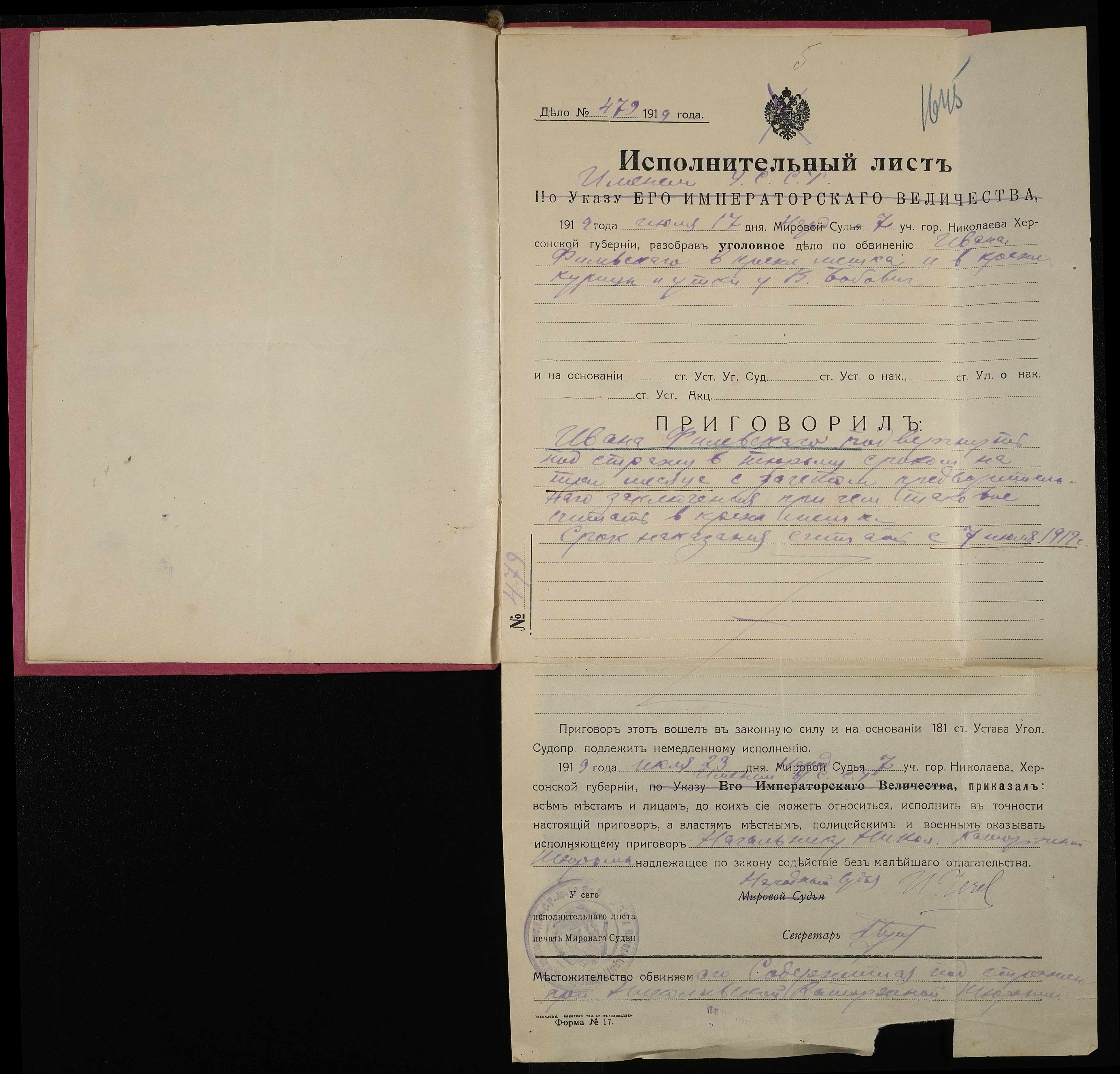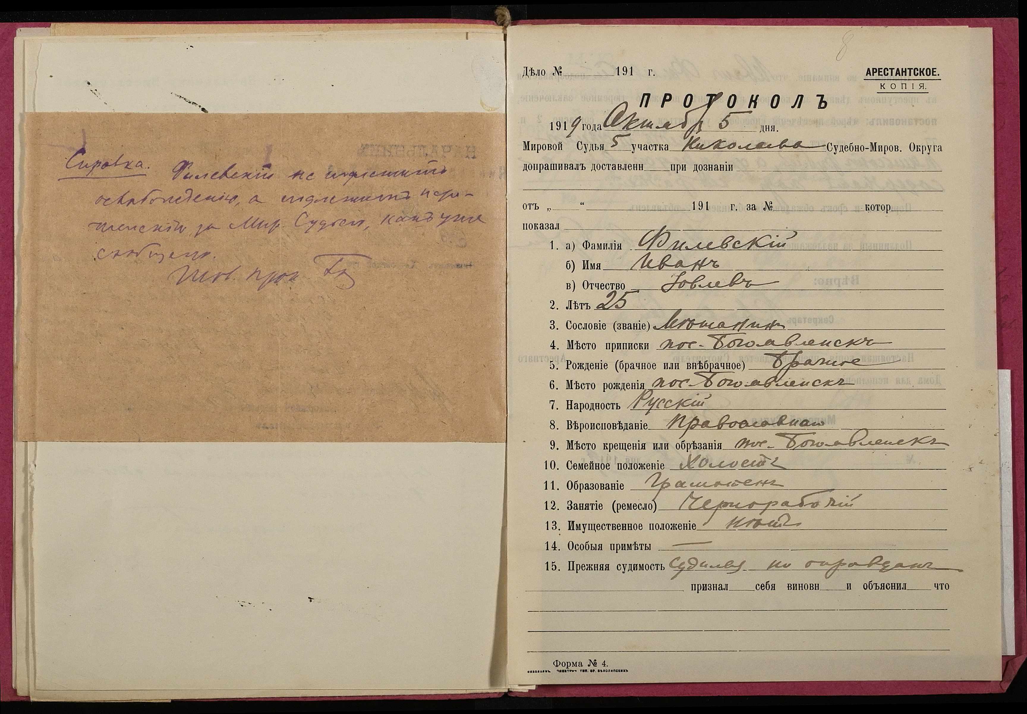 • • • • Справа № 989 Філевський Іван Іванович (Филевский Иван Иванович)