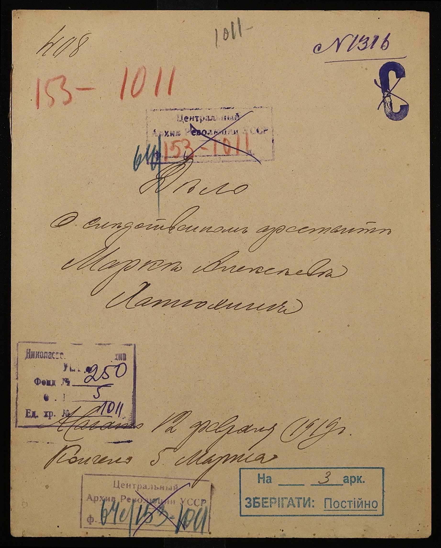 Фонд 250 / Опис 5 / Справа 1011