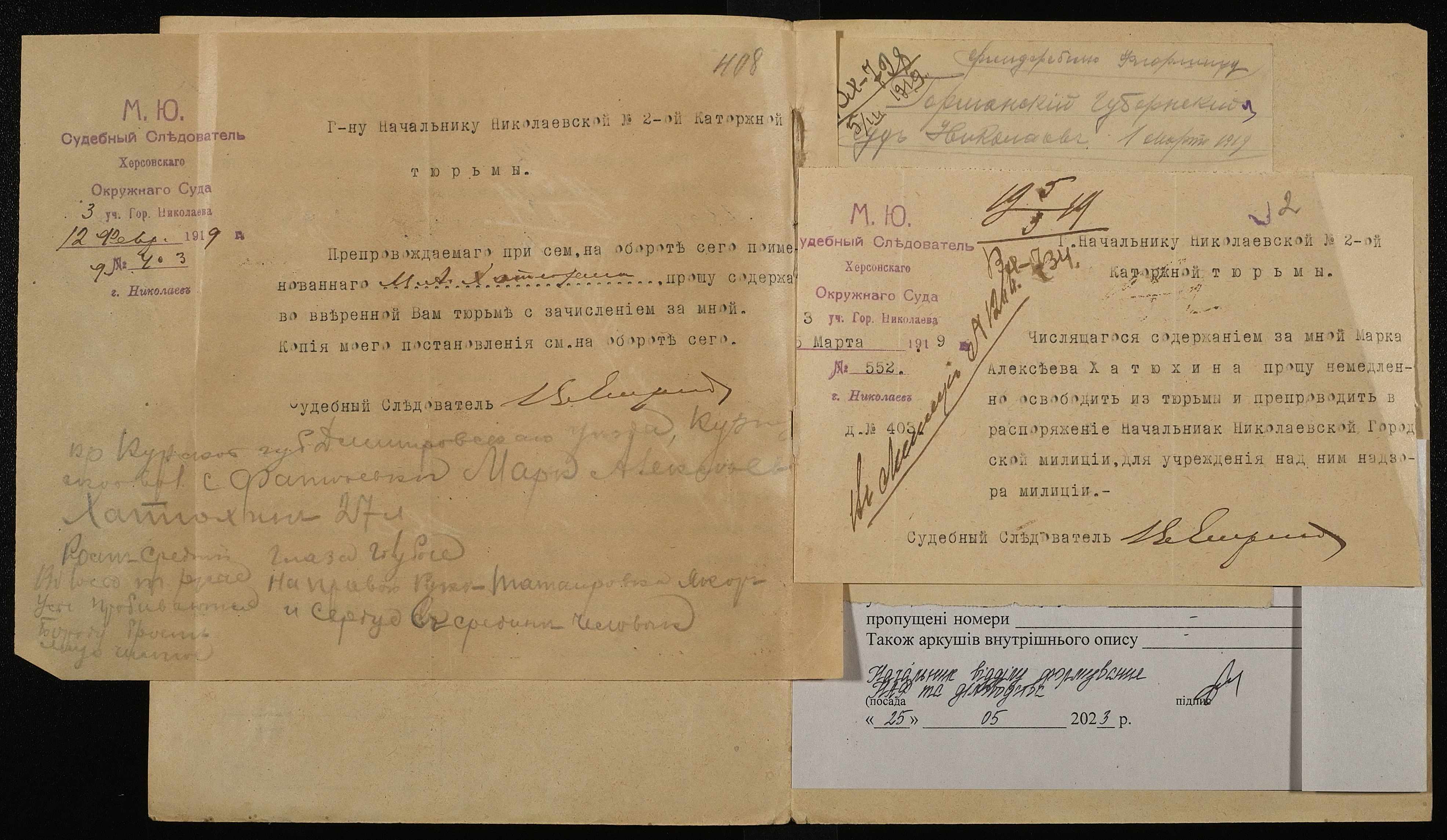 ◦ ◦ Фонд № 250 “Миколаївська каторжна тюрма № 2”