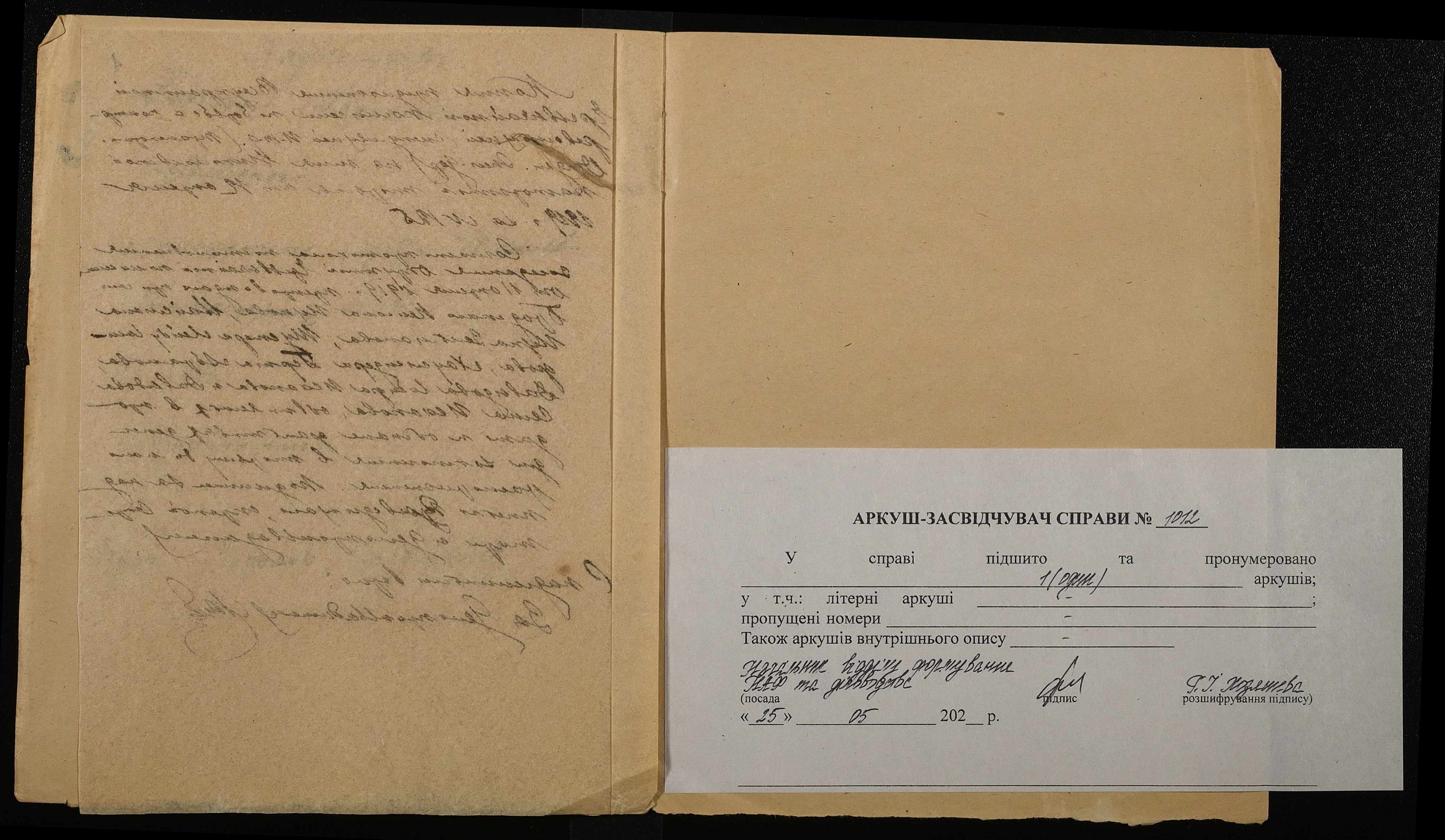 Фонд 250 / Опис 5 / Справа 1012