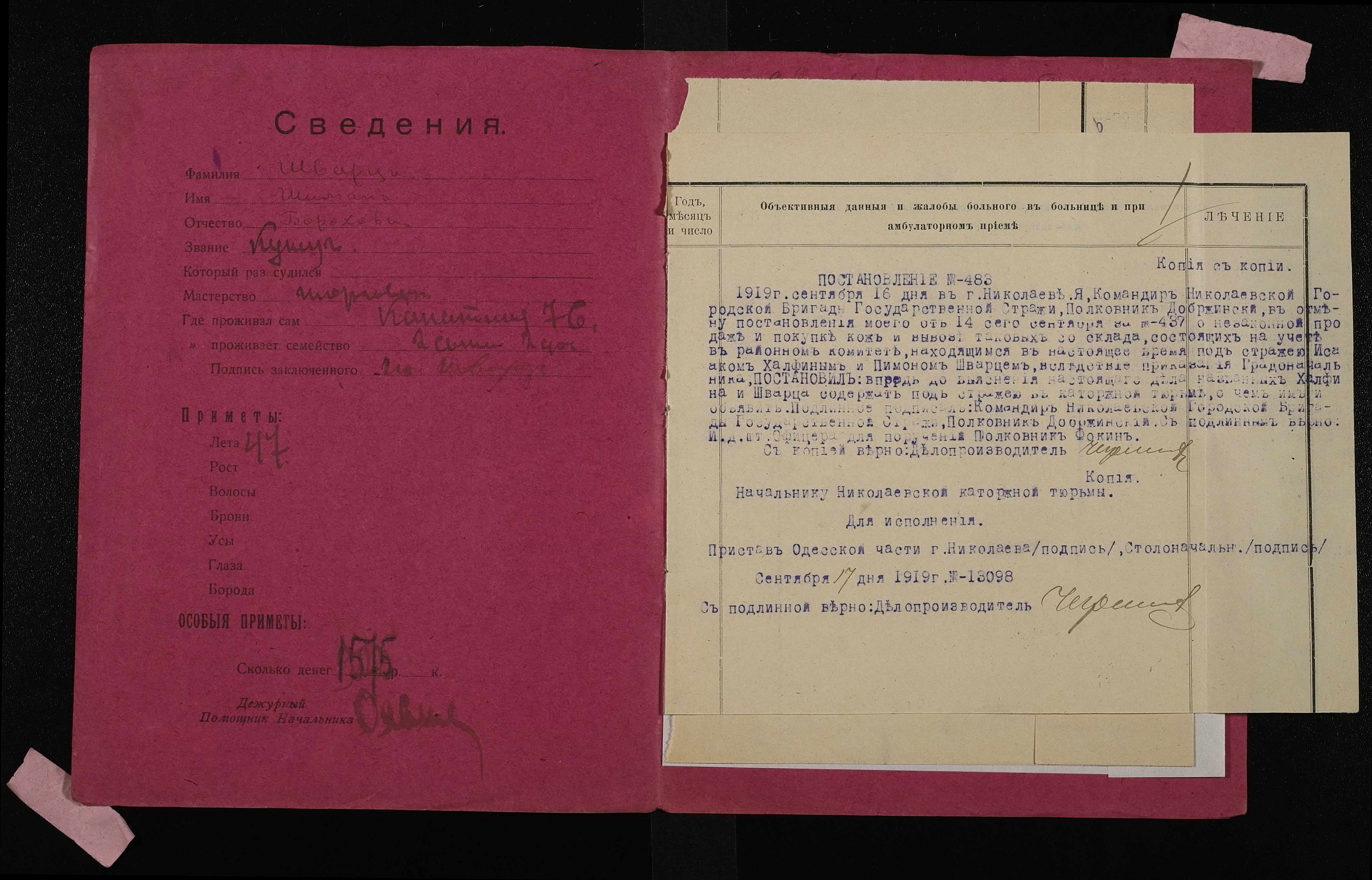 • • • • Справа № 1065 Шварц Шимон Борухович (Шварц Шимон Борухович)