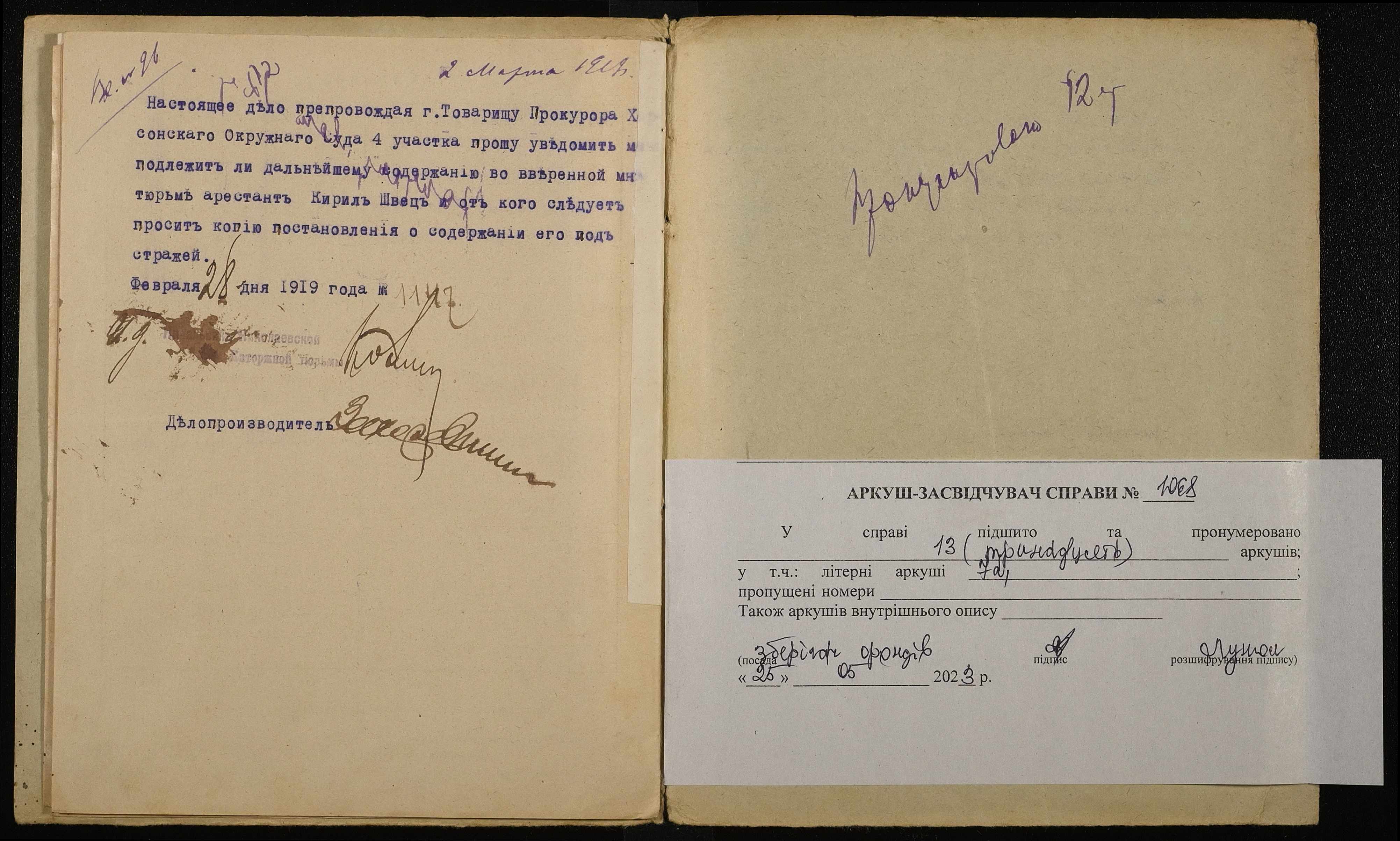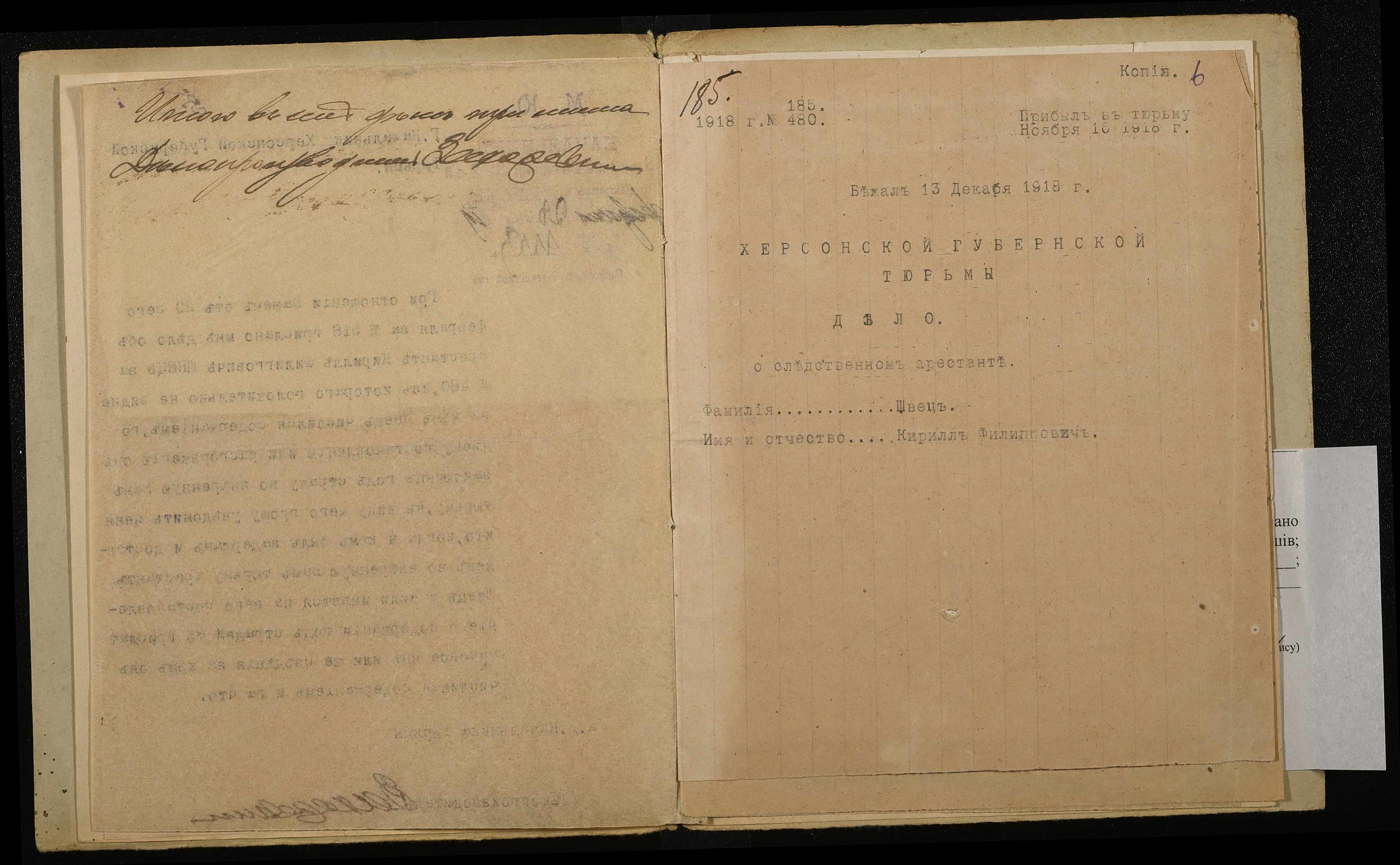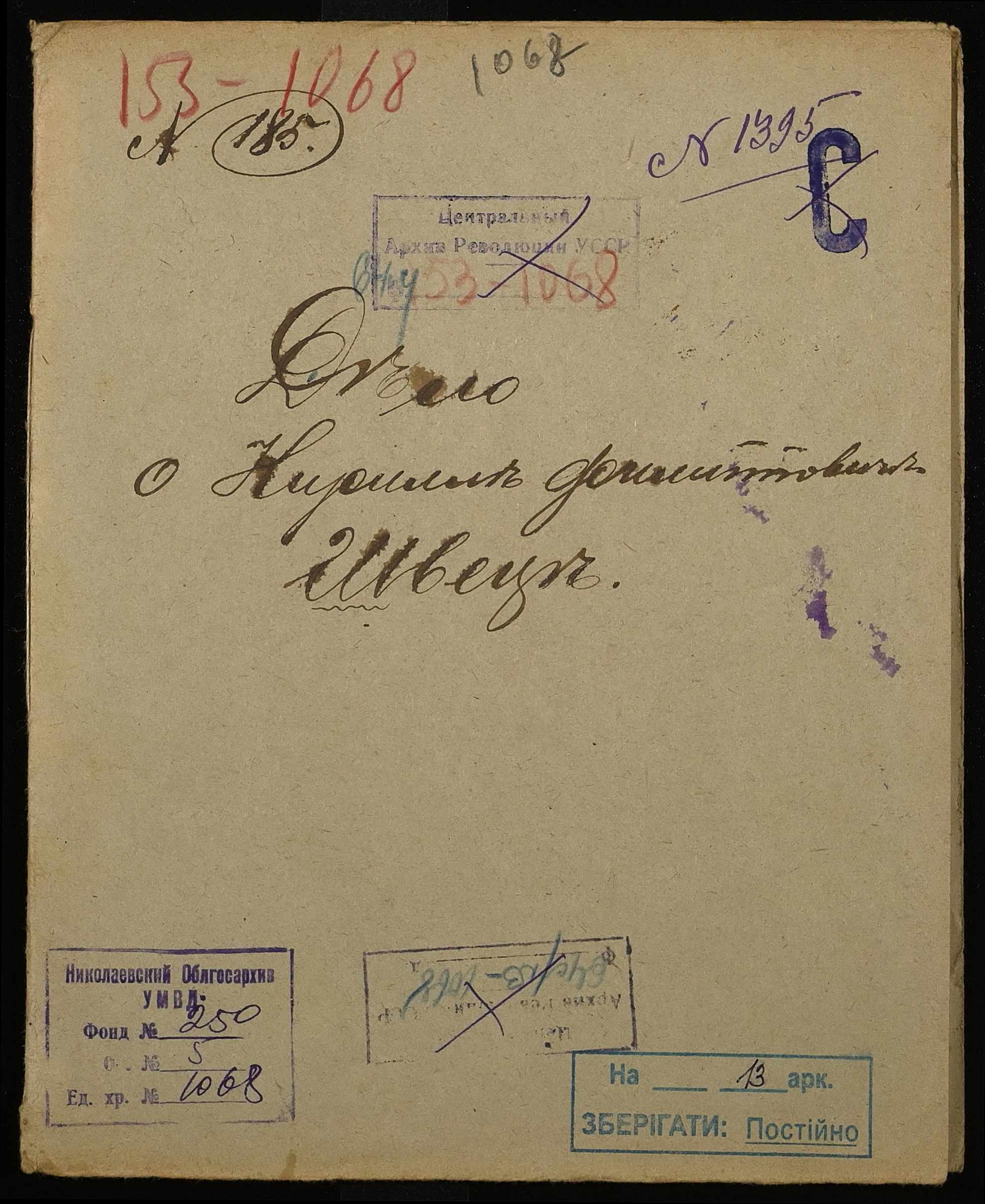 • • • • Справа № 1068 Швець Кирило Пилипович (Швец Кирилл Филиппович)