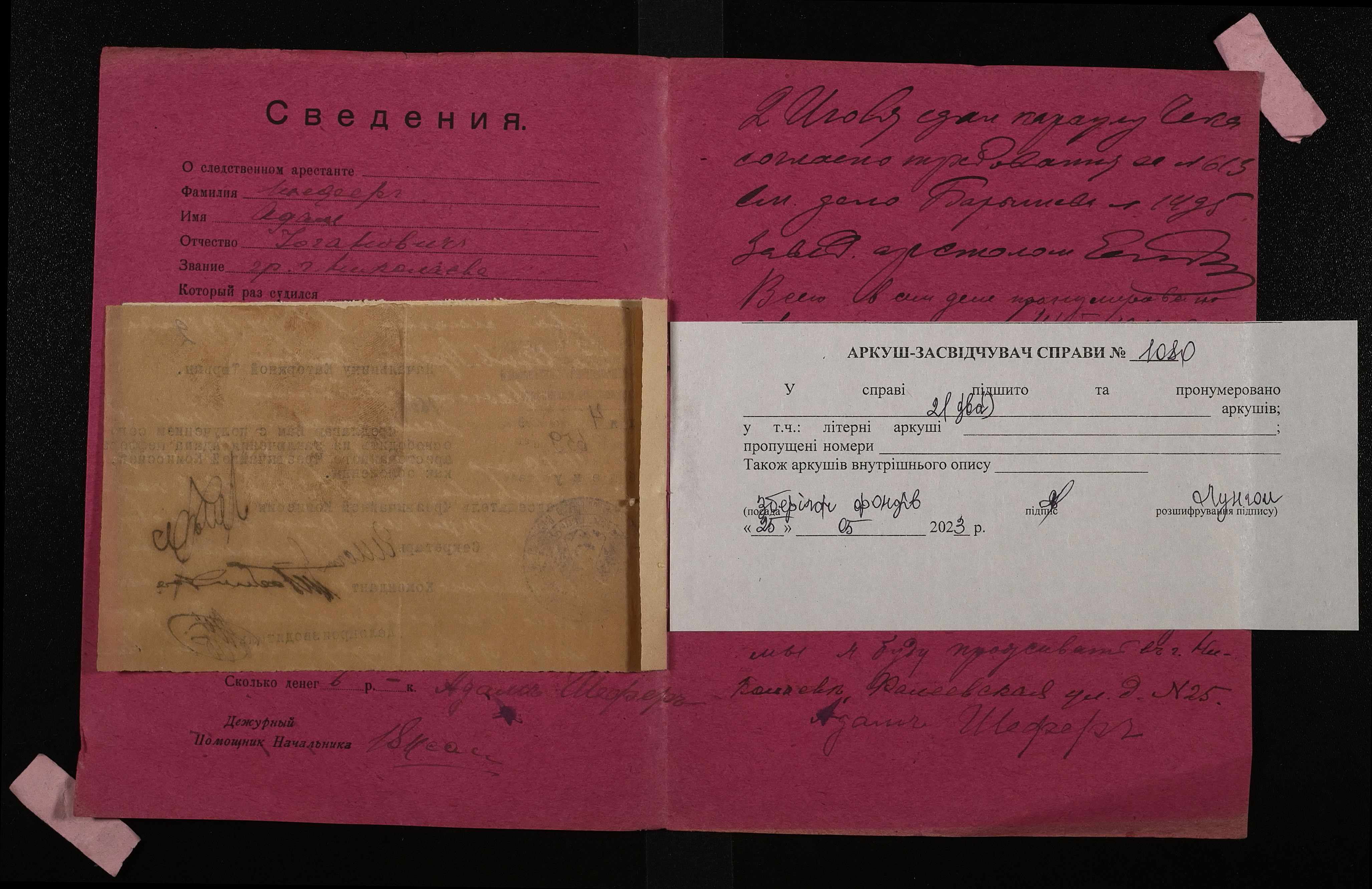 • • • • Справа № 1080 Шеферер Адам Йоганович (Шеферер Адам Иоганович)
