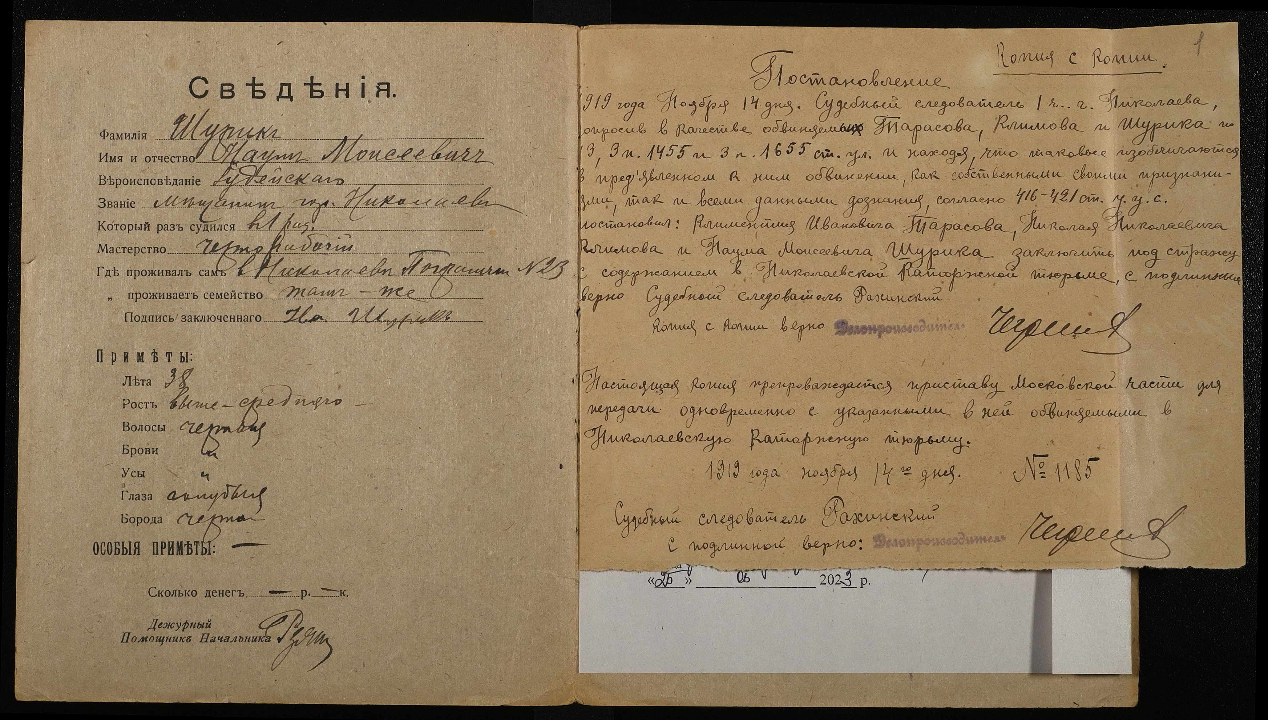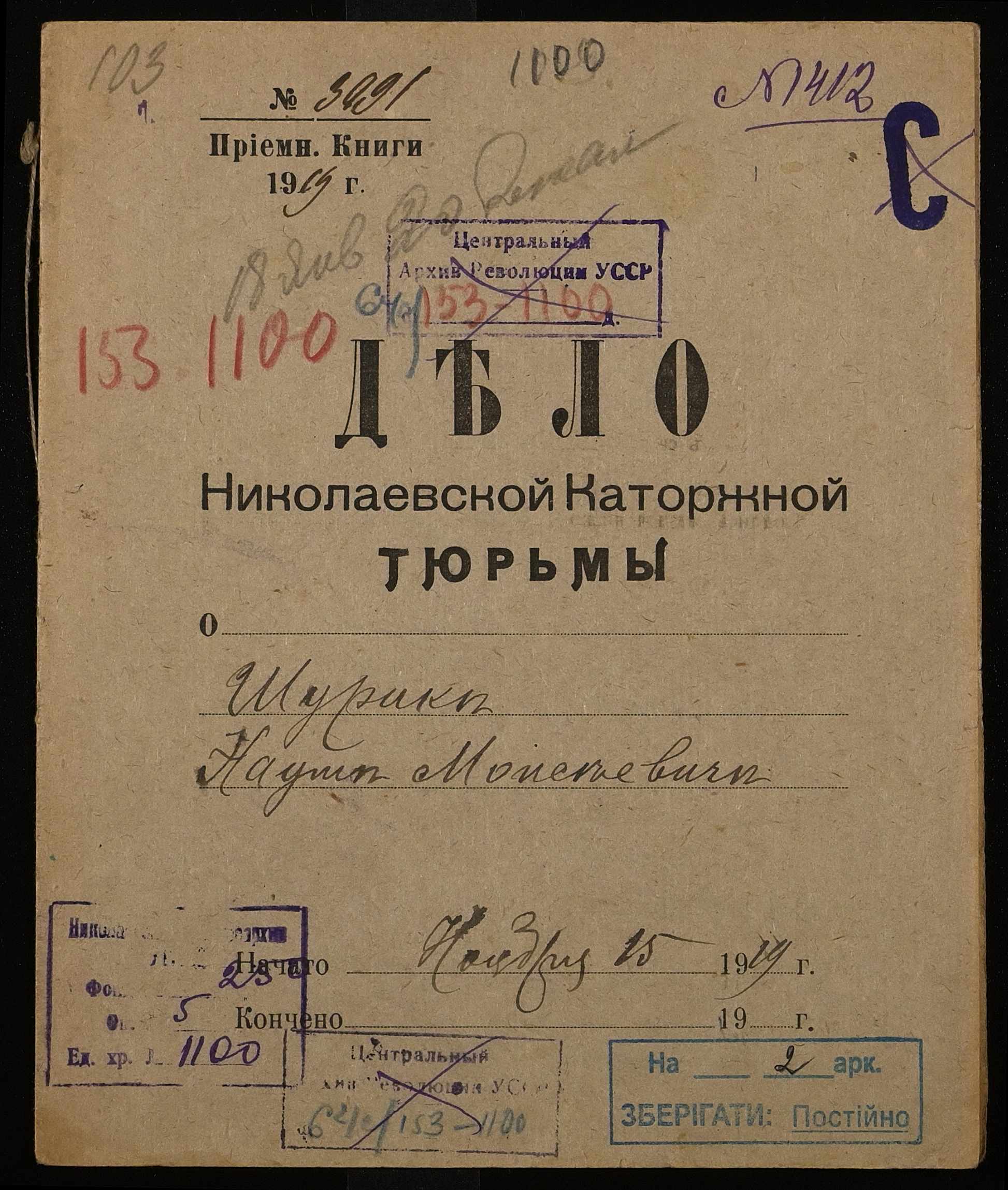 • • • • Справа № 1100 Шурик Наум Мойсейович (Шурик Наум Моисеевич)