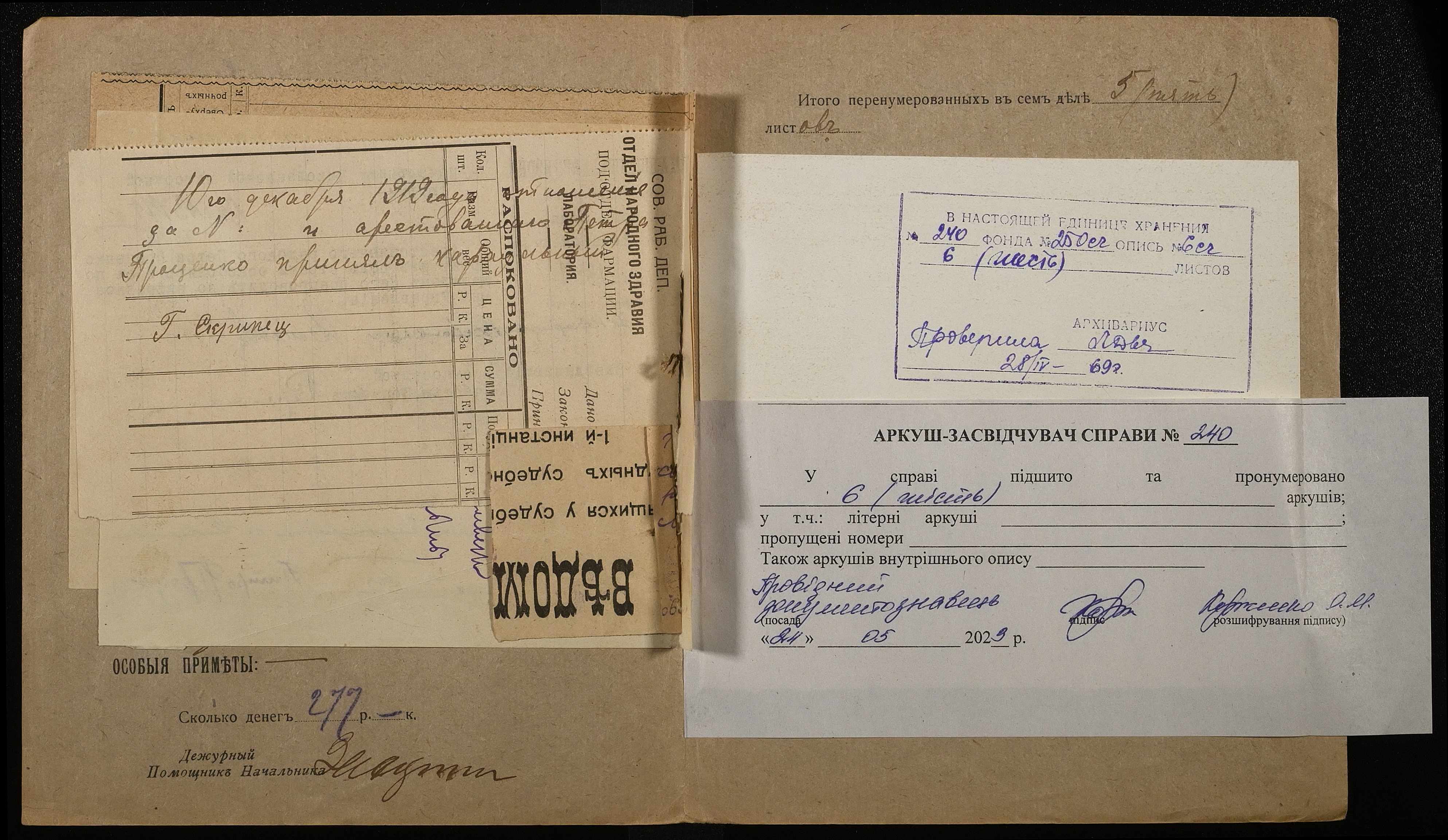 • • • • Справа № 240 Проценко Петро Федорович (Проценко Петр Федорович)