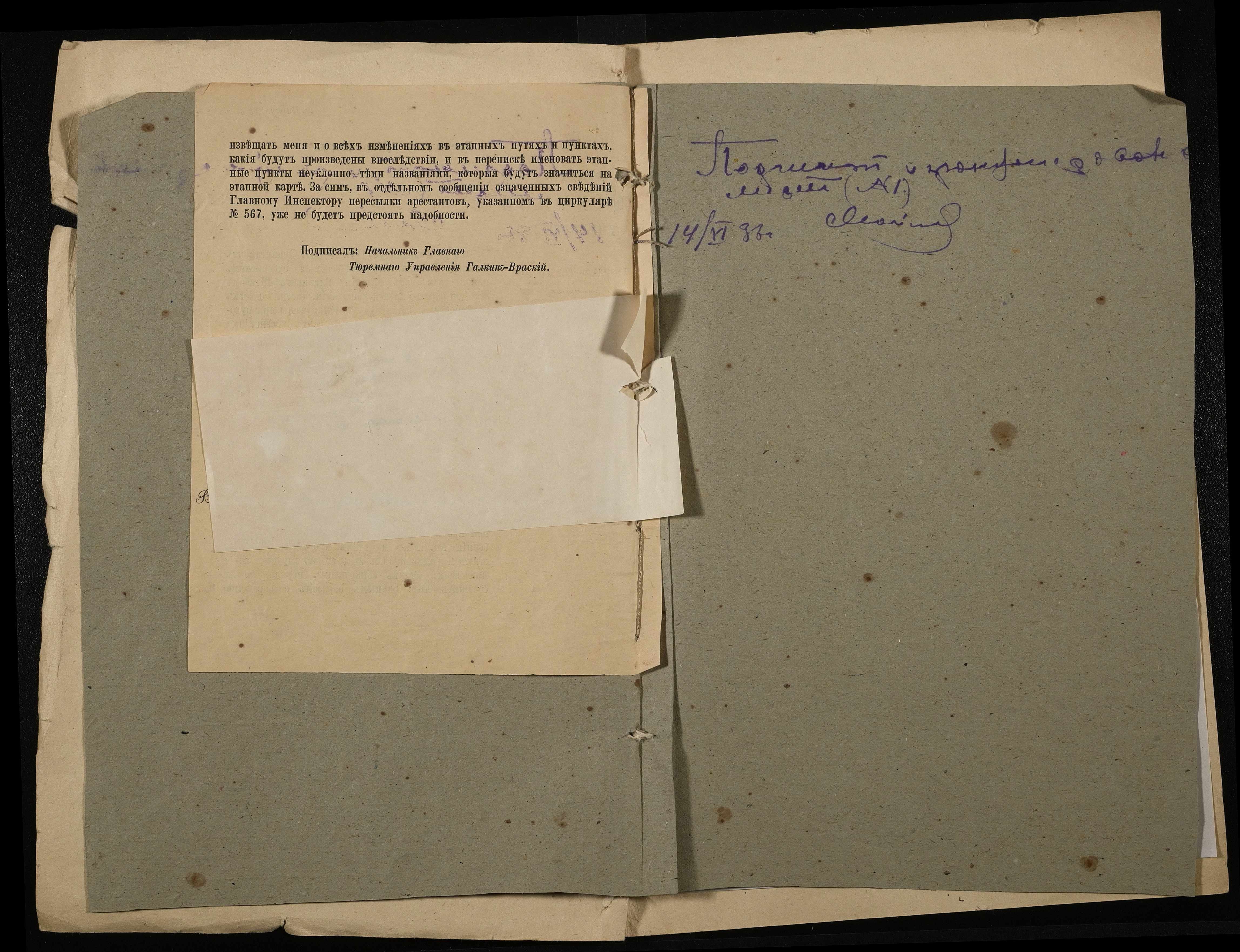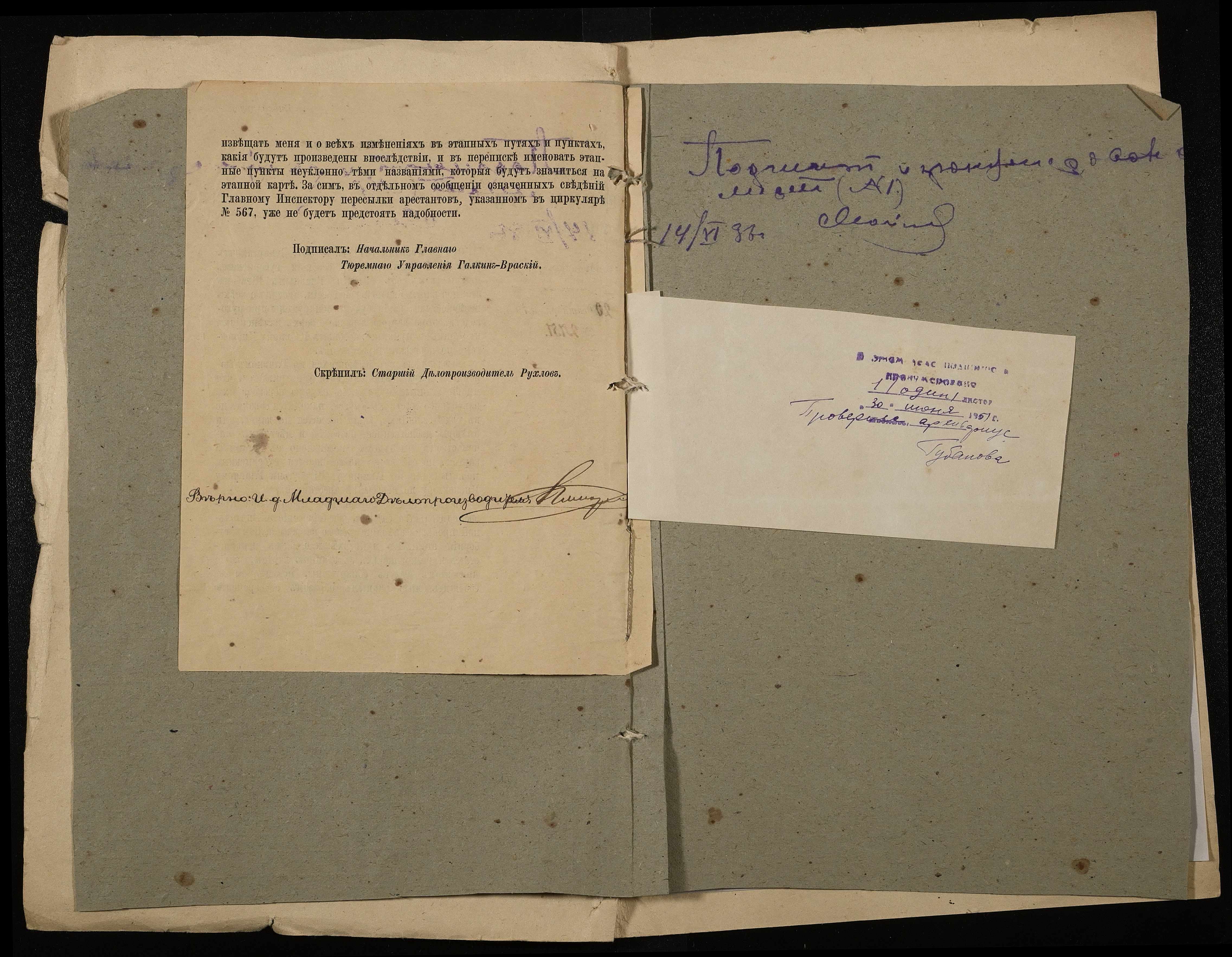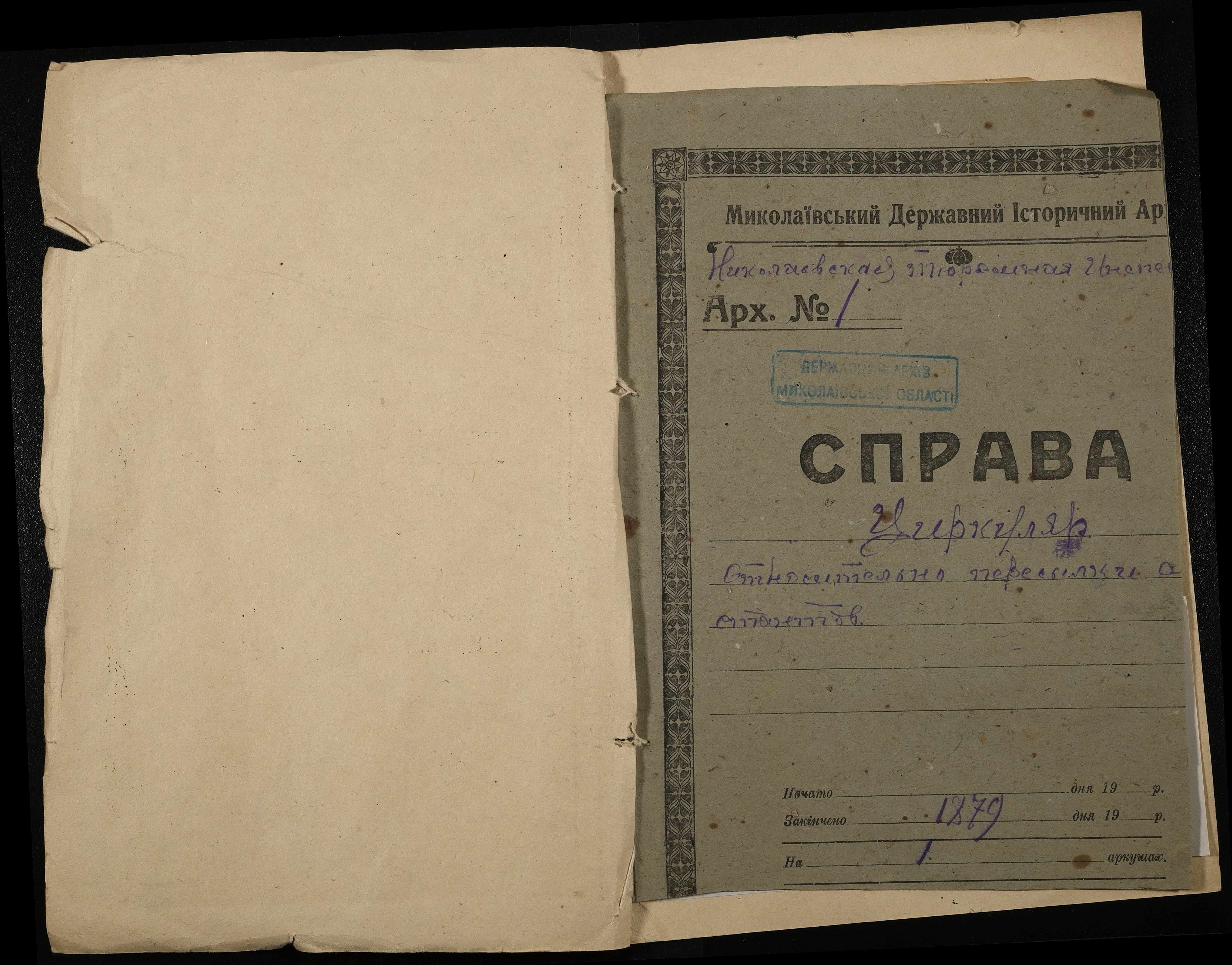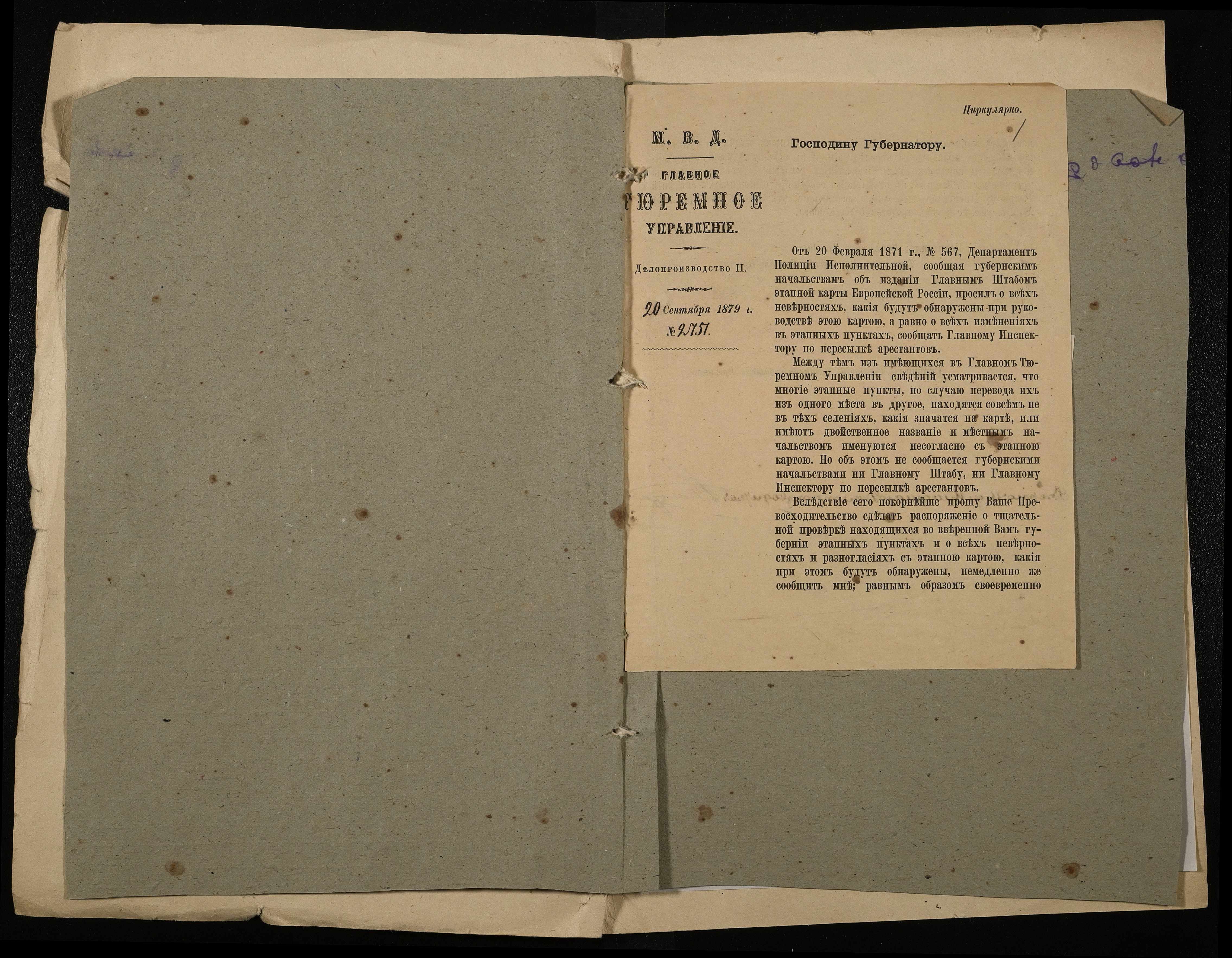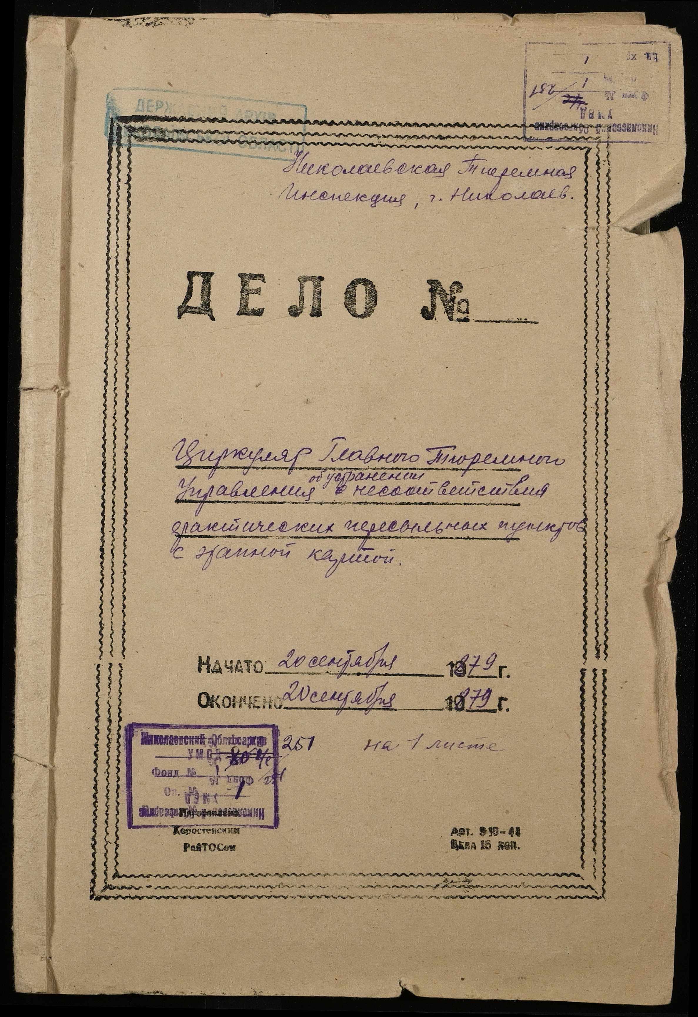 • • • • Справа № 1 “Обіжник Головного тюремного управління МВС про усунення розбіжностей між етапною картою і фактично наявними пересильними пунктами й етапними шляхами від 20 вересня 1879 року”