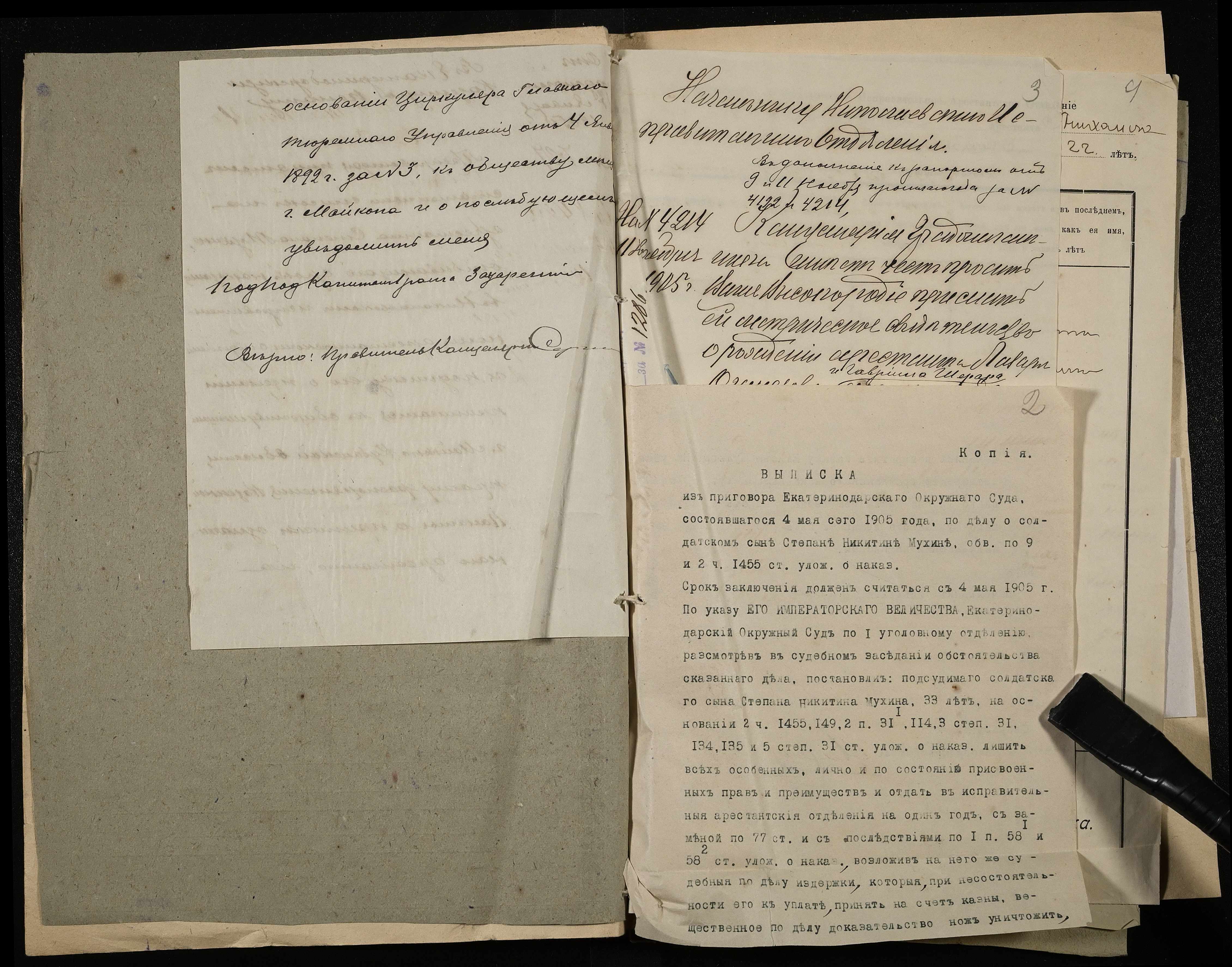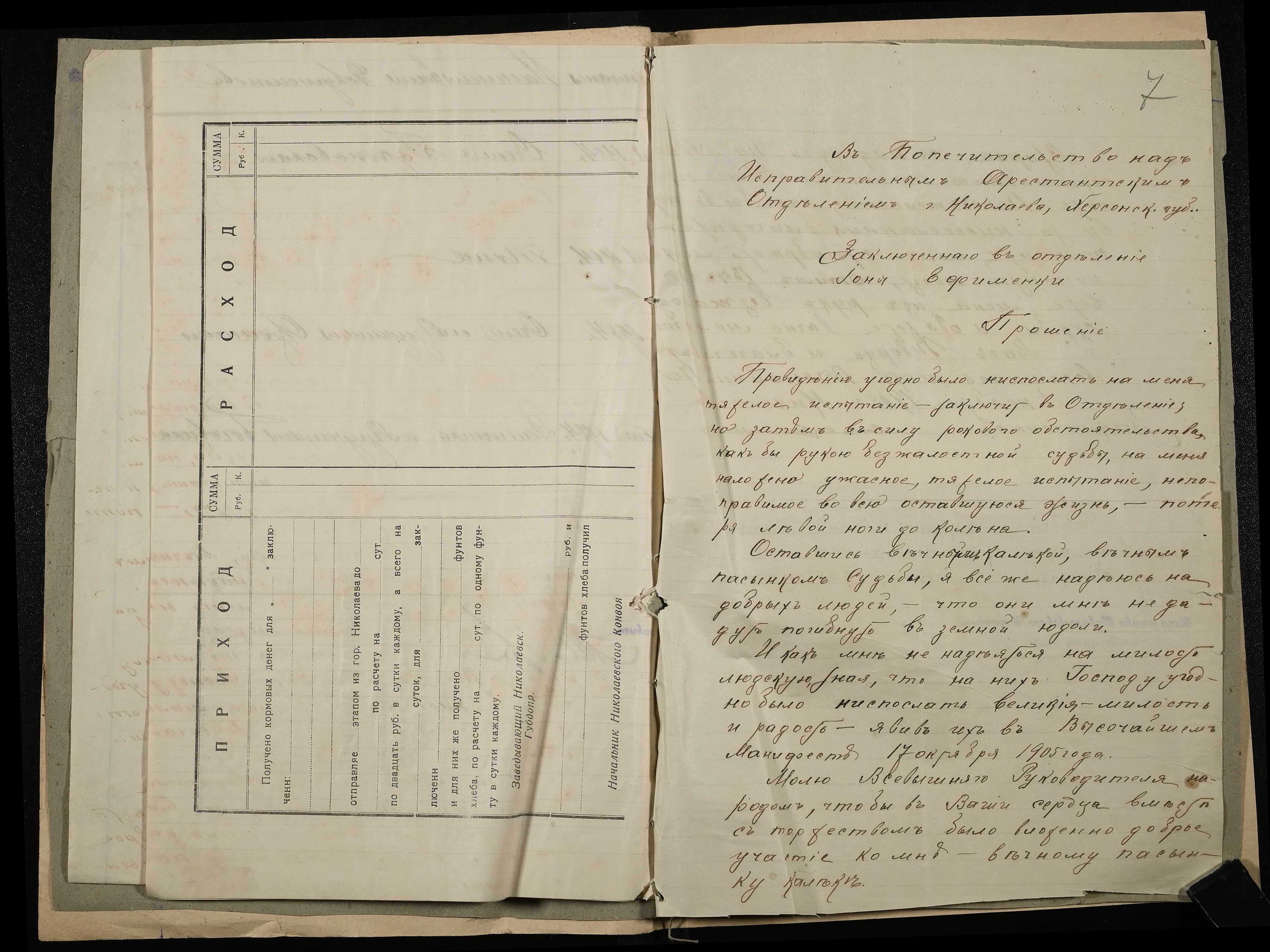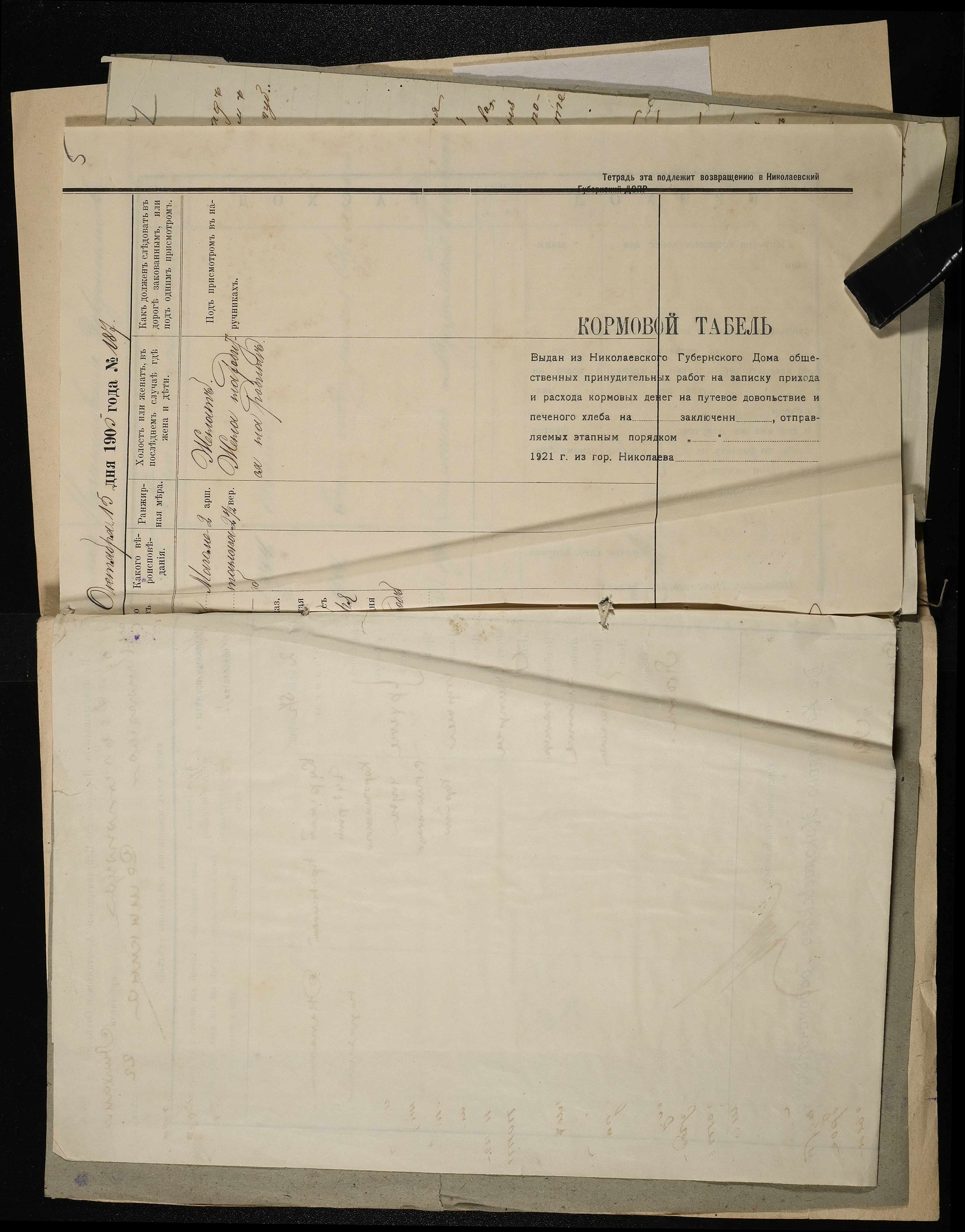• • • • Справа № 5 Витяг із вироку арештанта Мухіна С.М., статейний список на арештанта Семикіна М.М., прохання в’язня Єфименка І., кормові табелі ув’язнених