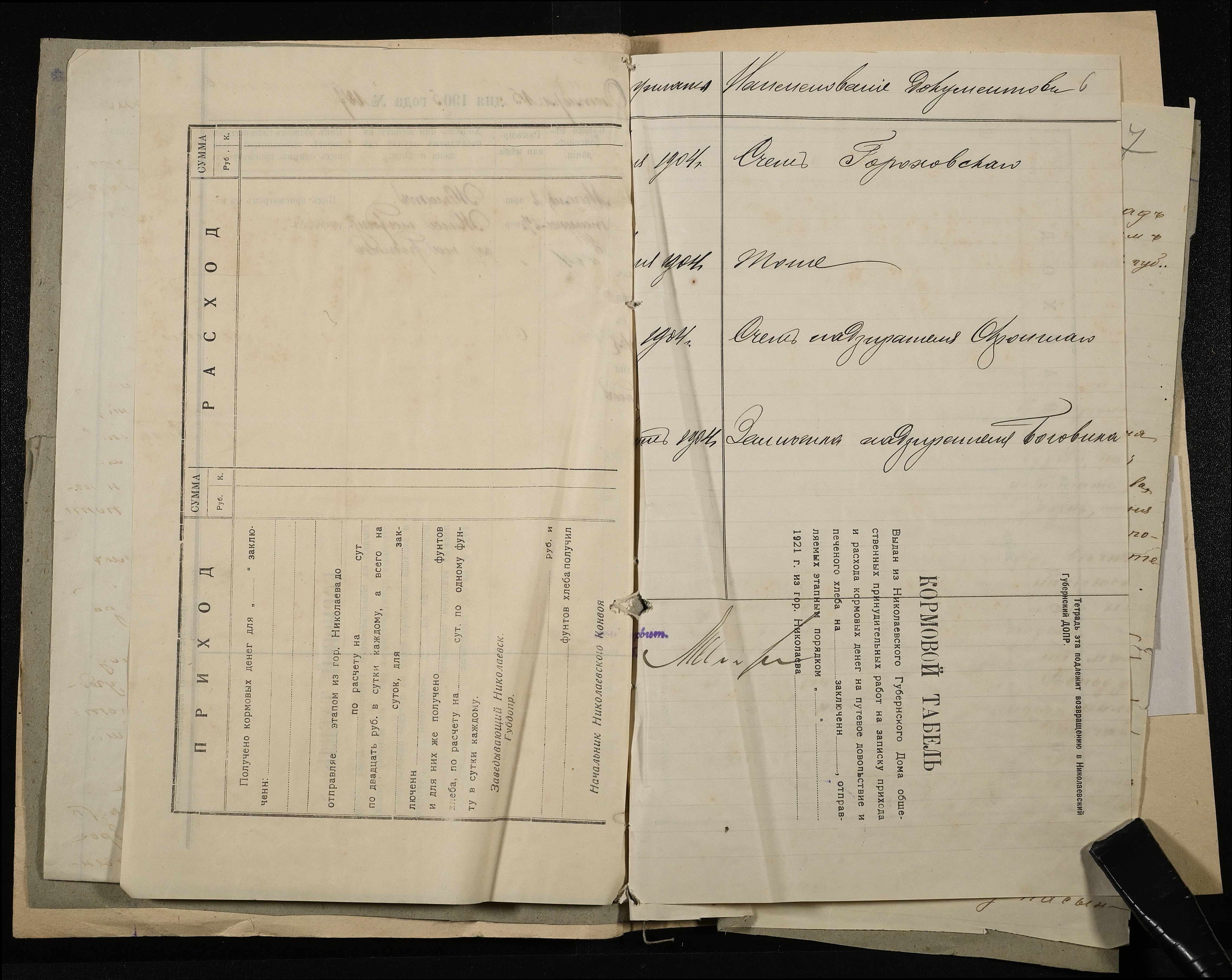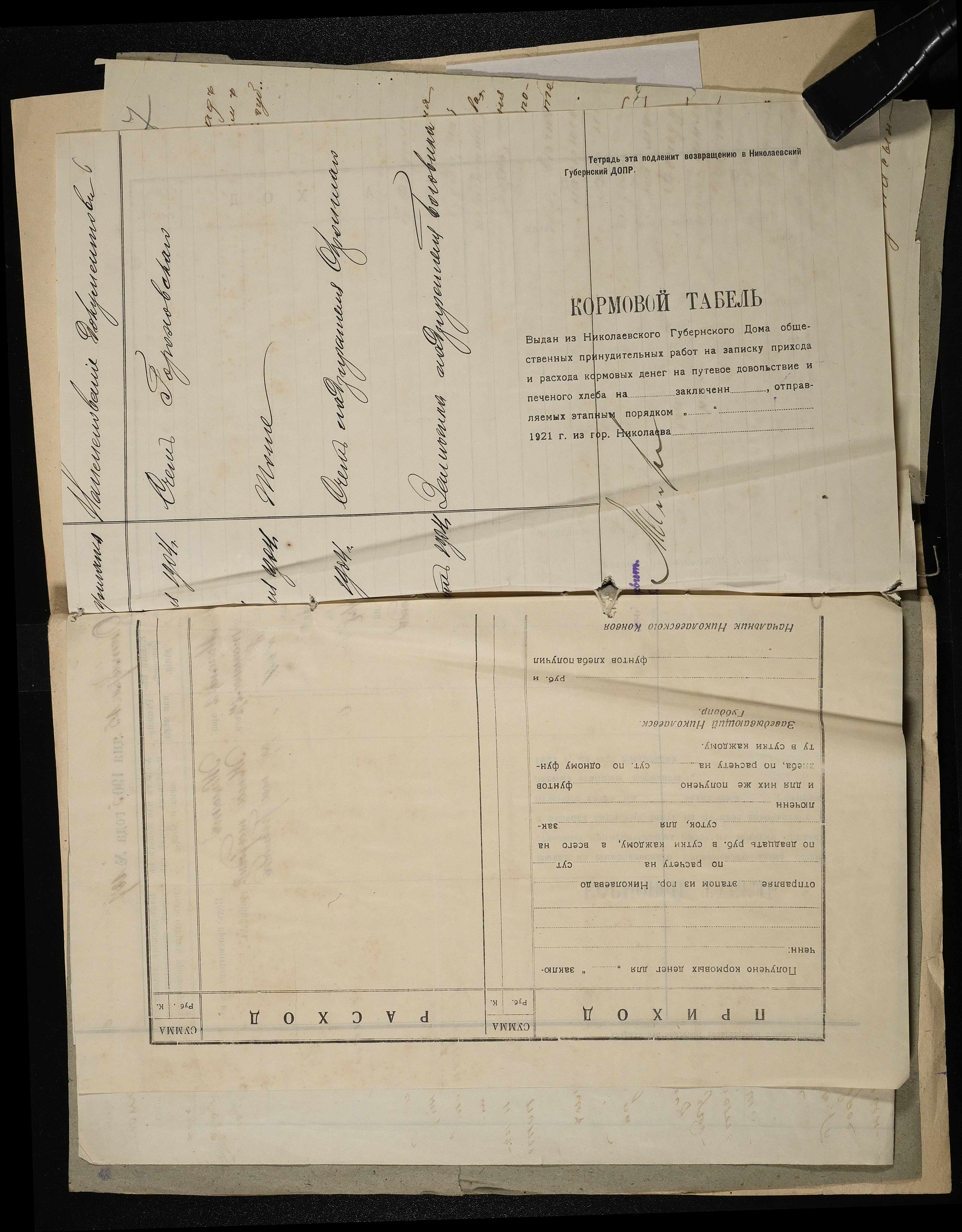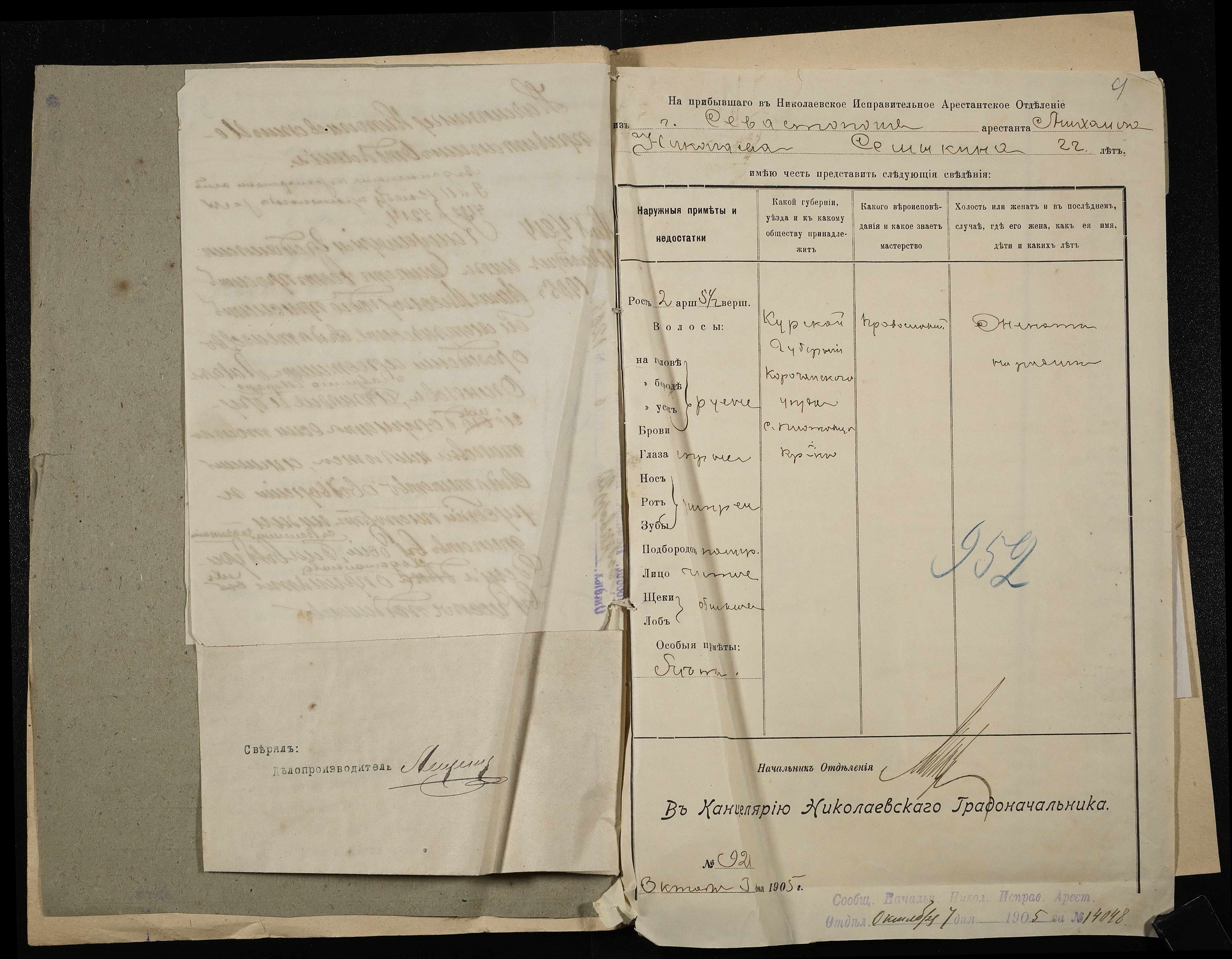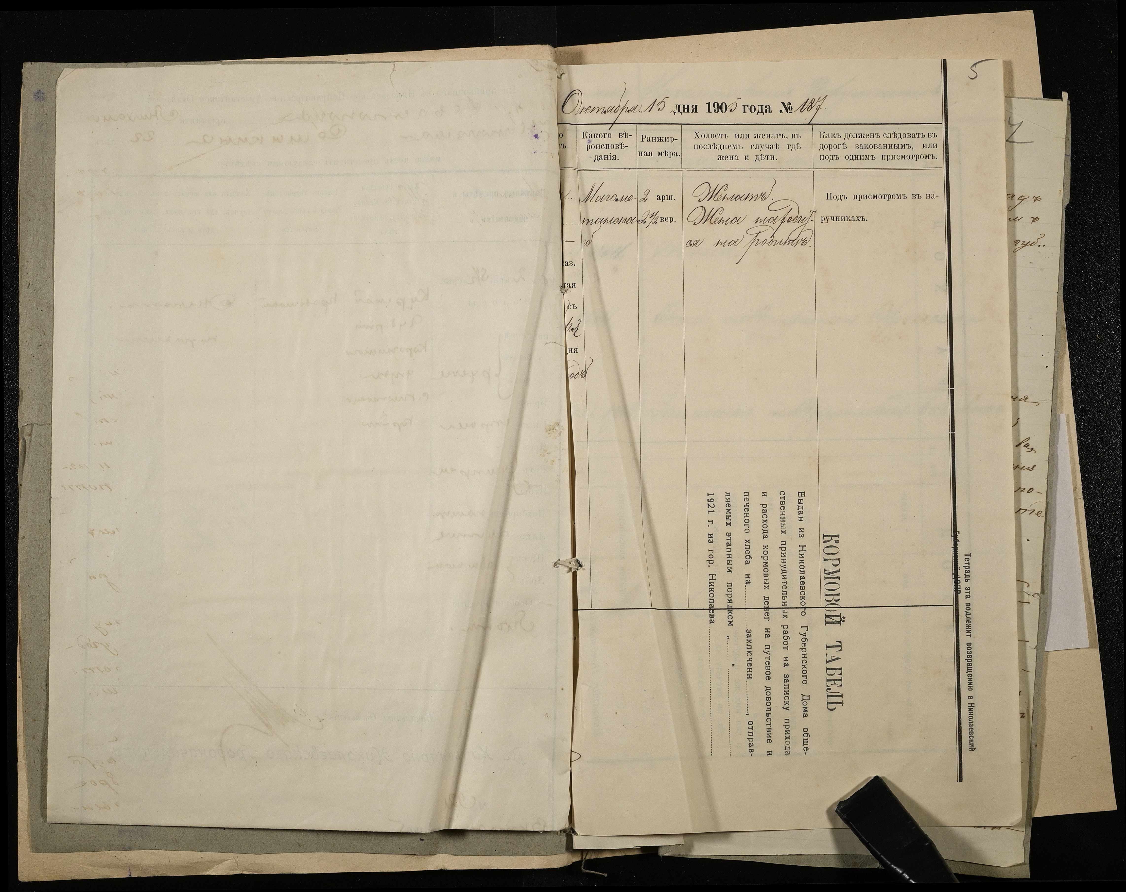 • • • • Справа № 5 Витяг із вироку арештанта Мухіна С.М., статейний список на арештанта Семикіна М.М., прохання в’язня Єфименка І., кормові табелі ув’язнених