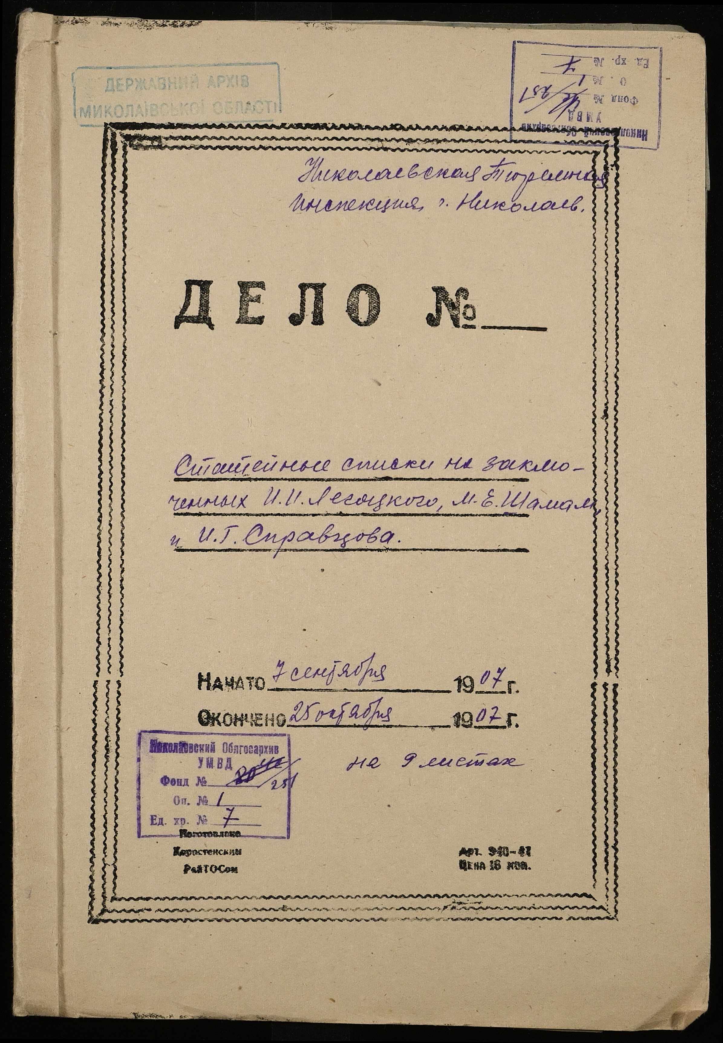 ◦ ◦ Фонд № 251 “Миколаївська тюремна інспекція”
