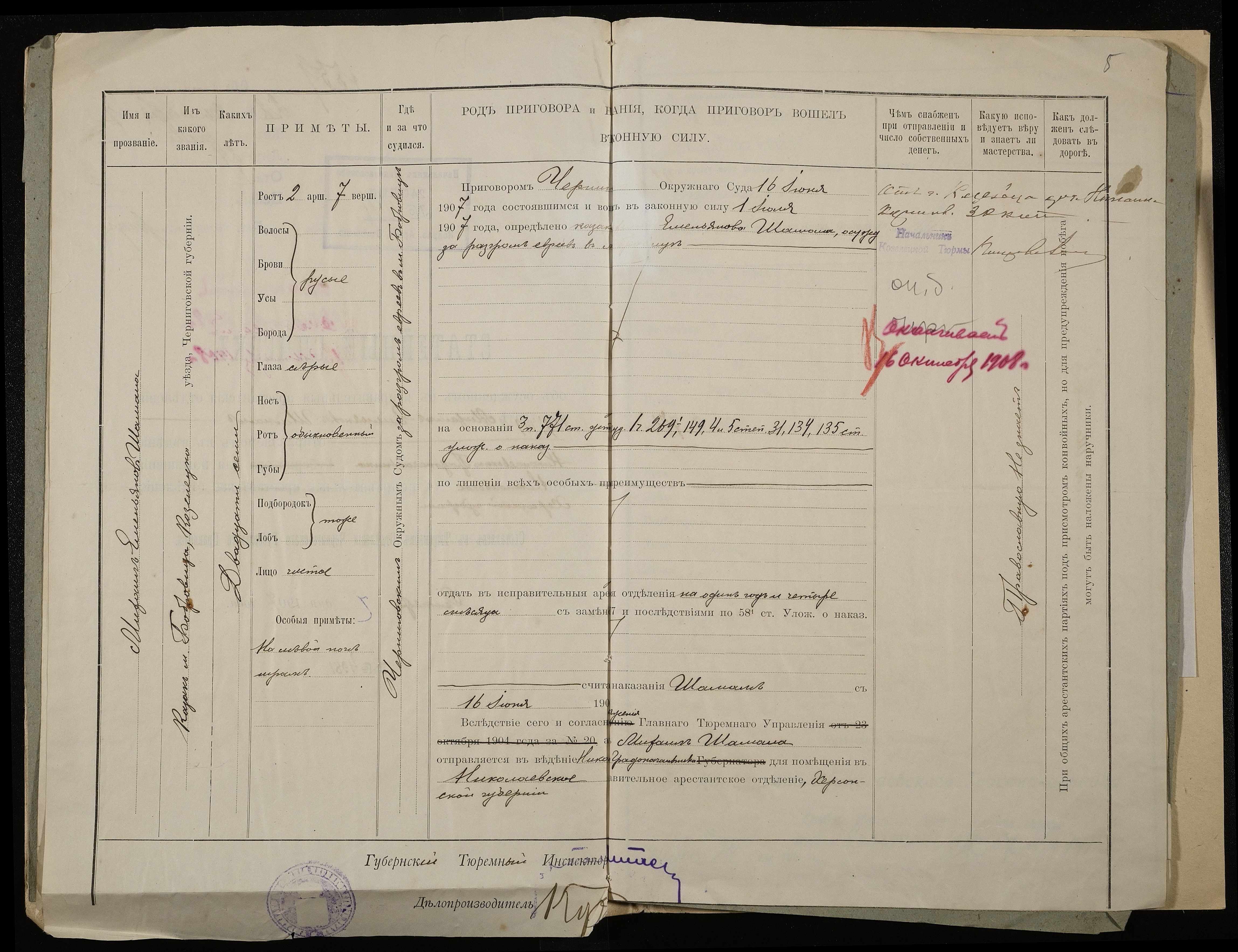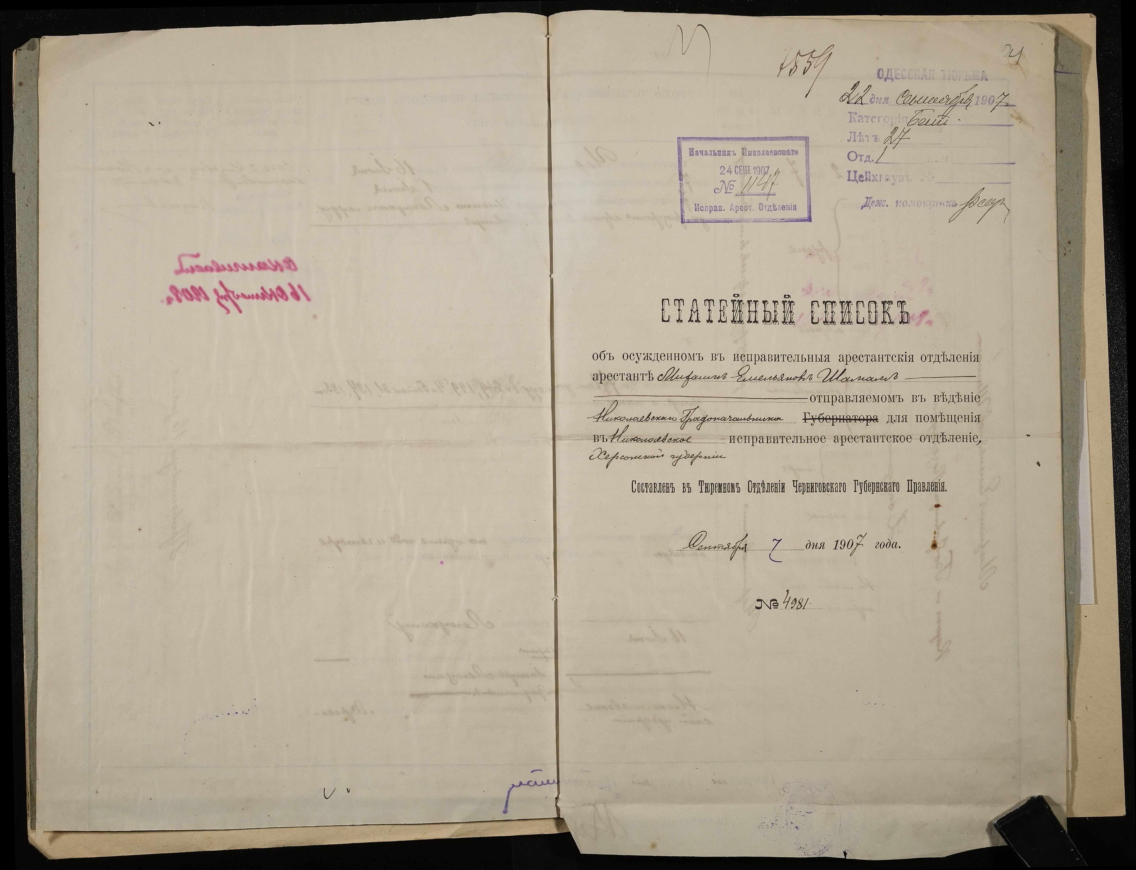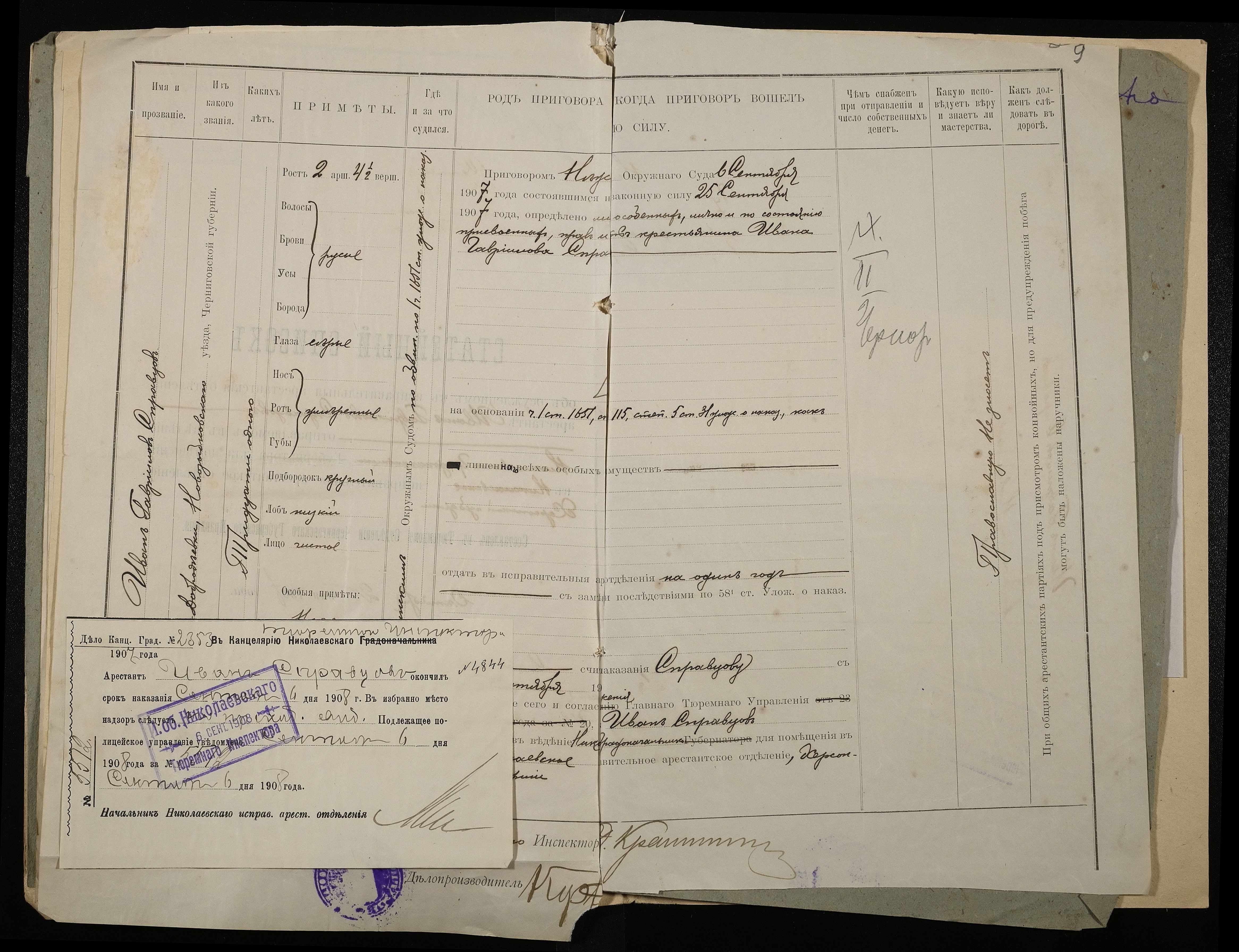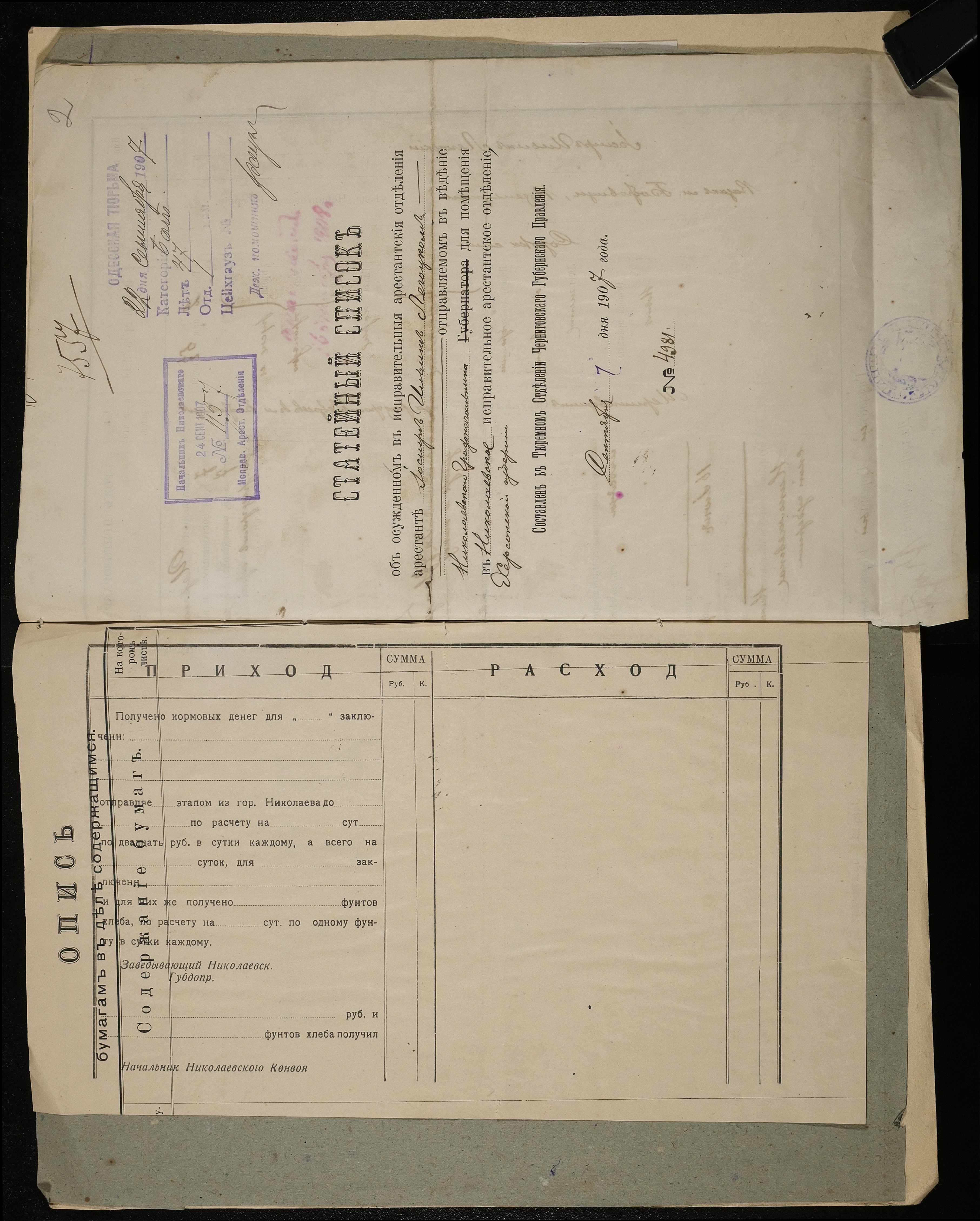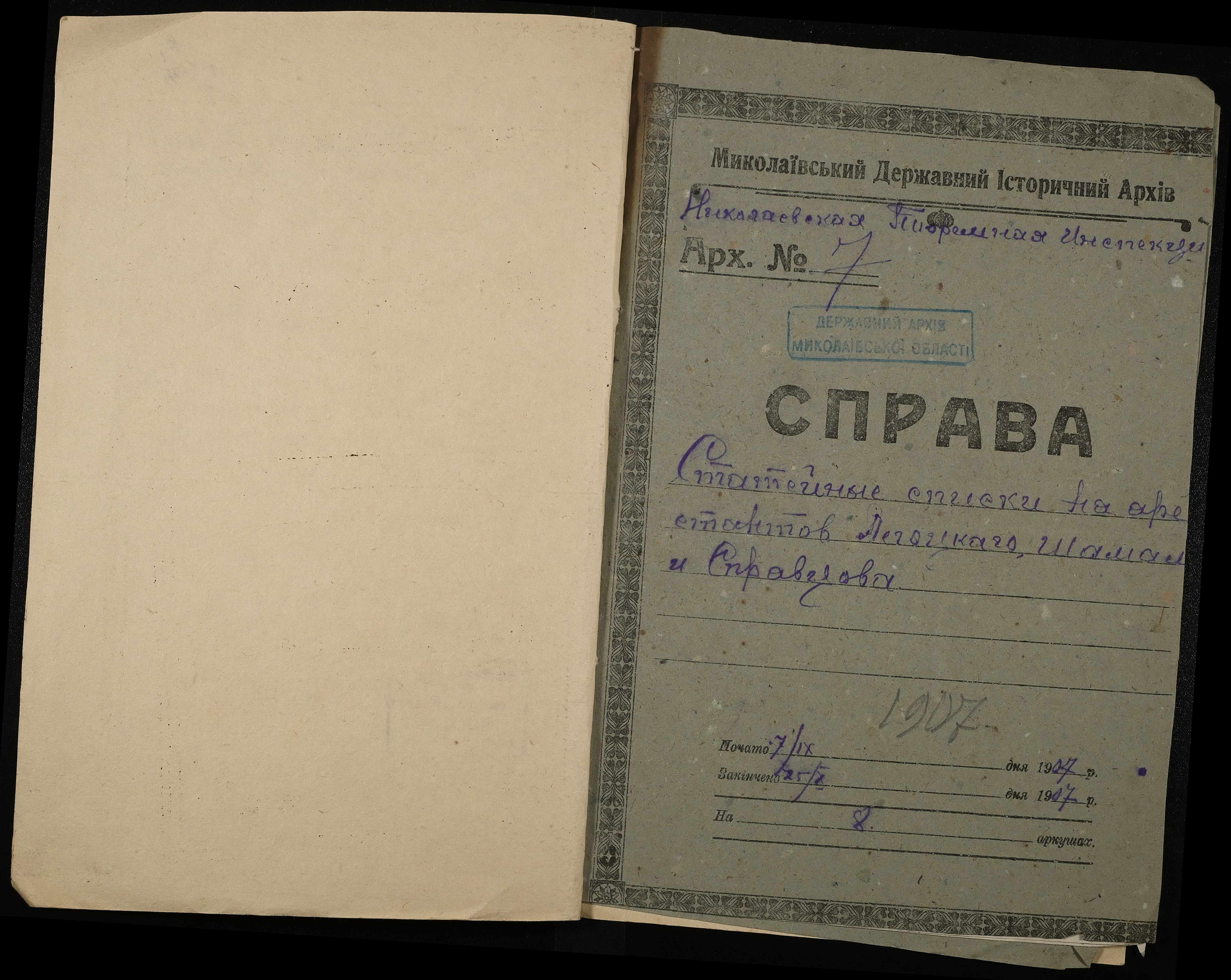 • • • • Справа № 7 Листування з міською поліцією про закінчення строків ув’язнення і звільнення Чайки К.В. і Породька П.О.