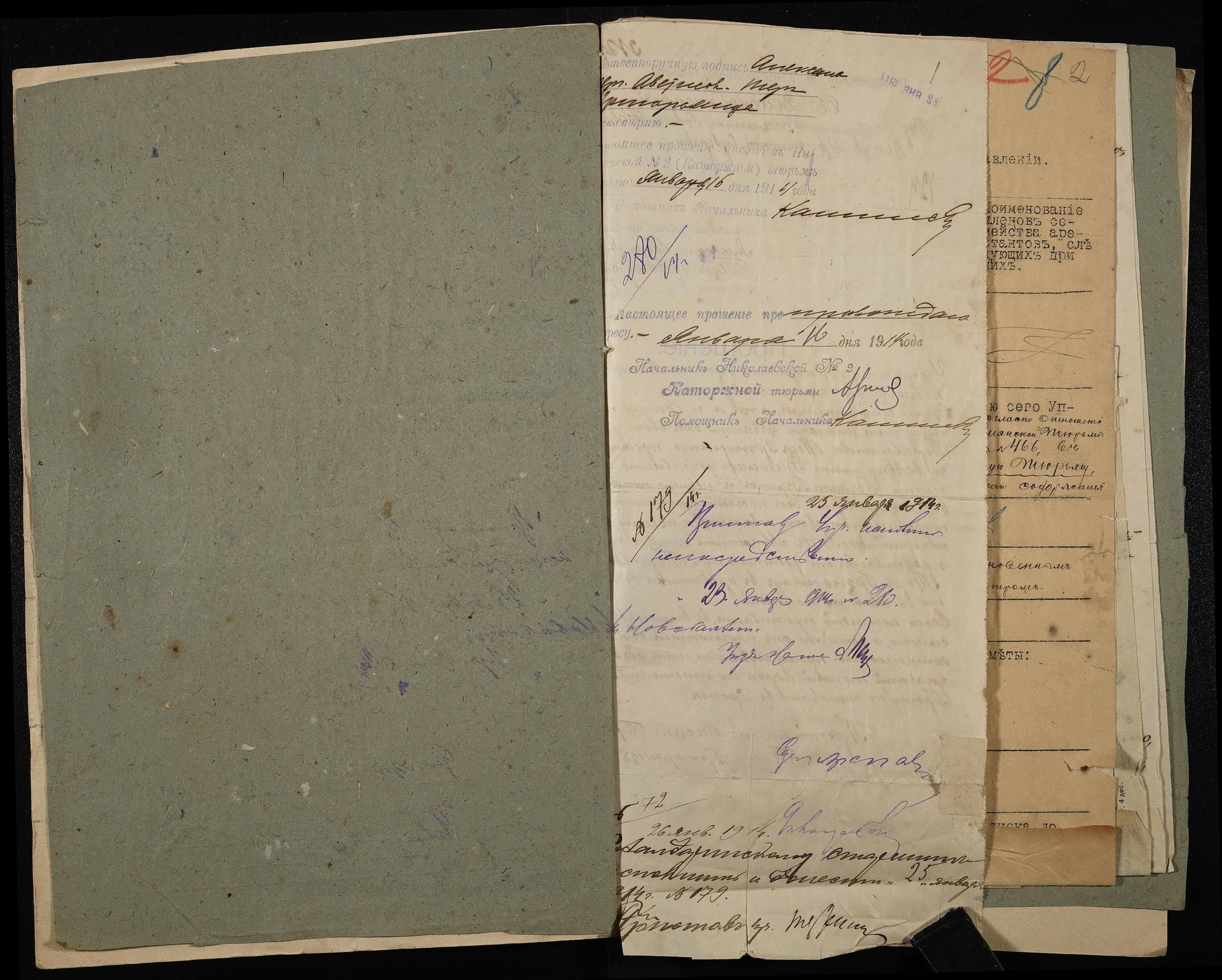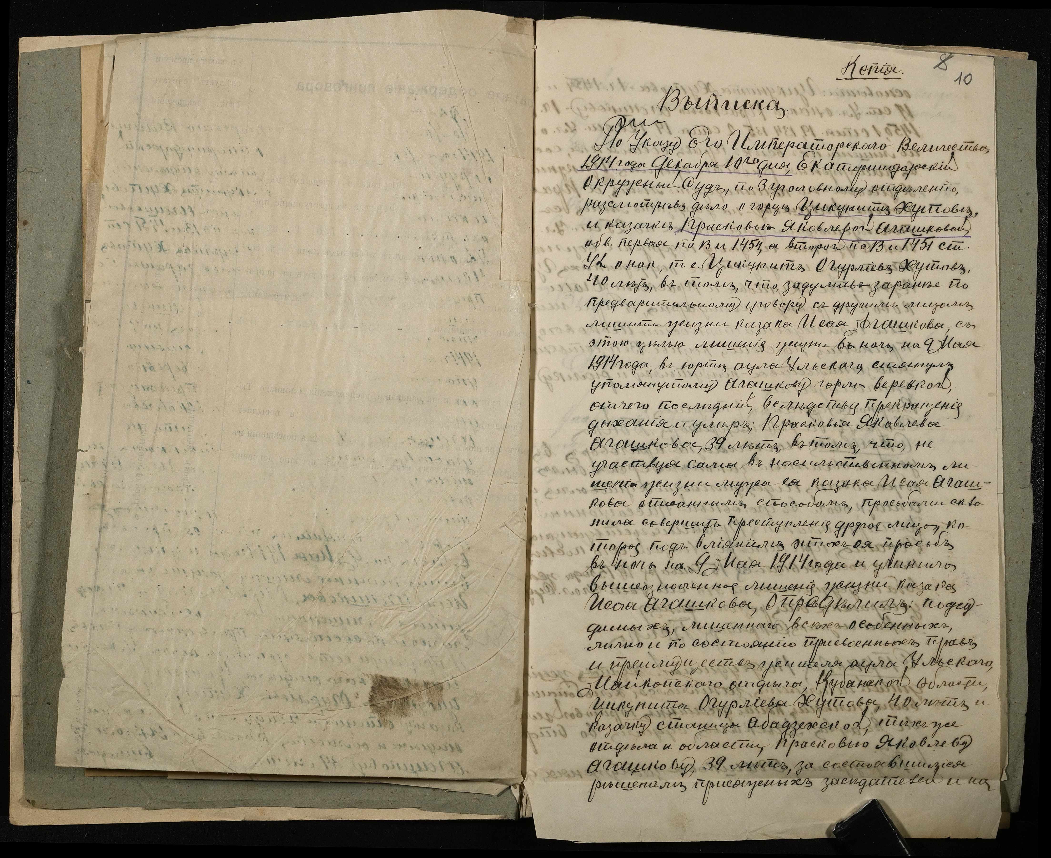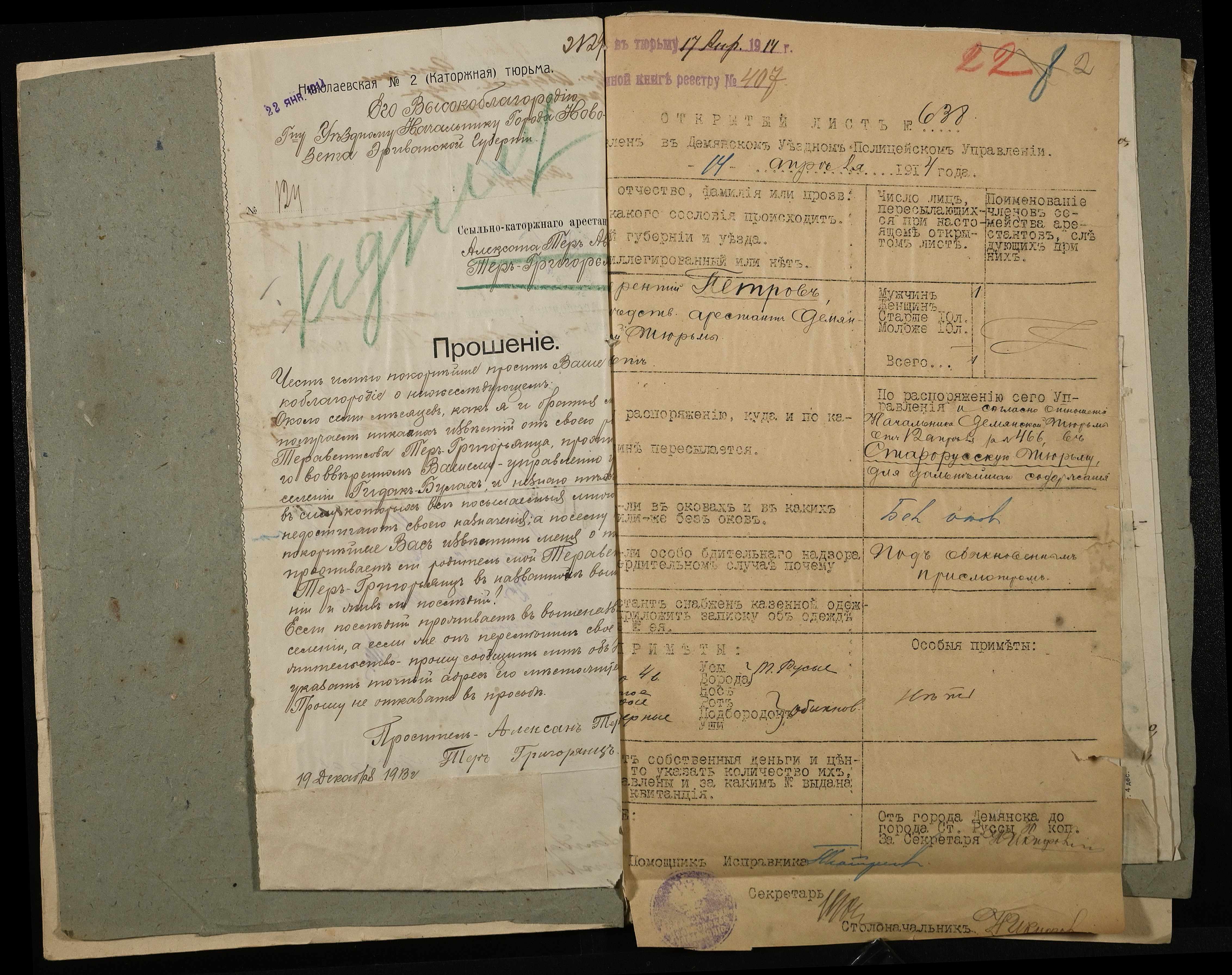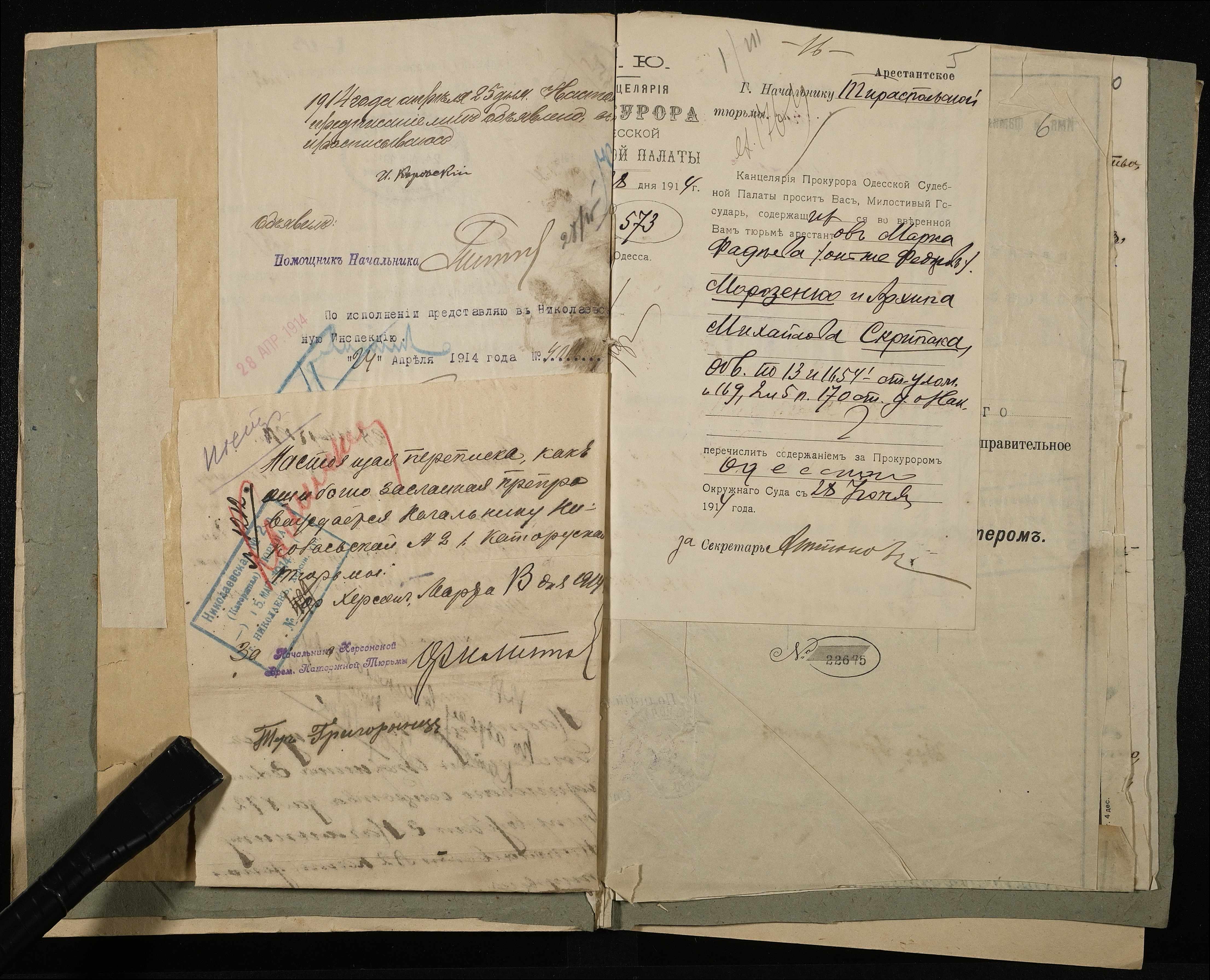 • • • • Справа № 10 Листування з начальником Миколаївського виправного арештантського відділення про переведення арештанта Коровського І.М. до Полтавського виправного відділення та його статейний список; копія витягу із вироку у справі Хутова Ц. і Агашкової В.Я.; відкритий лист на арештанта Петрова Т.