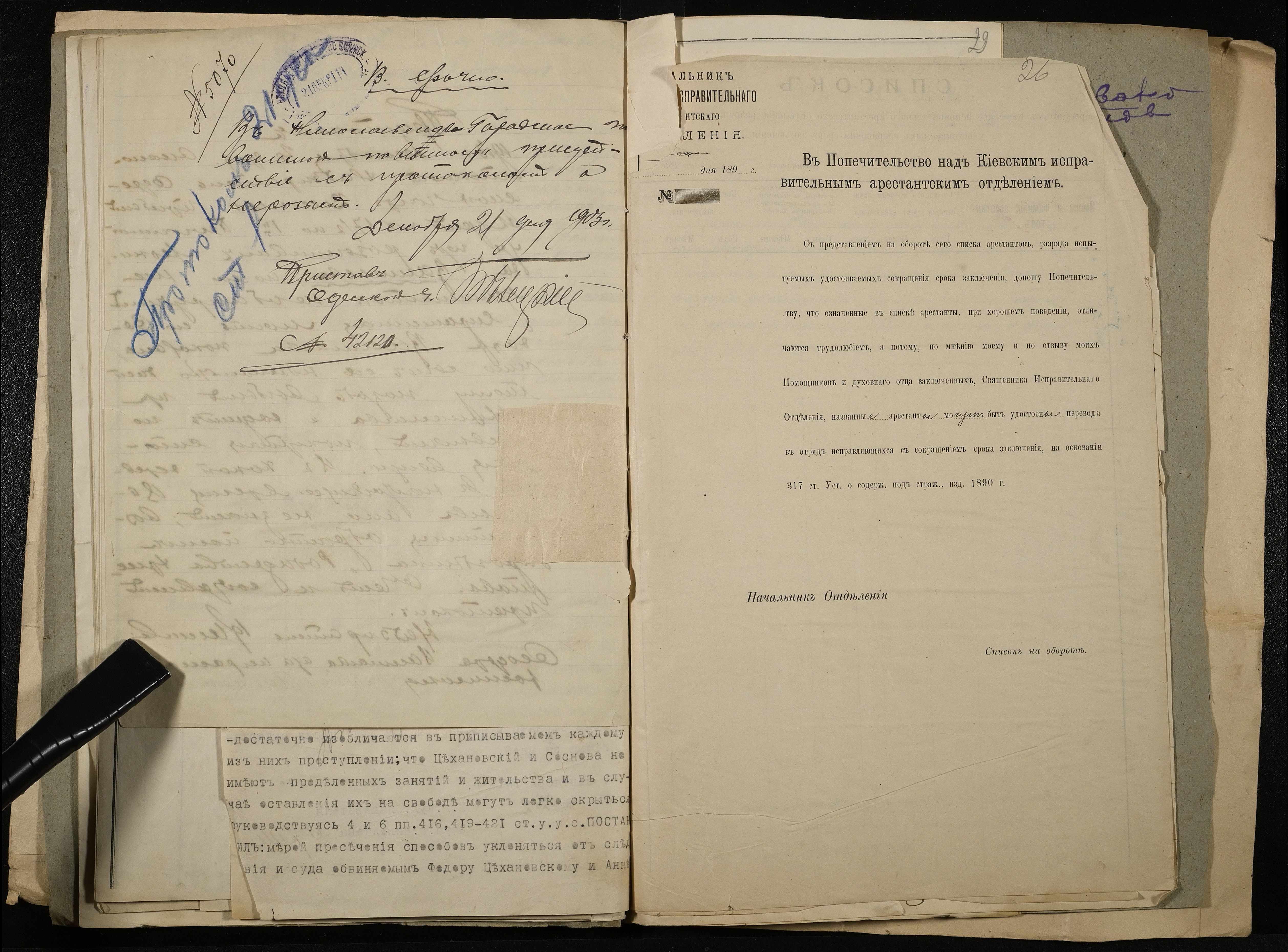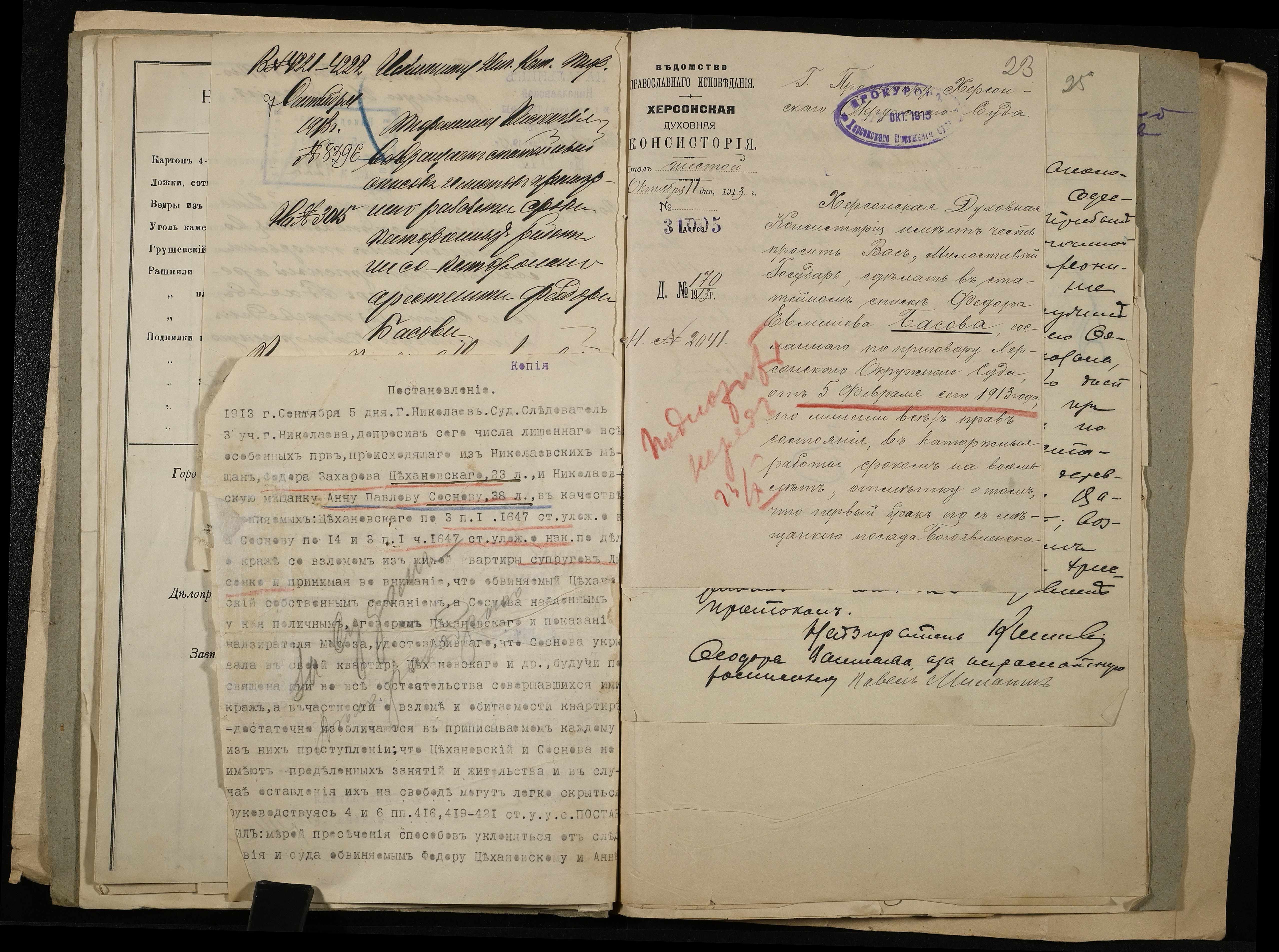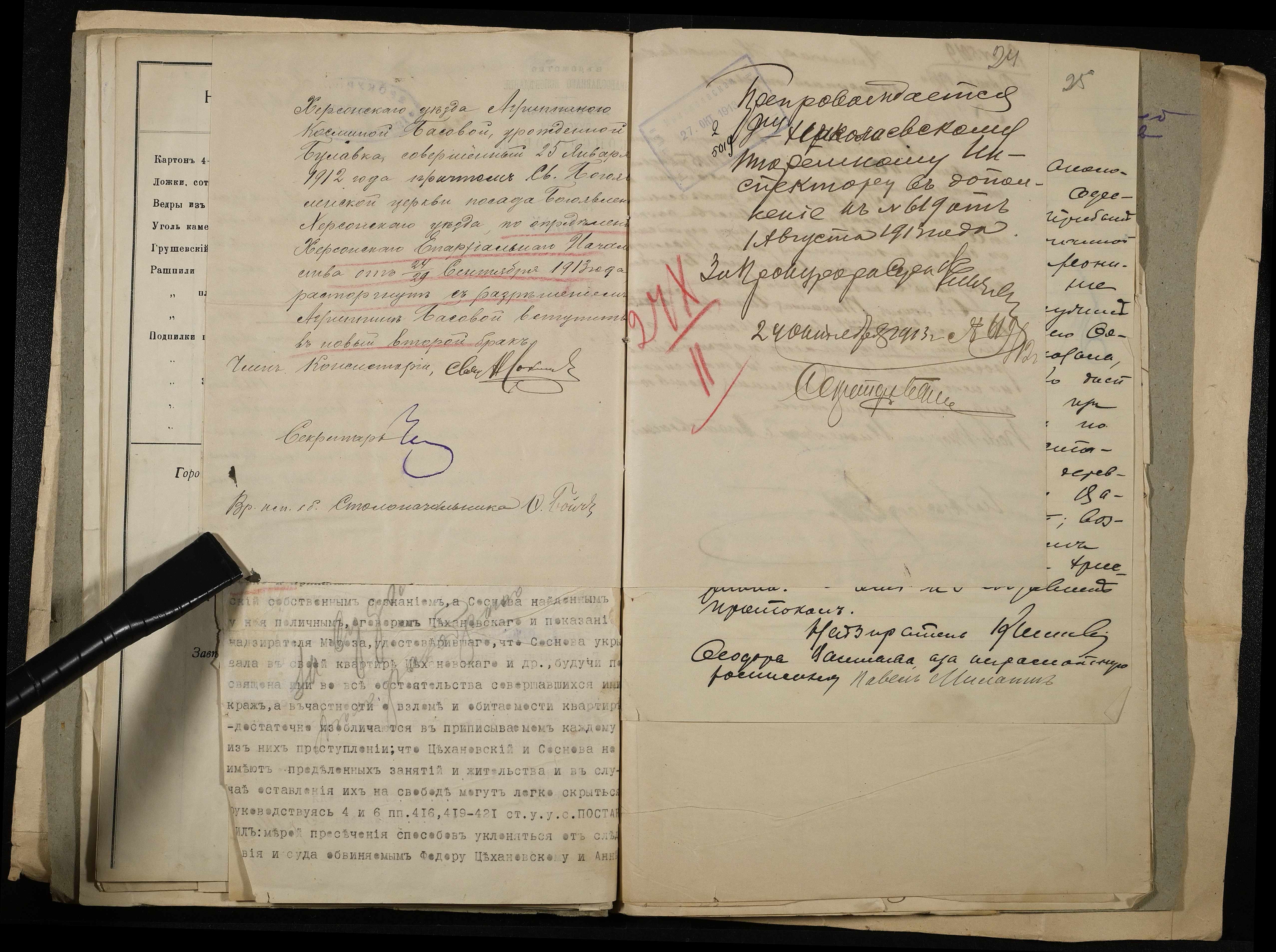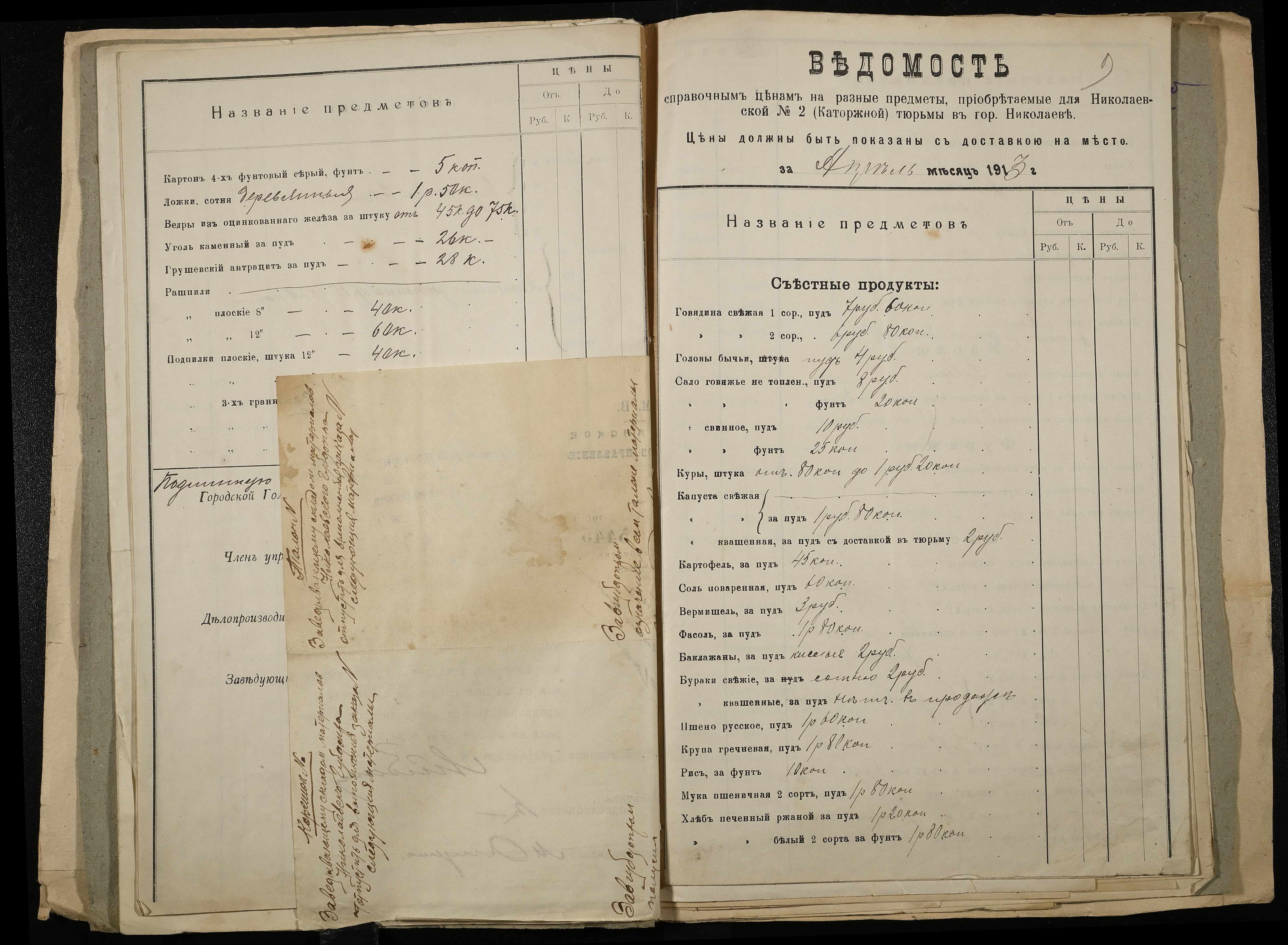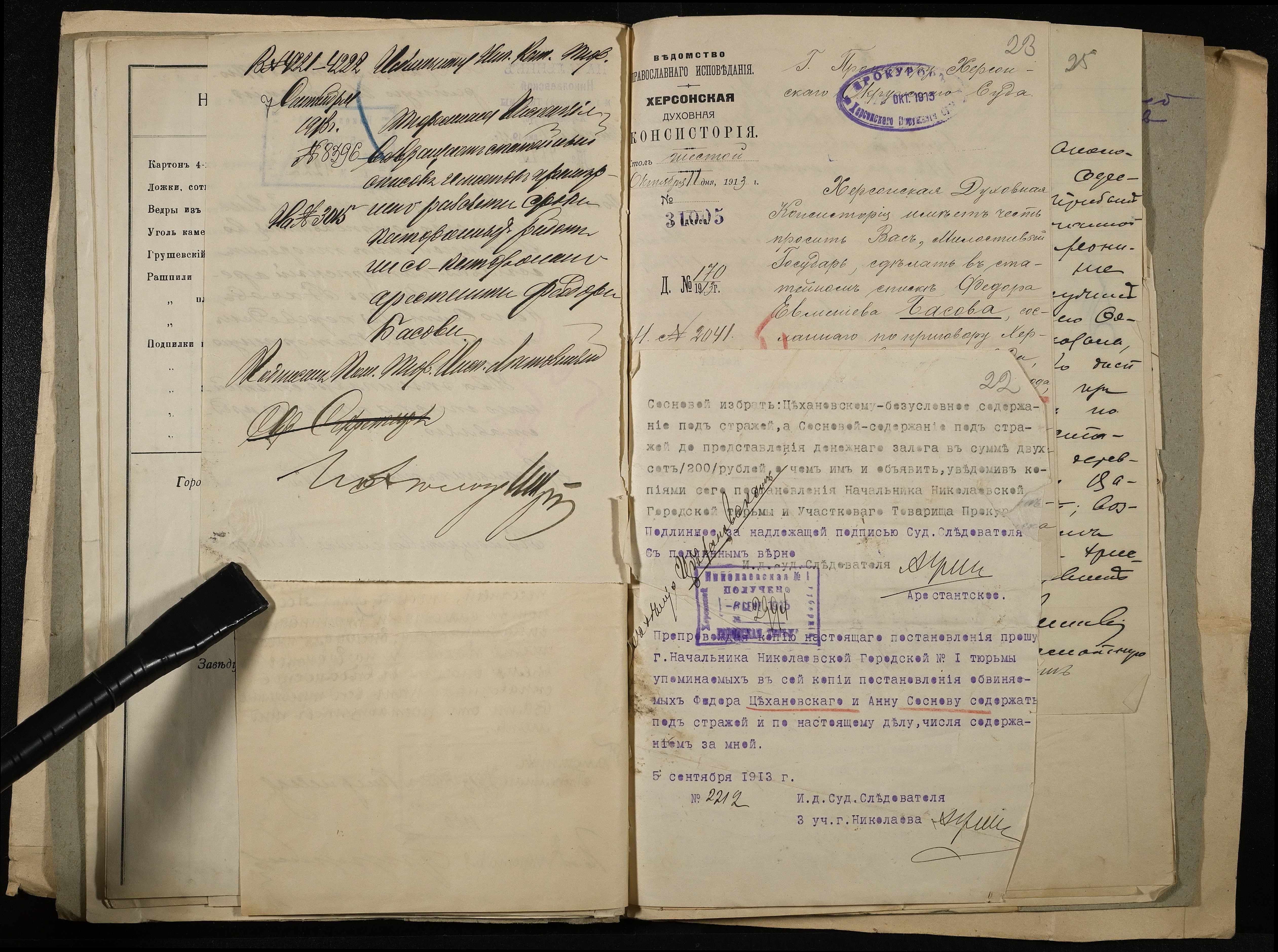 • • • • Справа № 11 Розрахункова книга та відомості довідкових цін щодо забезпечення висланців продуктами харчування, харчові табелі; листування з начальниками миколаївських тюрем про довідкові ціни на продукти харчування; з Херсонською духовною консисторією про розірвання шлюбу засудженого та ін.