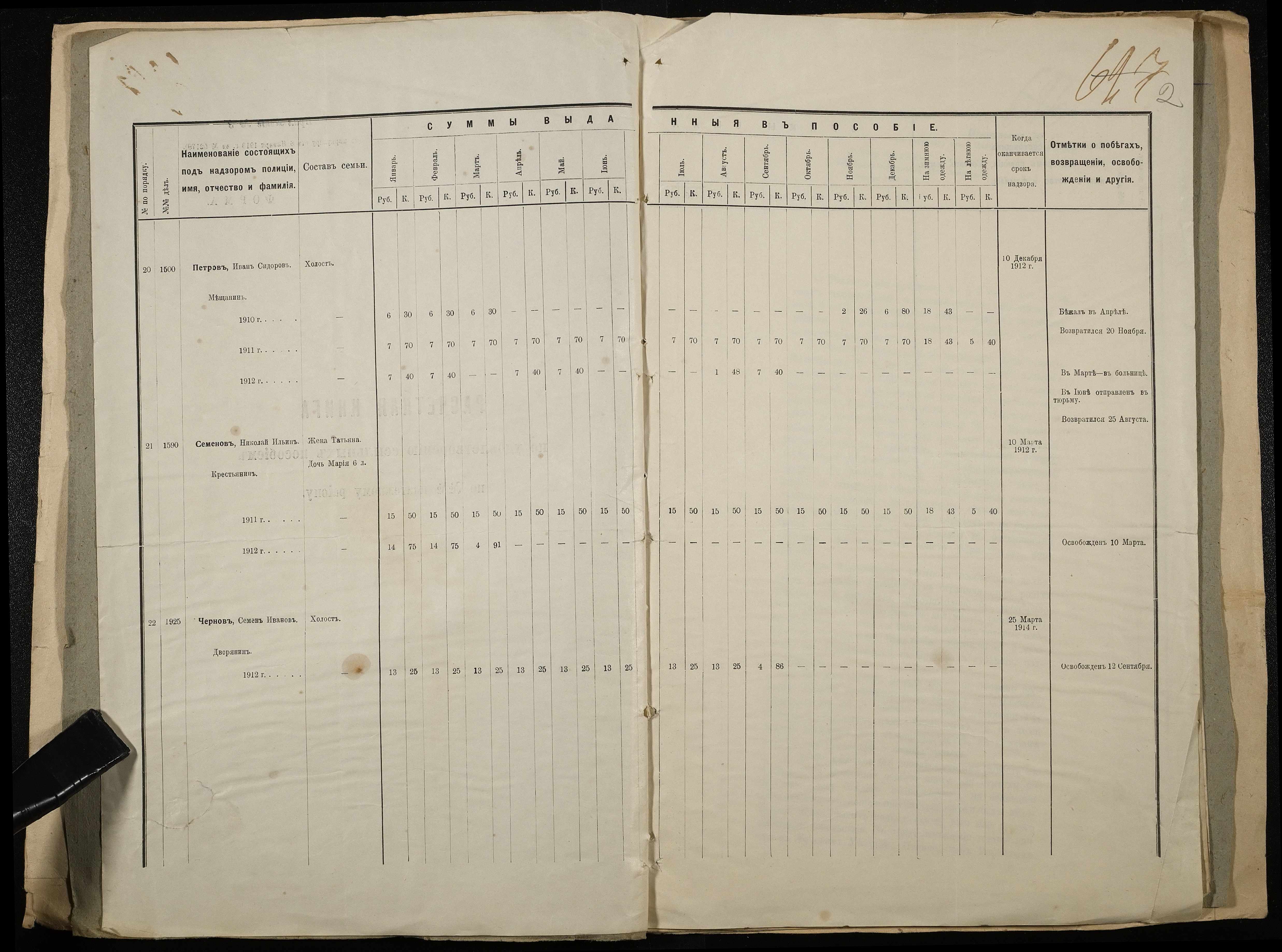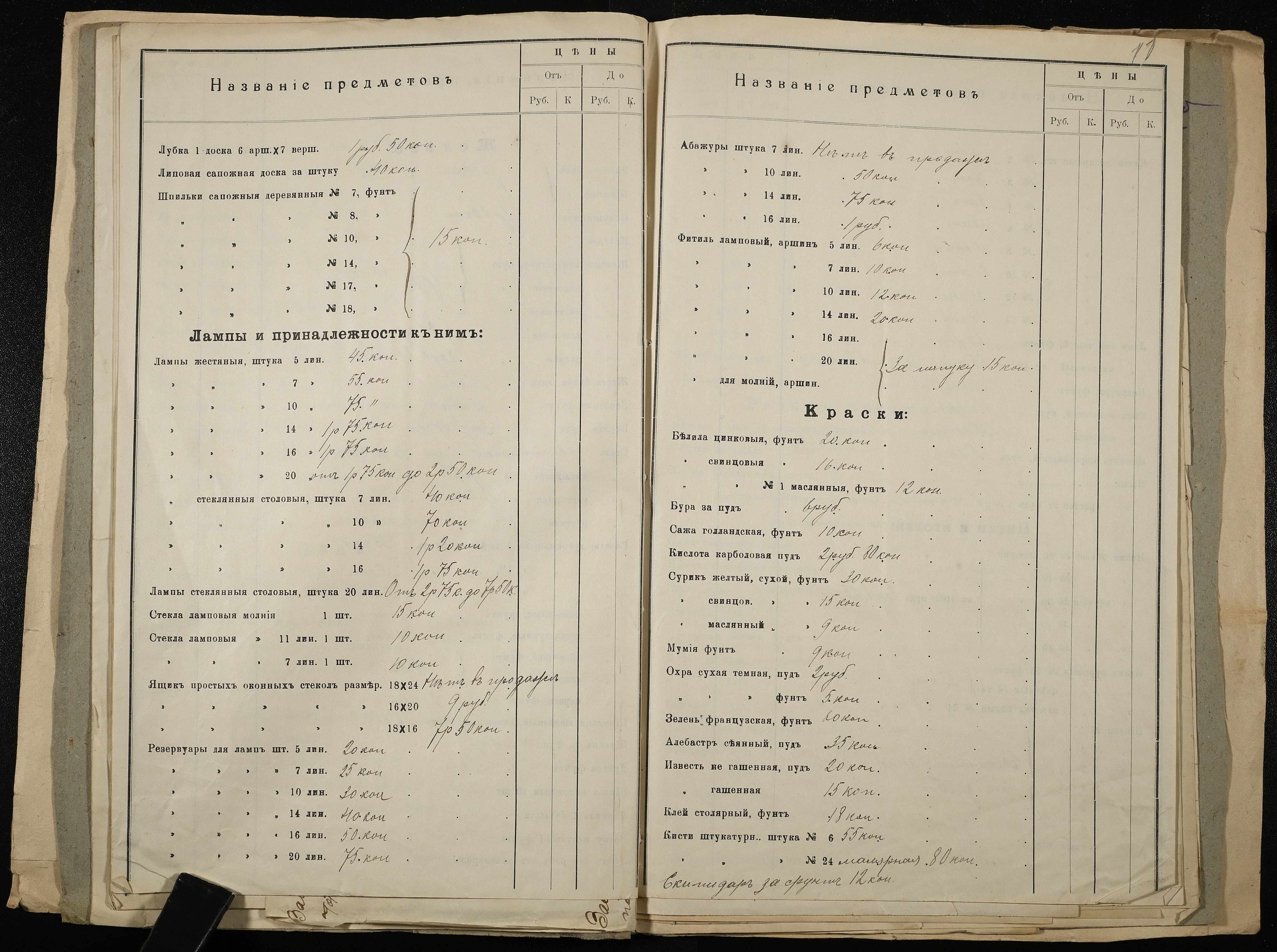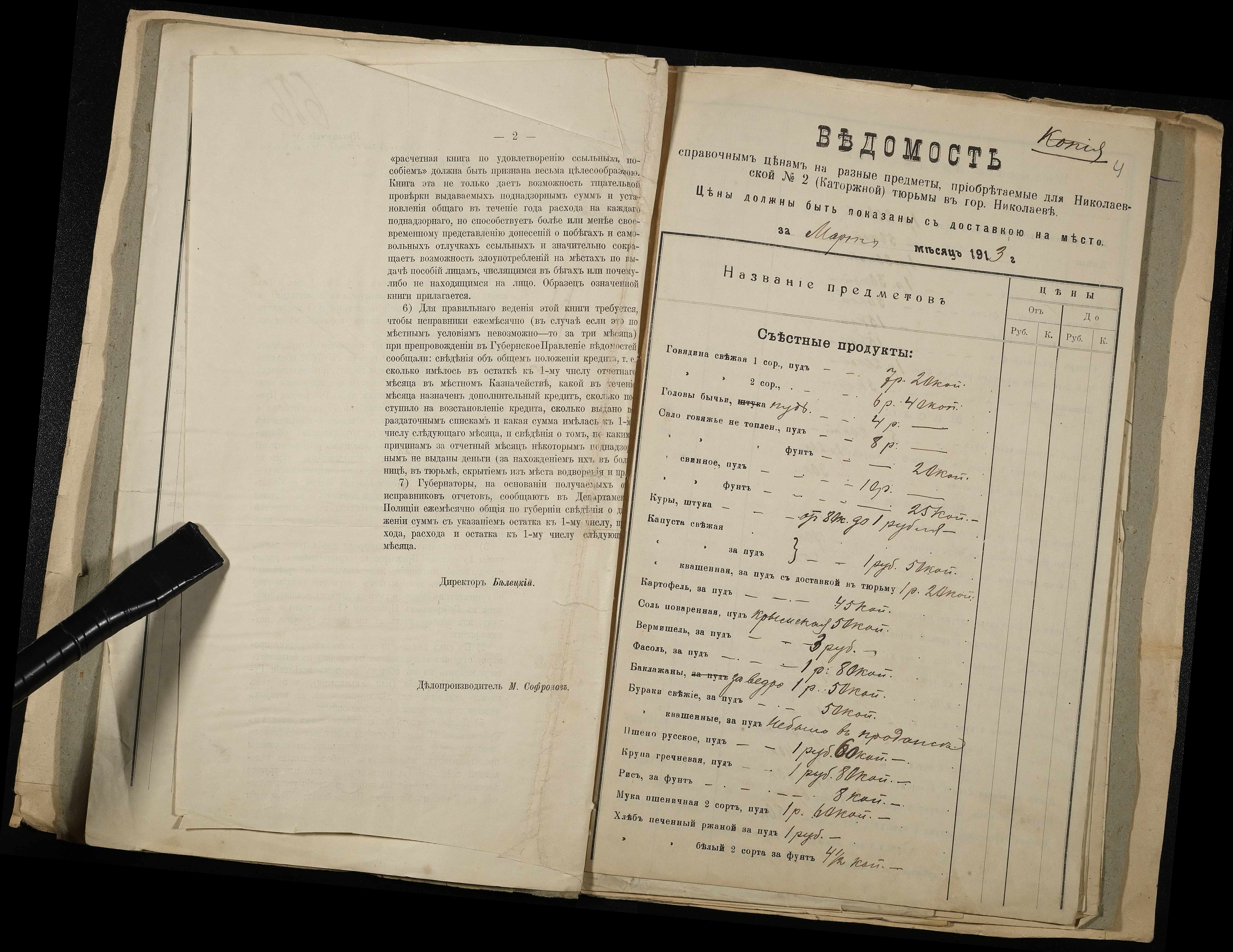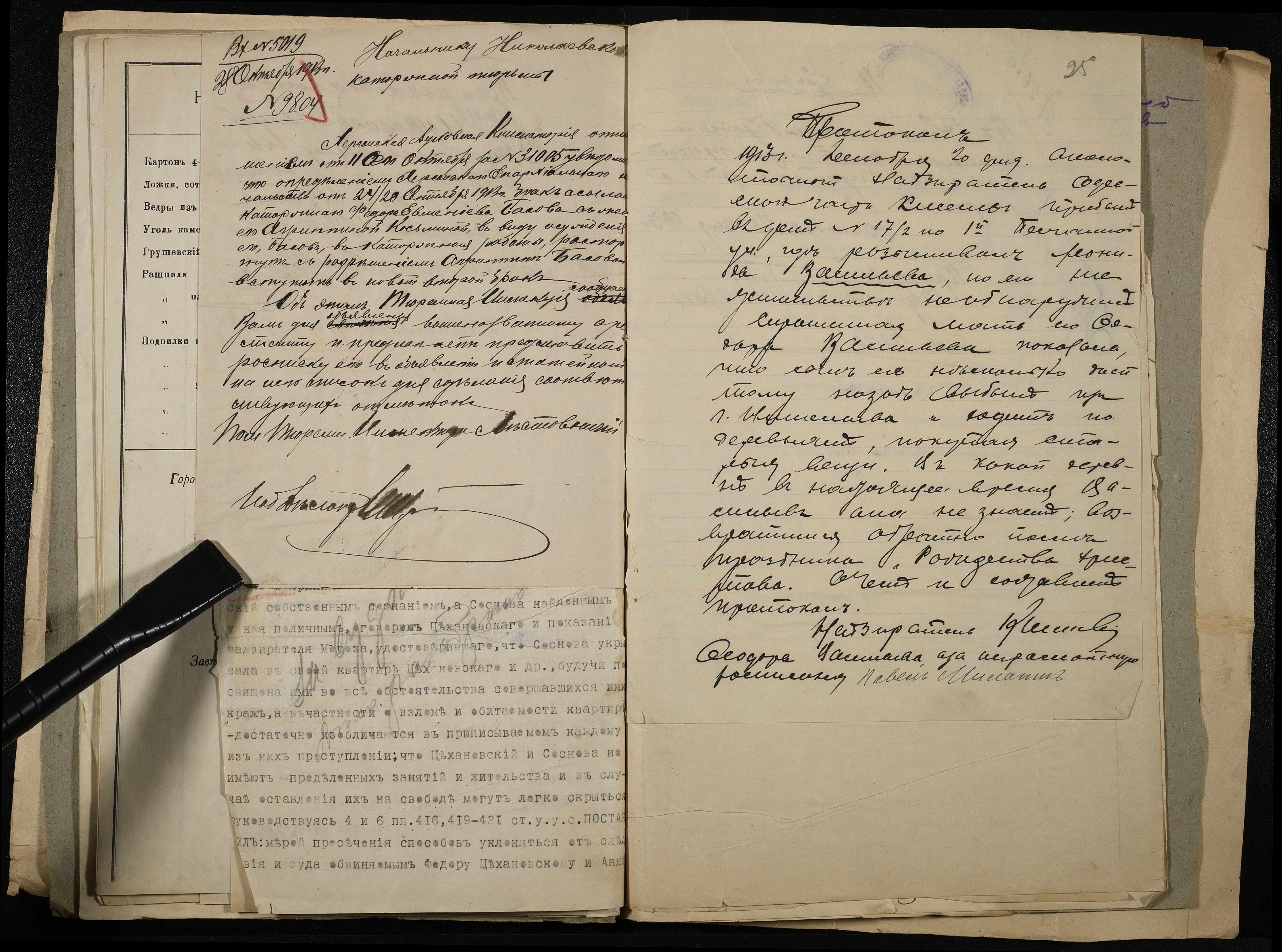 • • • • Справа № 11 Розрахункова книга та відомості довідкових цін щодо забезпечення висланців продуктами харчування, харчові табелі; листування з начальниками миколаївських тюрем про довідкові ціни на продукти харчування; з Херсонською духовною консисторією про розірвання шлюбу засудженого та ін.