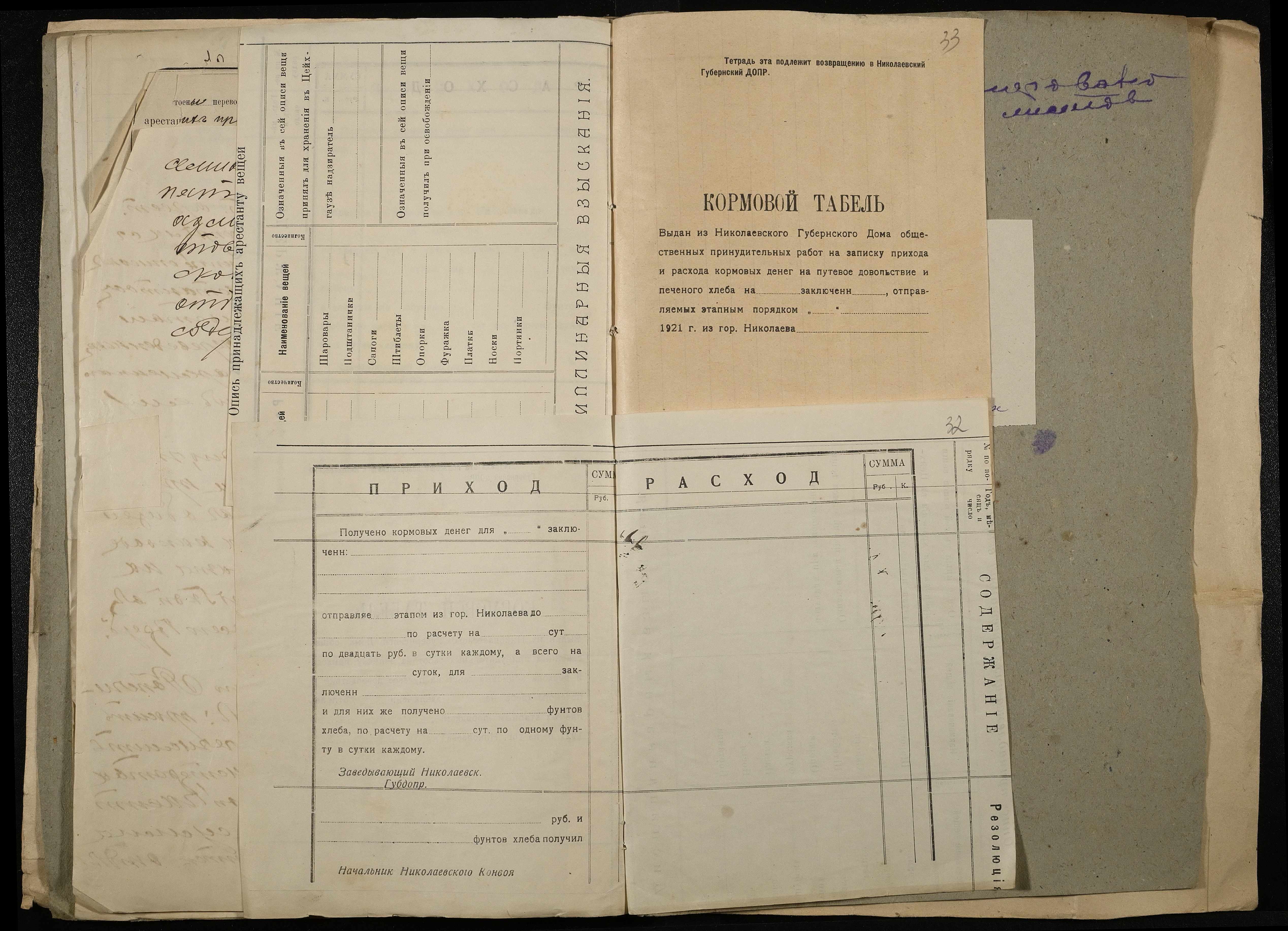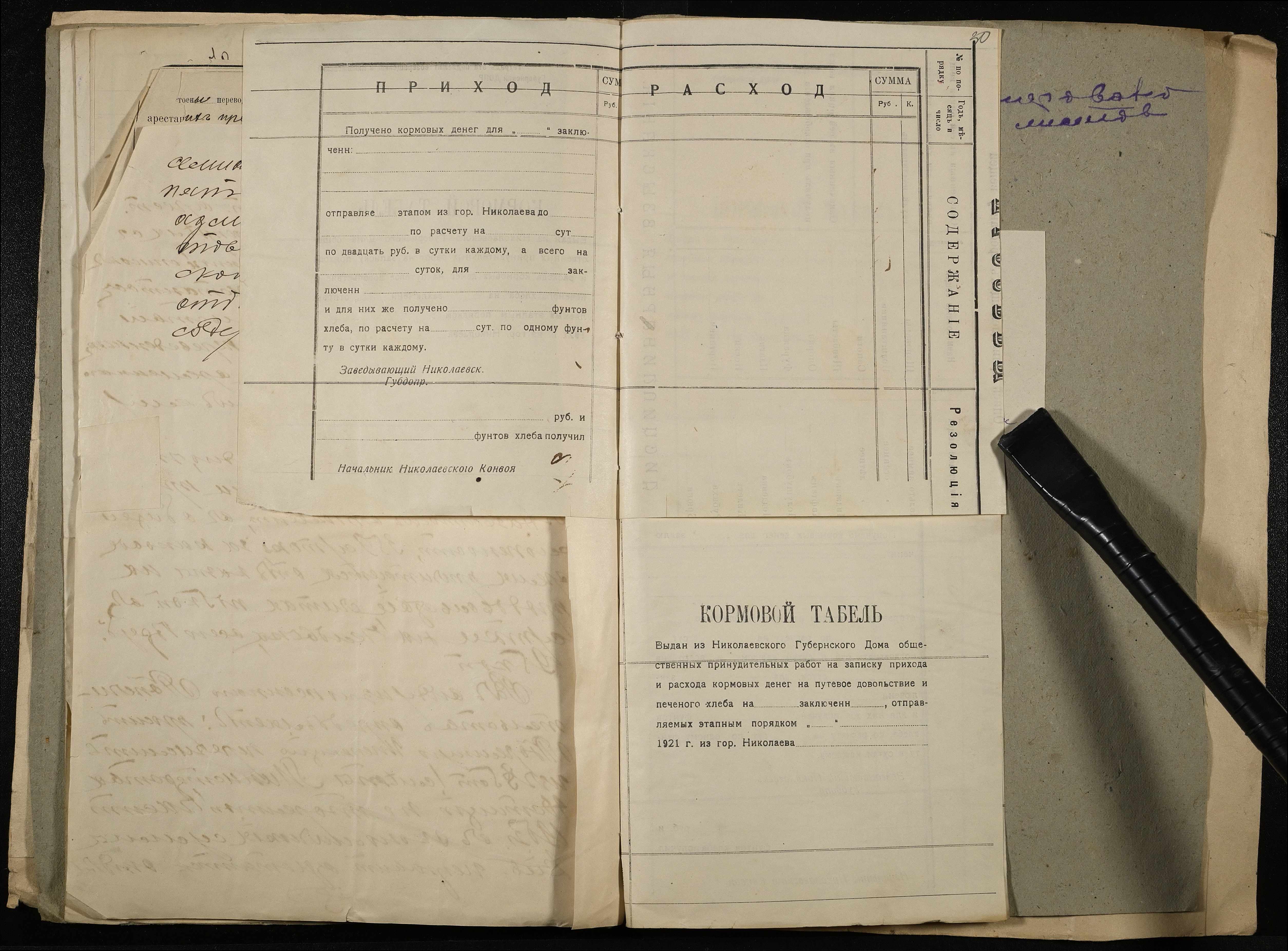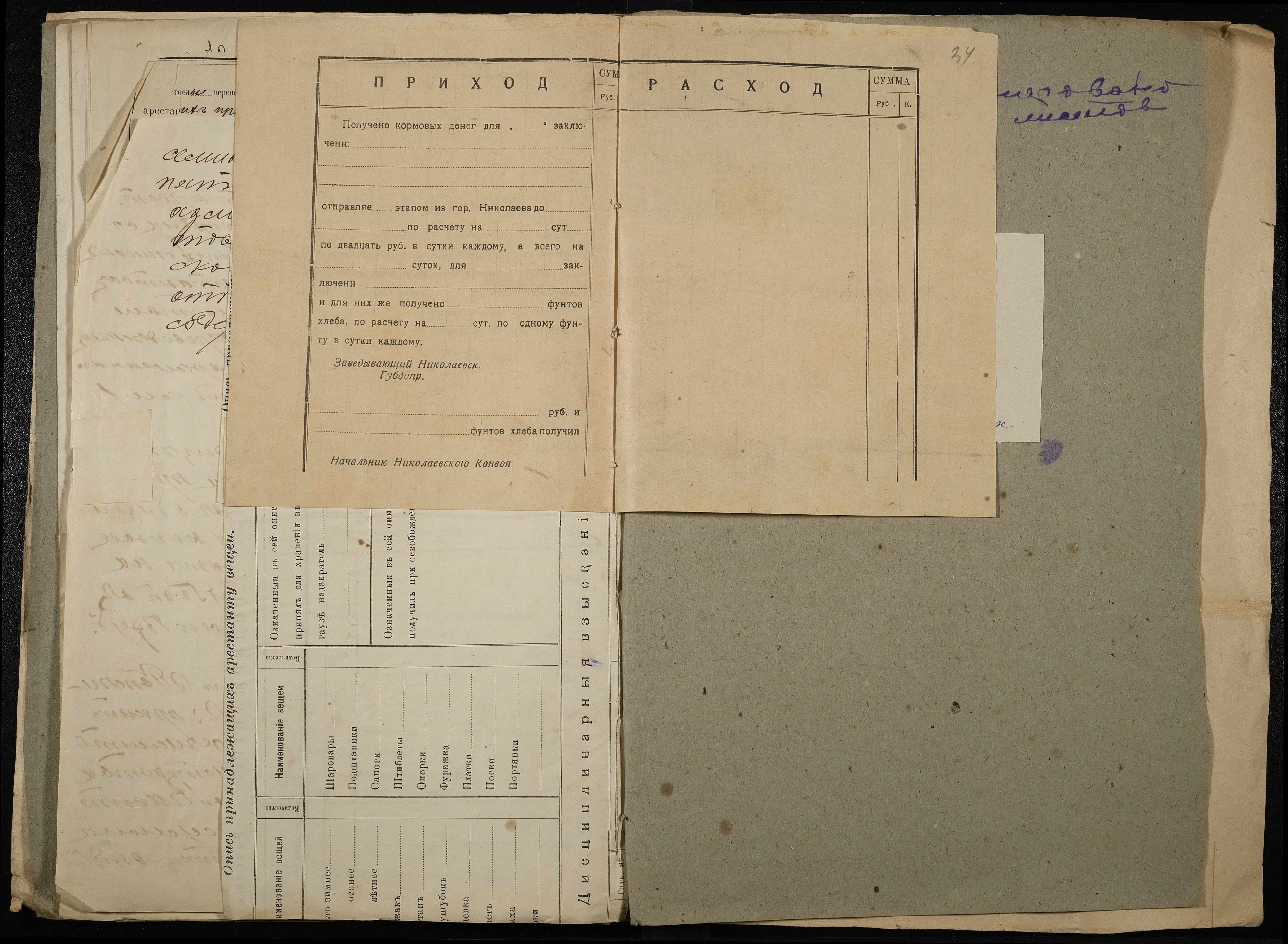 • • • • Справа № 11 Розрахункова книга та відомості довідкових цін щодо забезпечення висланців продуктами харчування, харчові табелі; листування з начальниками миколаївських тюрем про довідкові ціни на продукти харчування; з Херсонською духовною консисторією про розірвання шлюбу засудженого та ін.