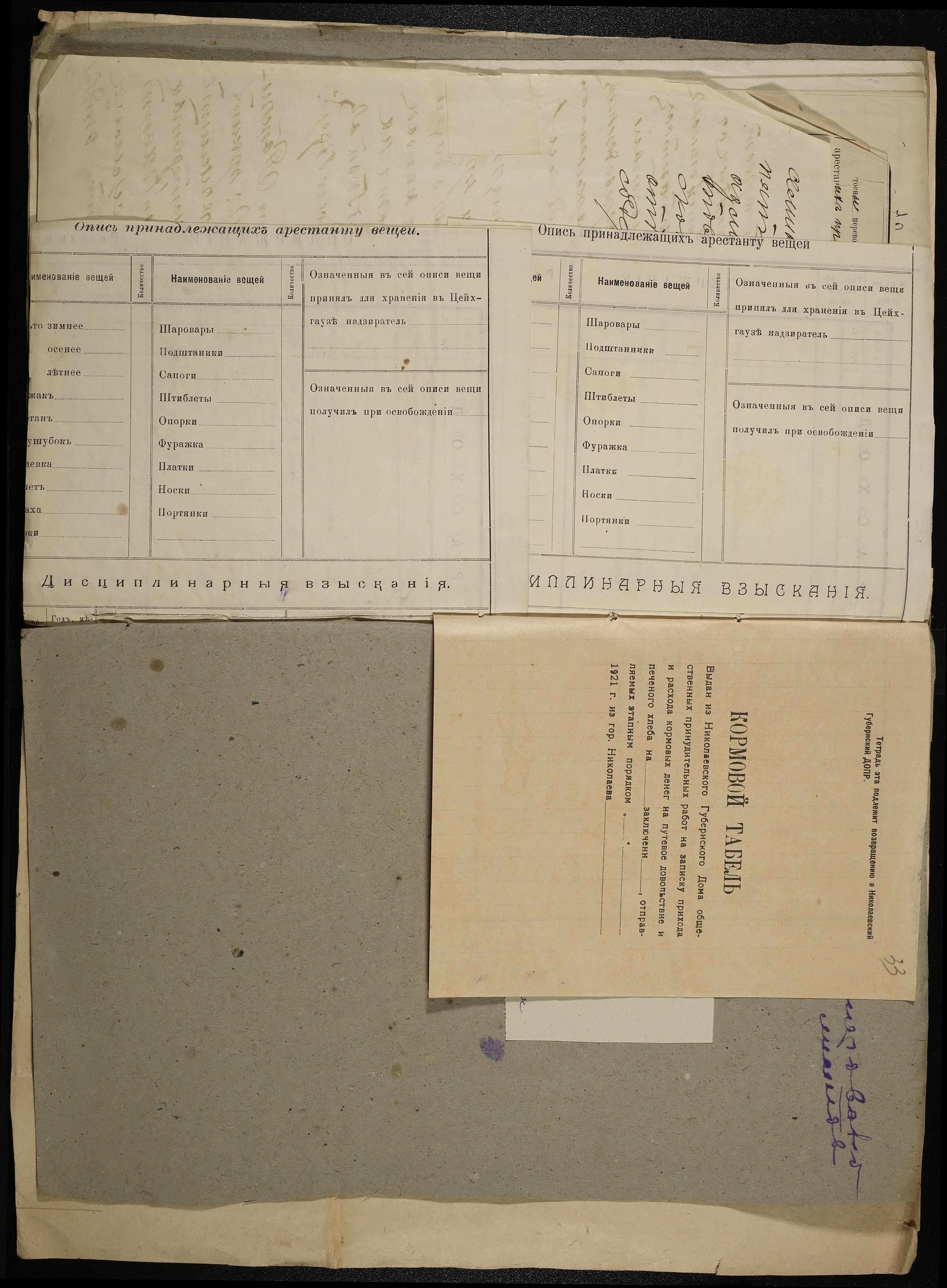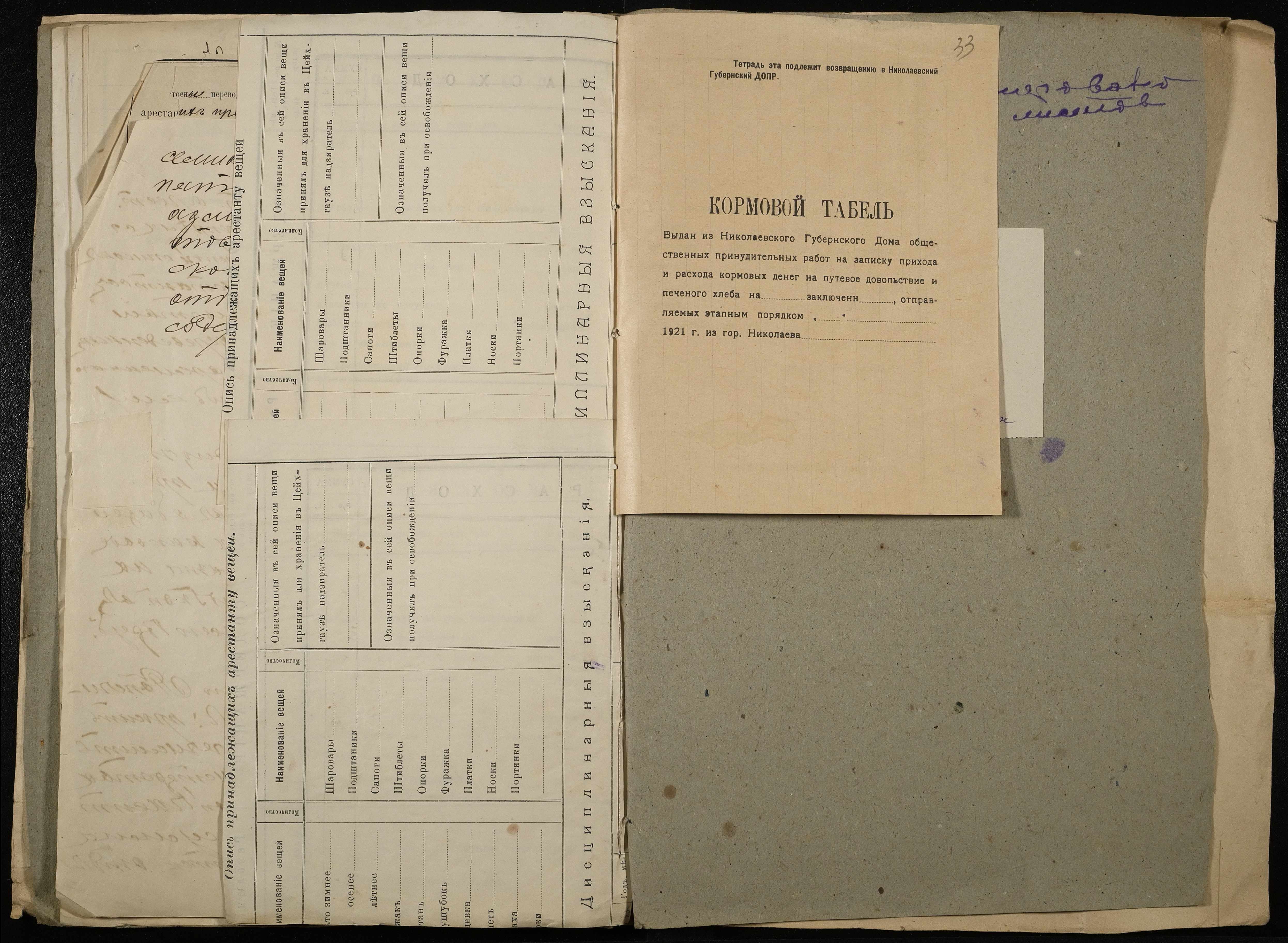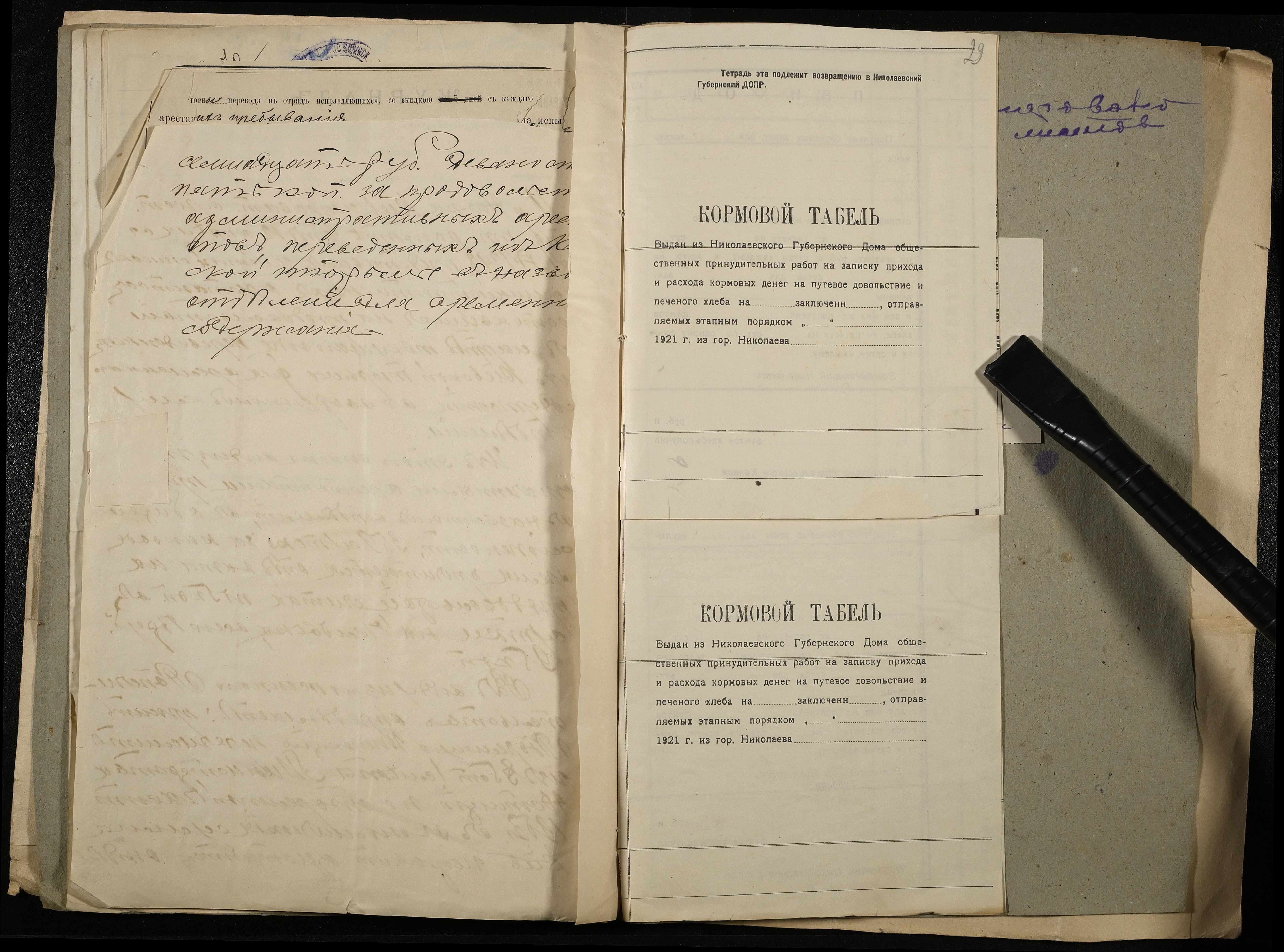• • • • Справа № 11 Розрахункова книга та відомості довідкових цін щодо забезпечення висланців продуктами харчування, харчові табелі; листування з начальниками миколаївських тюрем про довідкові ціни на продукти харчування; з Херсонською духовною консисторією про розірвання шлюбу засудженого та ін.