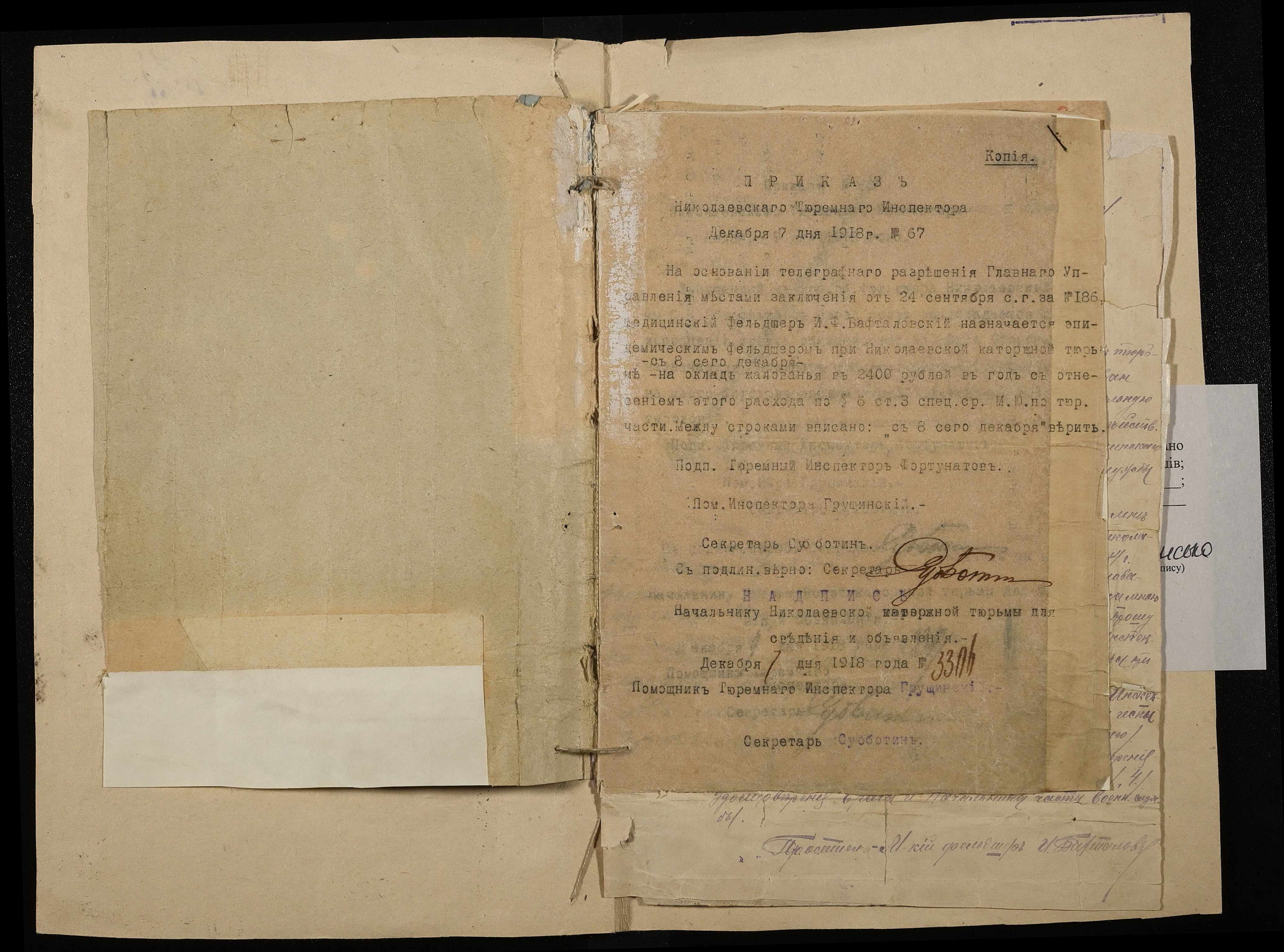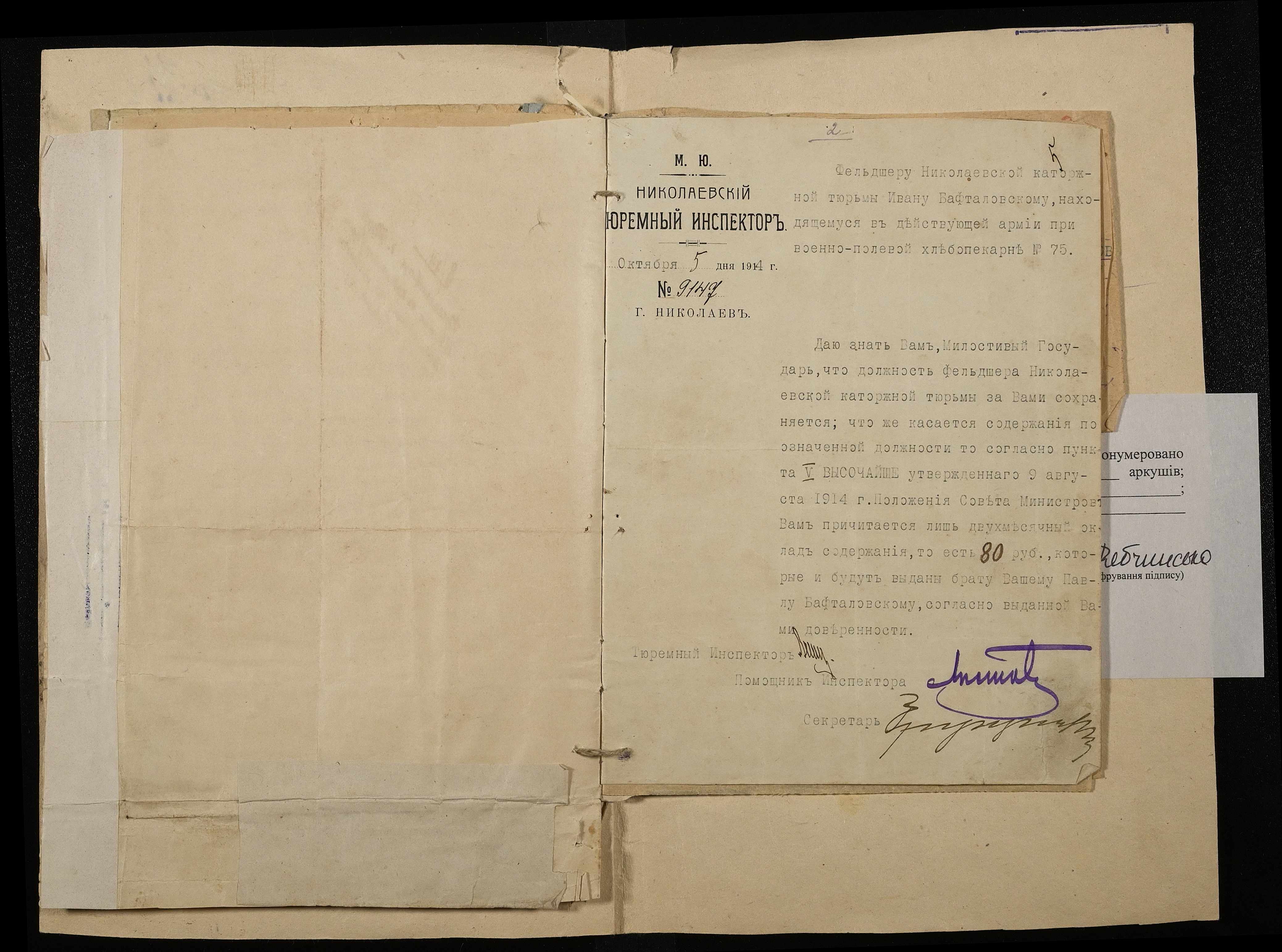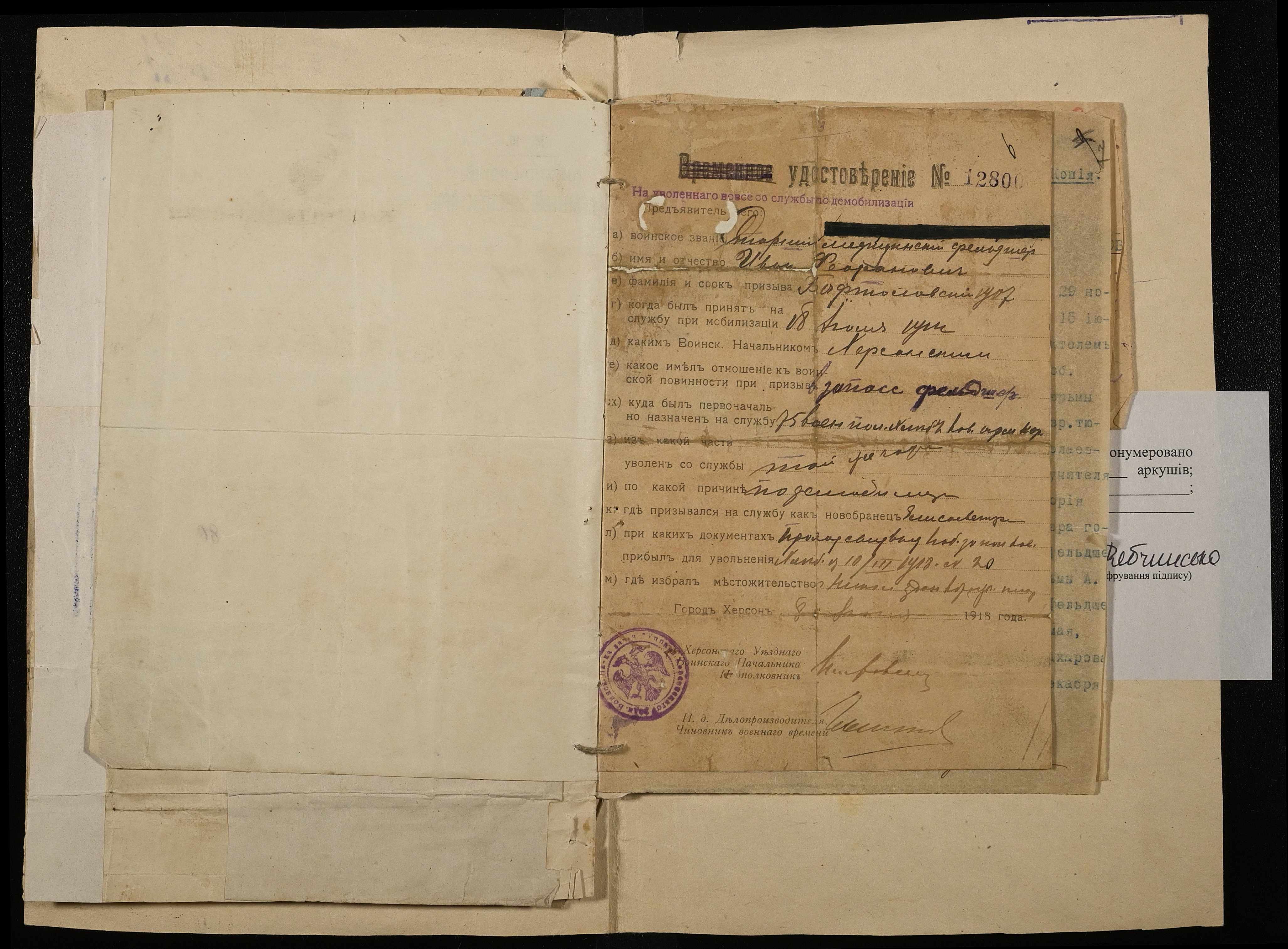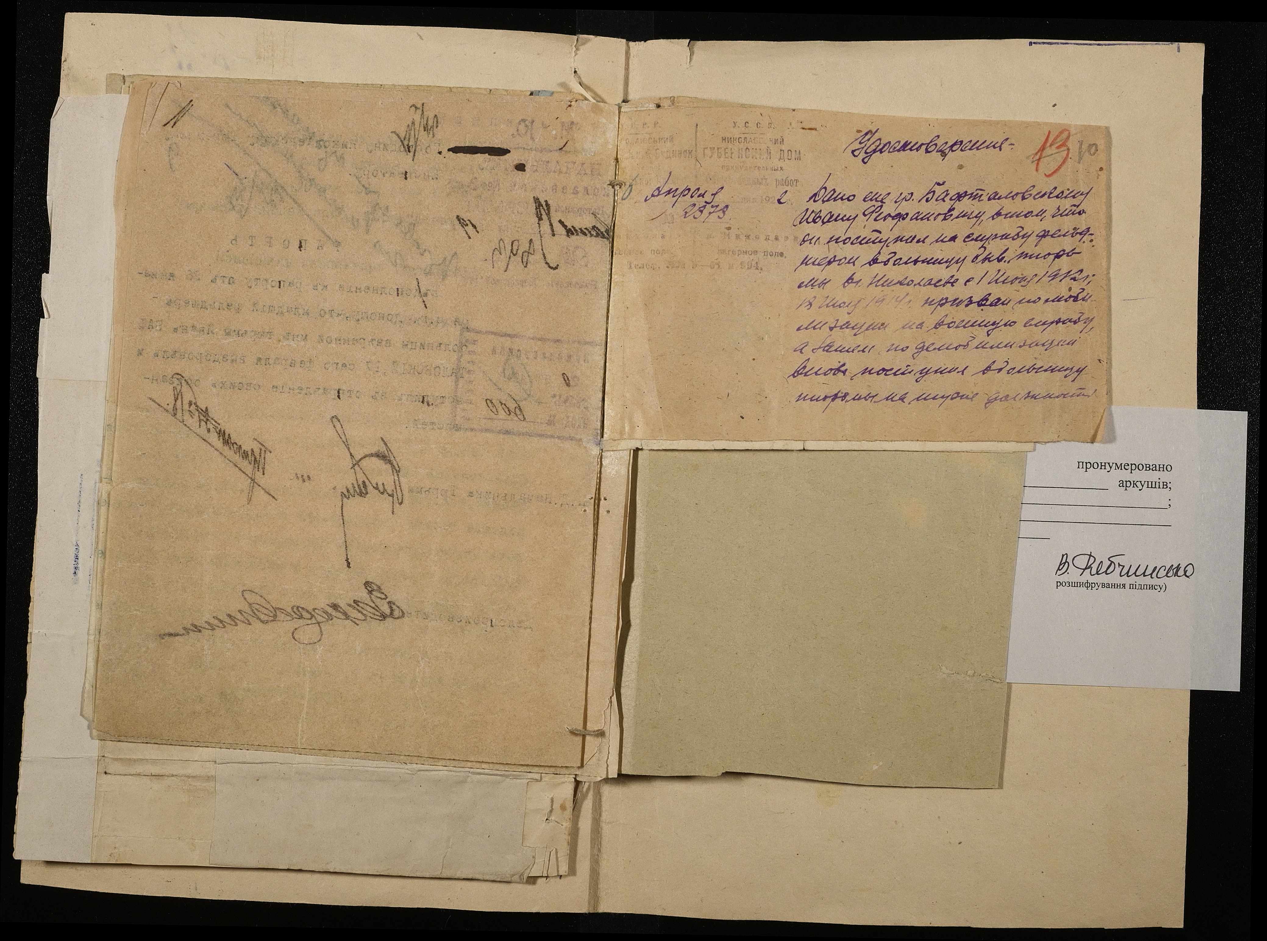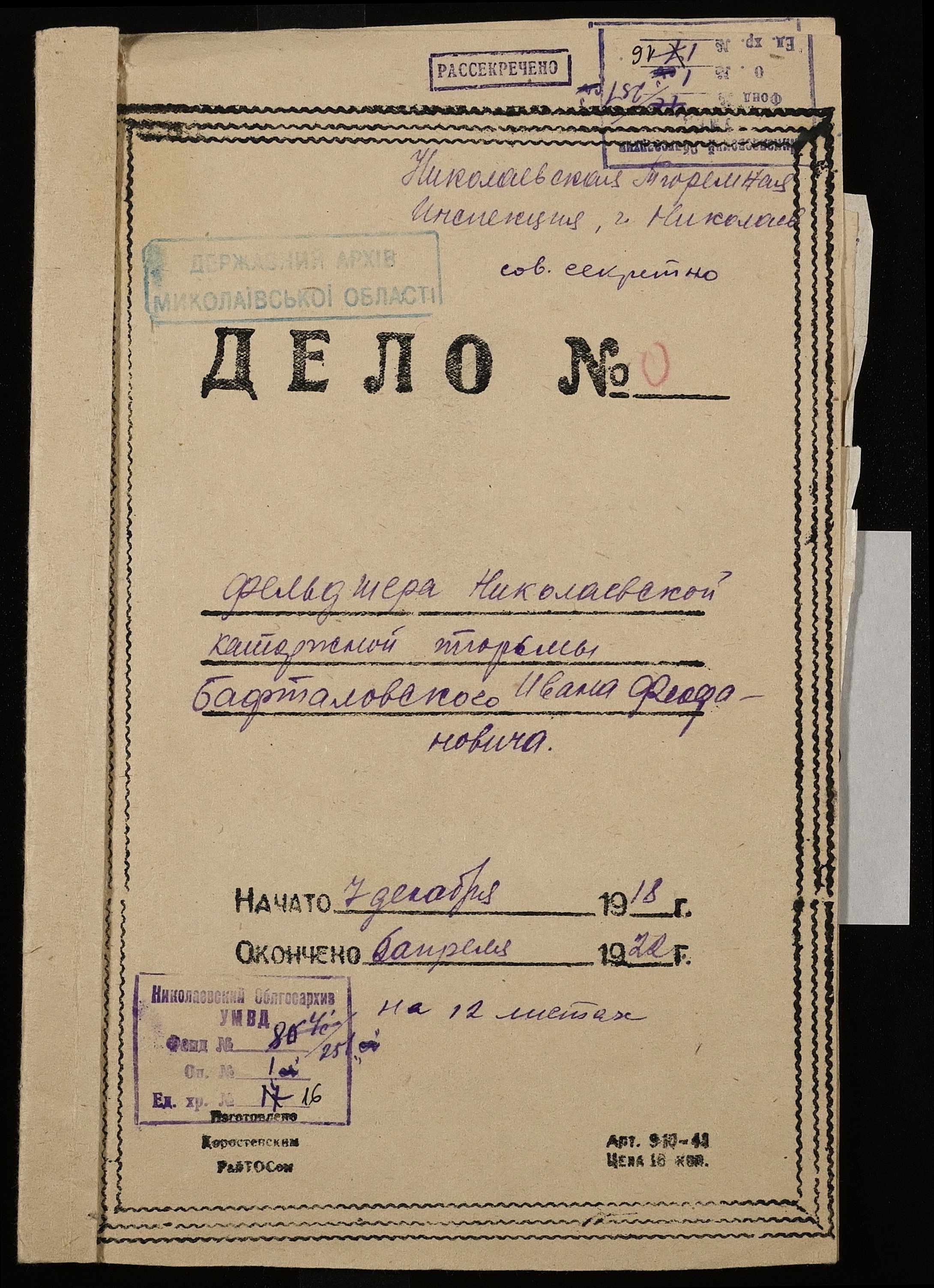 • • • • Справа № 16 Особова справа фельдшера Бафталовського І.Ф.