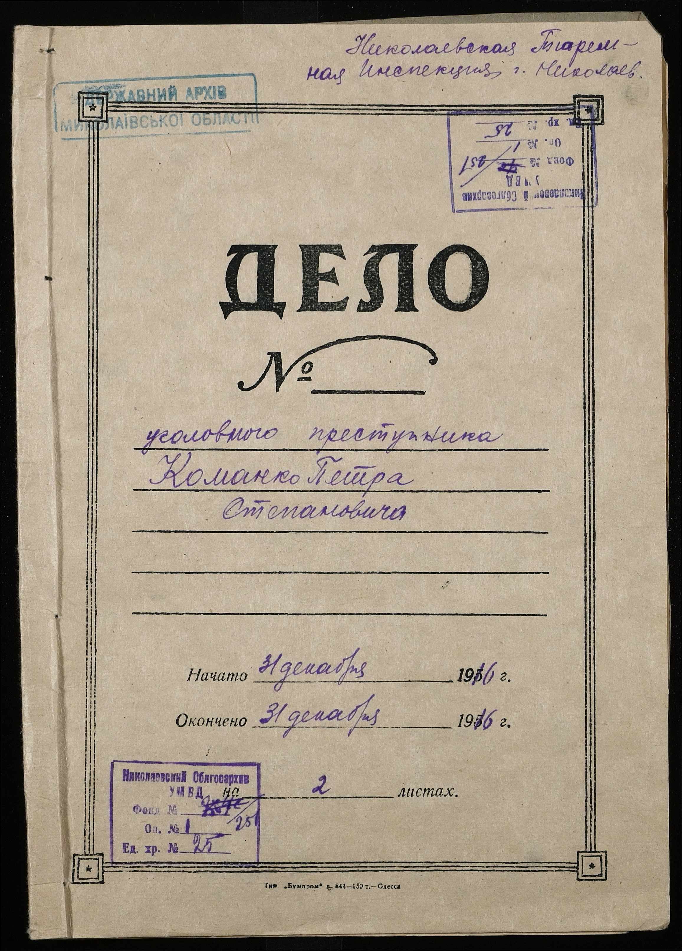 ◦ ◦ Фонд № 251 “Миколаївська тюремна інспекція”